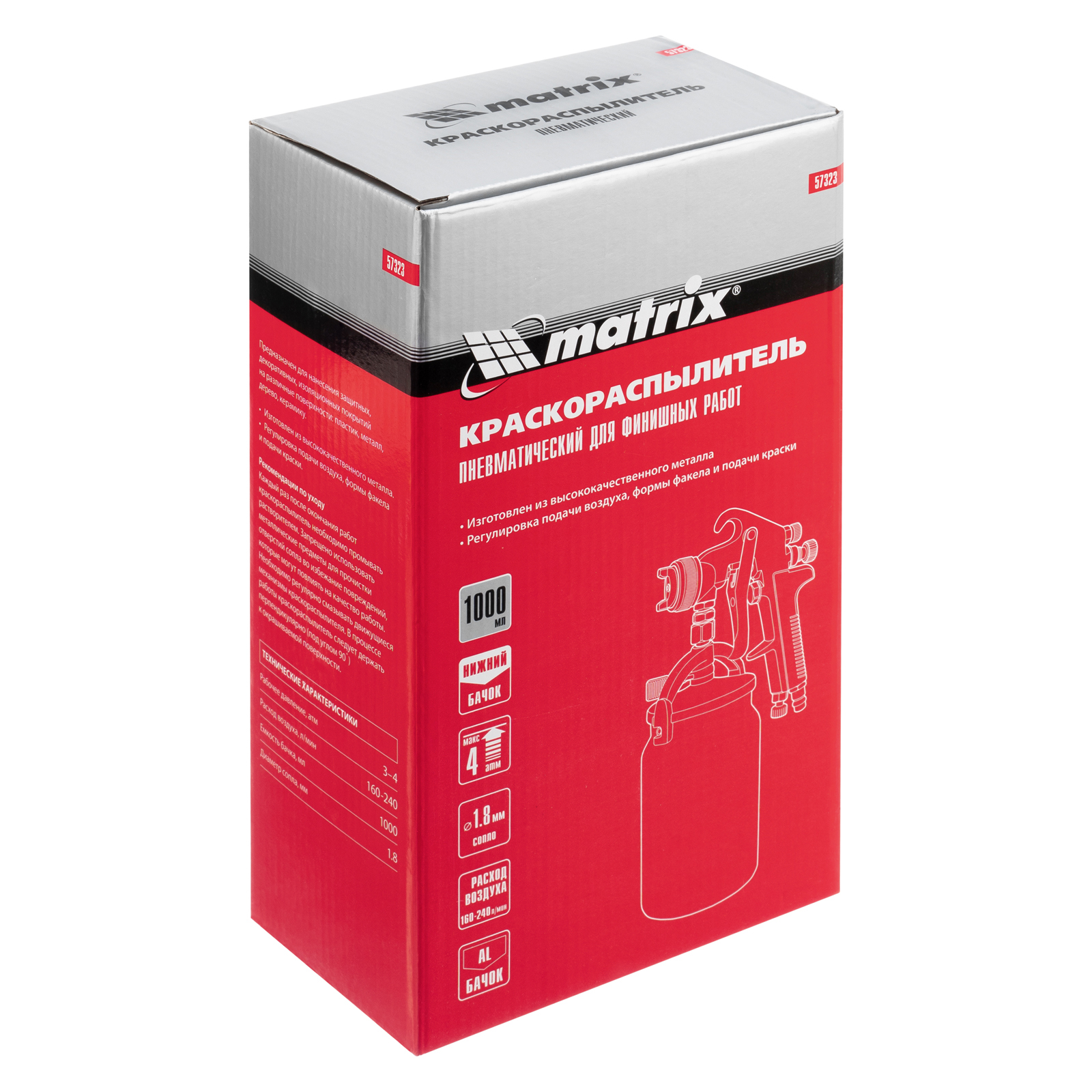 - Прочность и долговечность — корпус пистолета и бачок из алюминиевого сплава устойчивы к механическим повреждениям и коррозии.