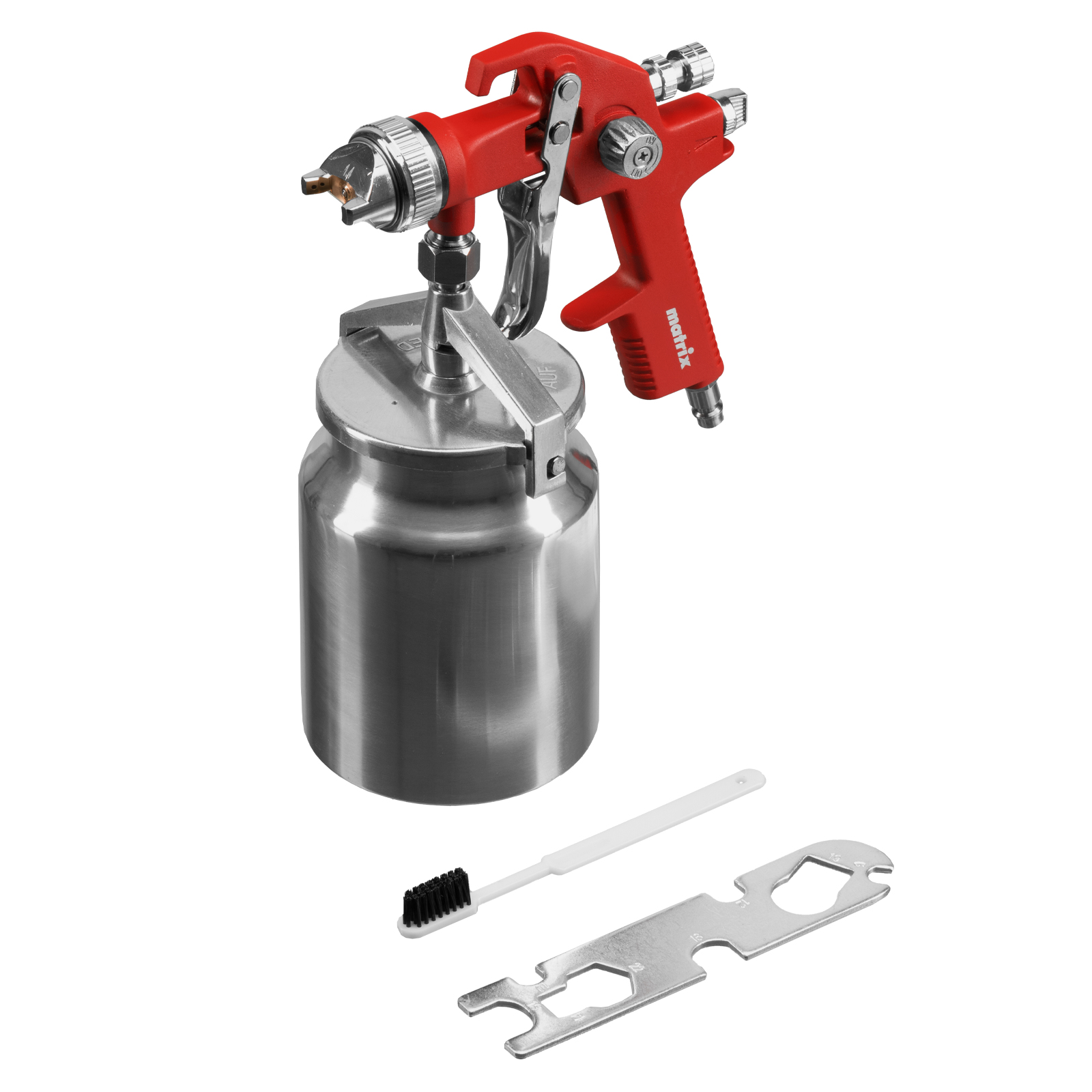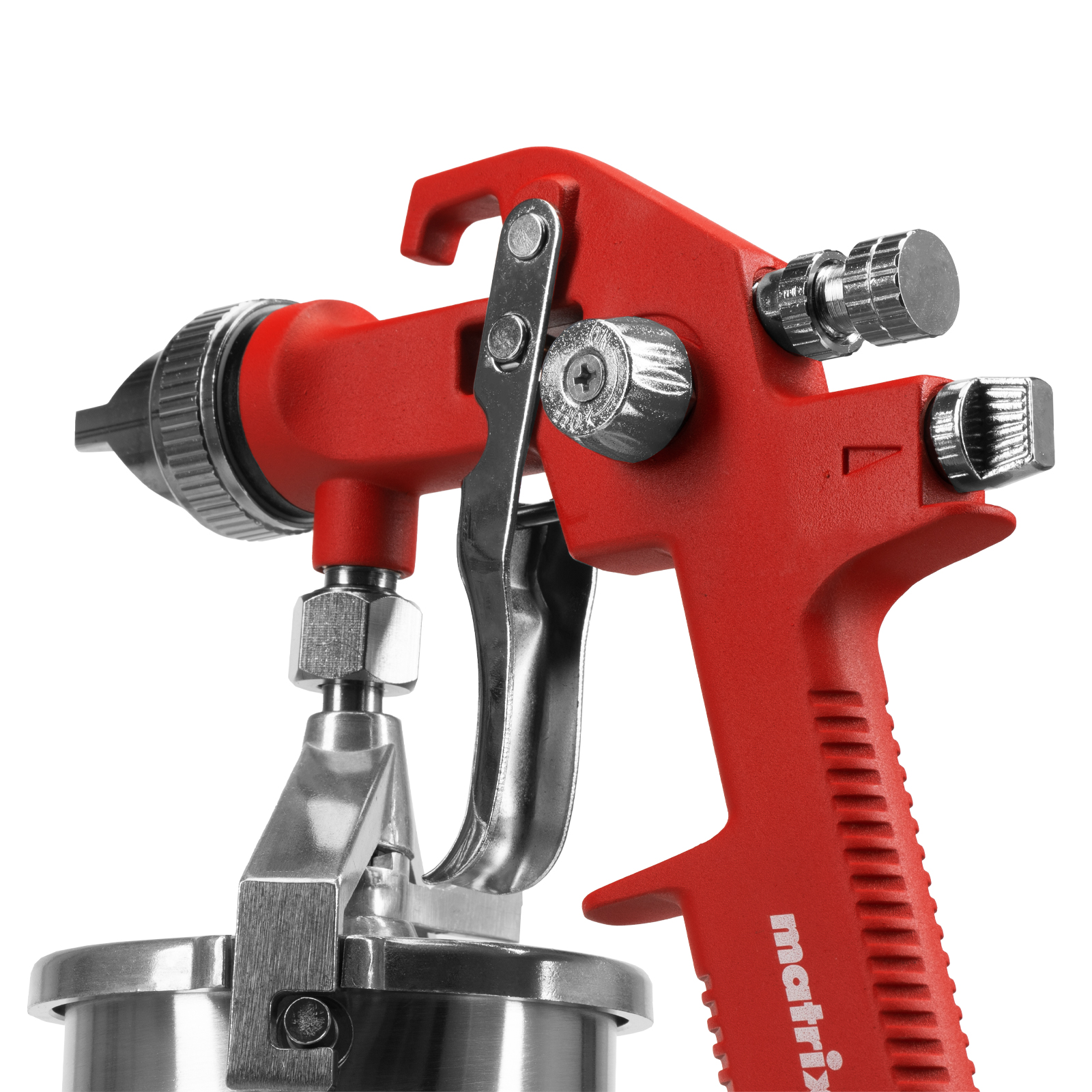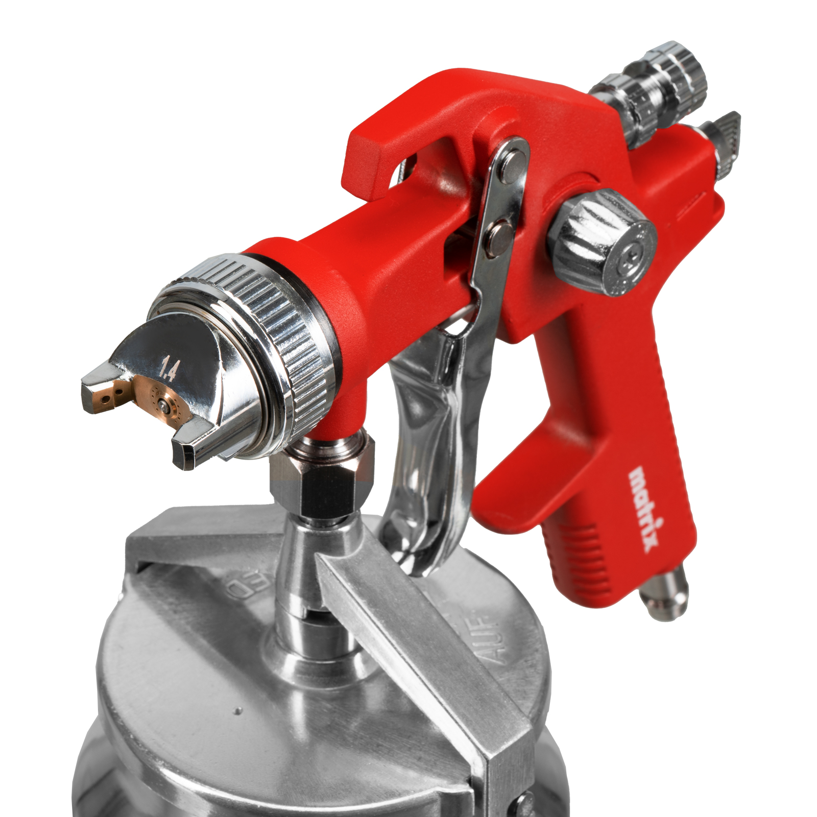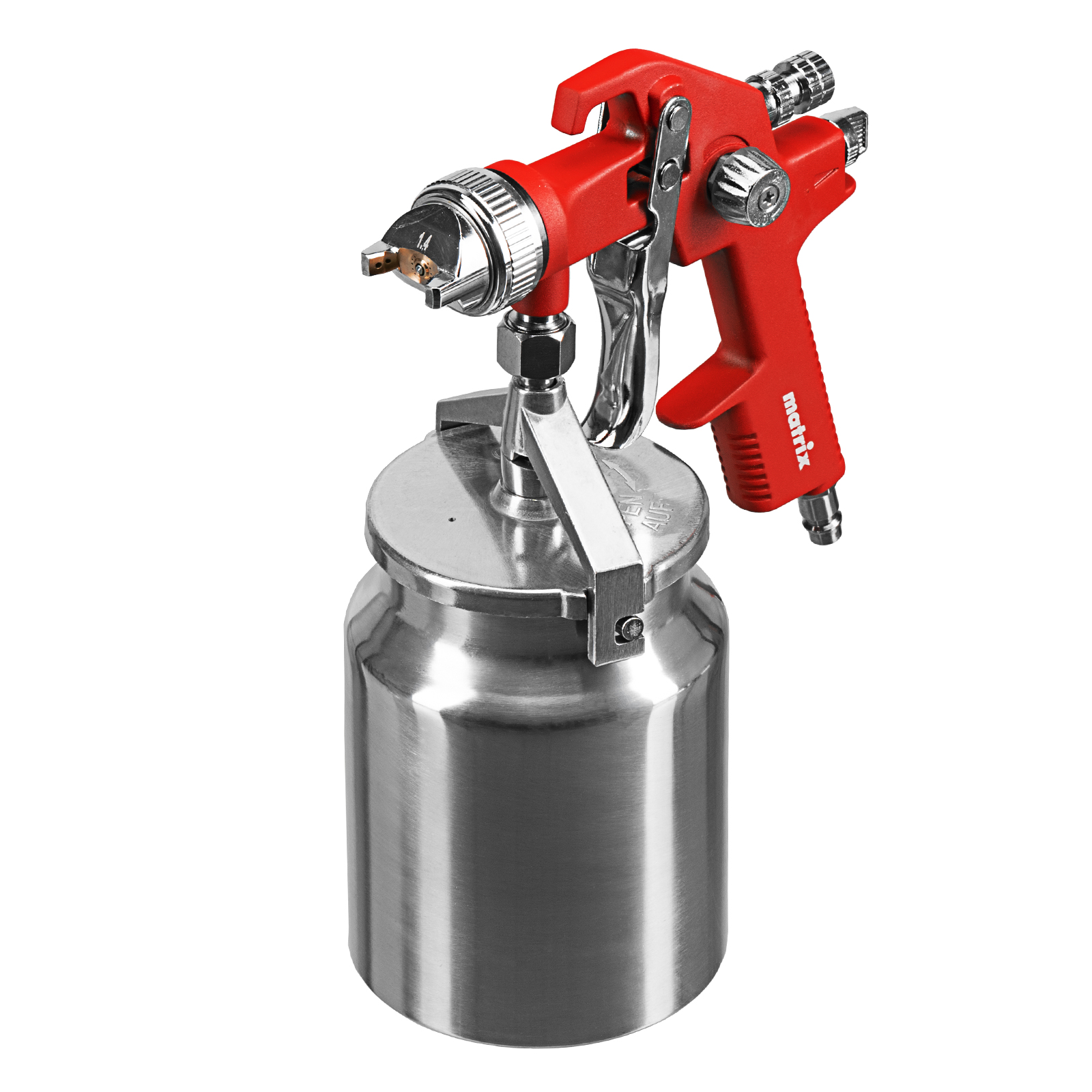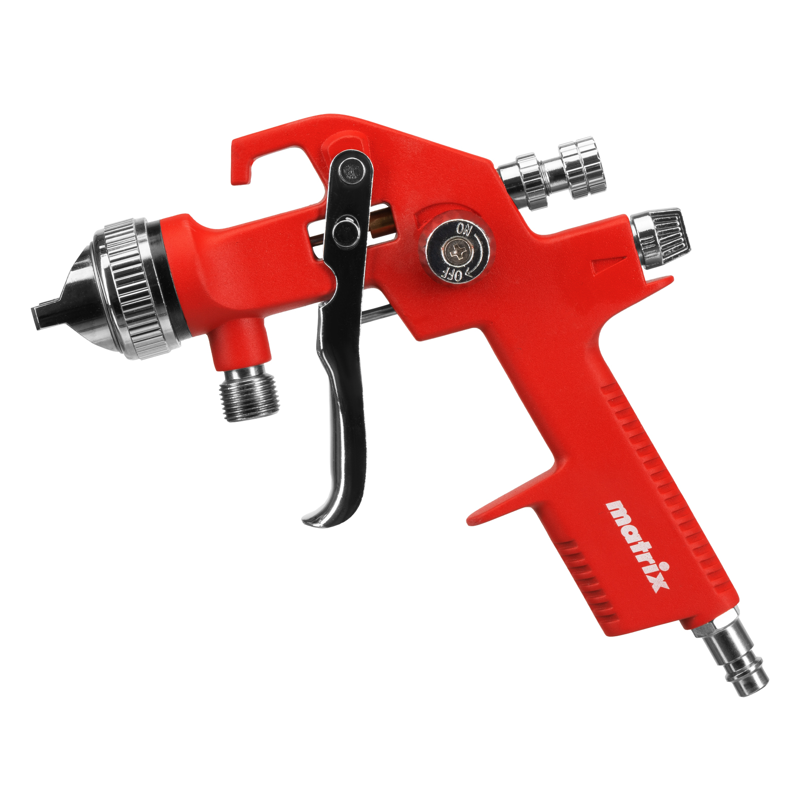 Пневматический краскораспылитель с нижним бачком Matrix 57319 объемом 1 л, с соплом диаметром 1,4 мм, расходует 170-280 л воздуха в минуту и предназначен для выполнения окрасочных работ. Позволяет работать с лакокрасочными материалами разных типов и консистенции. Благодаря технологии HVLP (High Volume Low Pressure, высокий объем, низкое давление) на поверхность переносится до 65% ЛКМ, что обеспечивает высокую производительность и сокращает потери краски. Краскораспылитель пригодится в мастерской, в гараже и в автосервисе.