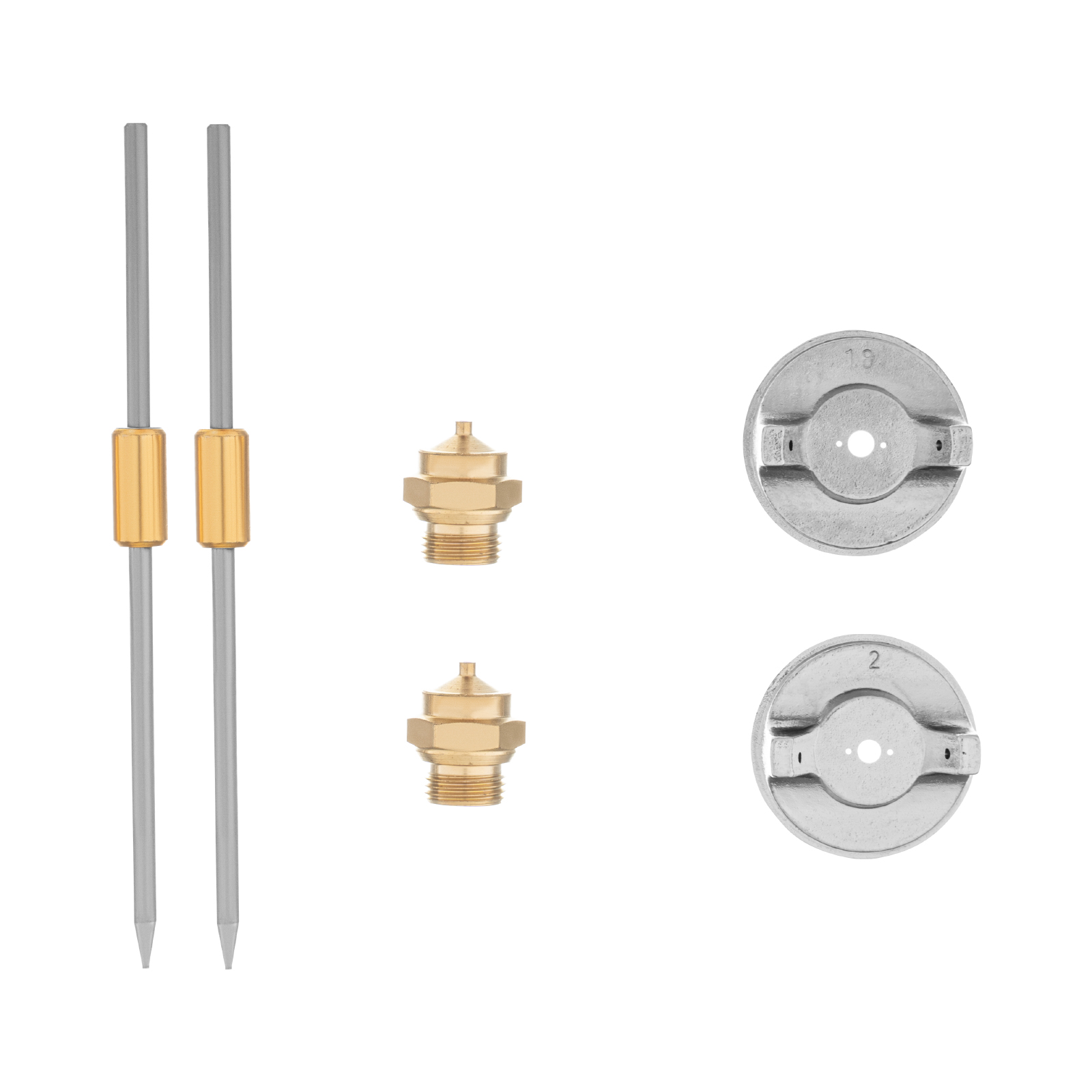 Краскораспылитель с бачком - 1 штШтуцер - 1 штСменное сопло диаметром 1,2 мм - 1 штСменное сопло диаметром 1,5 мм - 1 штСменное сопло диаметром 1,8 мм - 1 штРуководство по эксплуатации и гарантийный талон - 1 шт