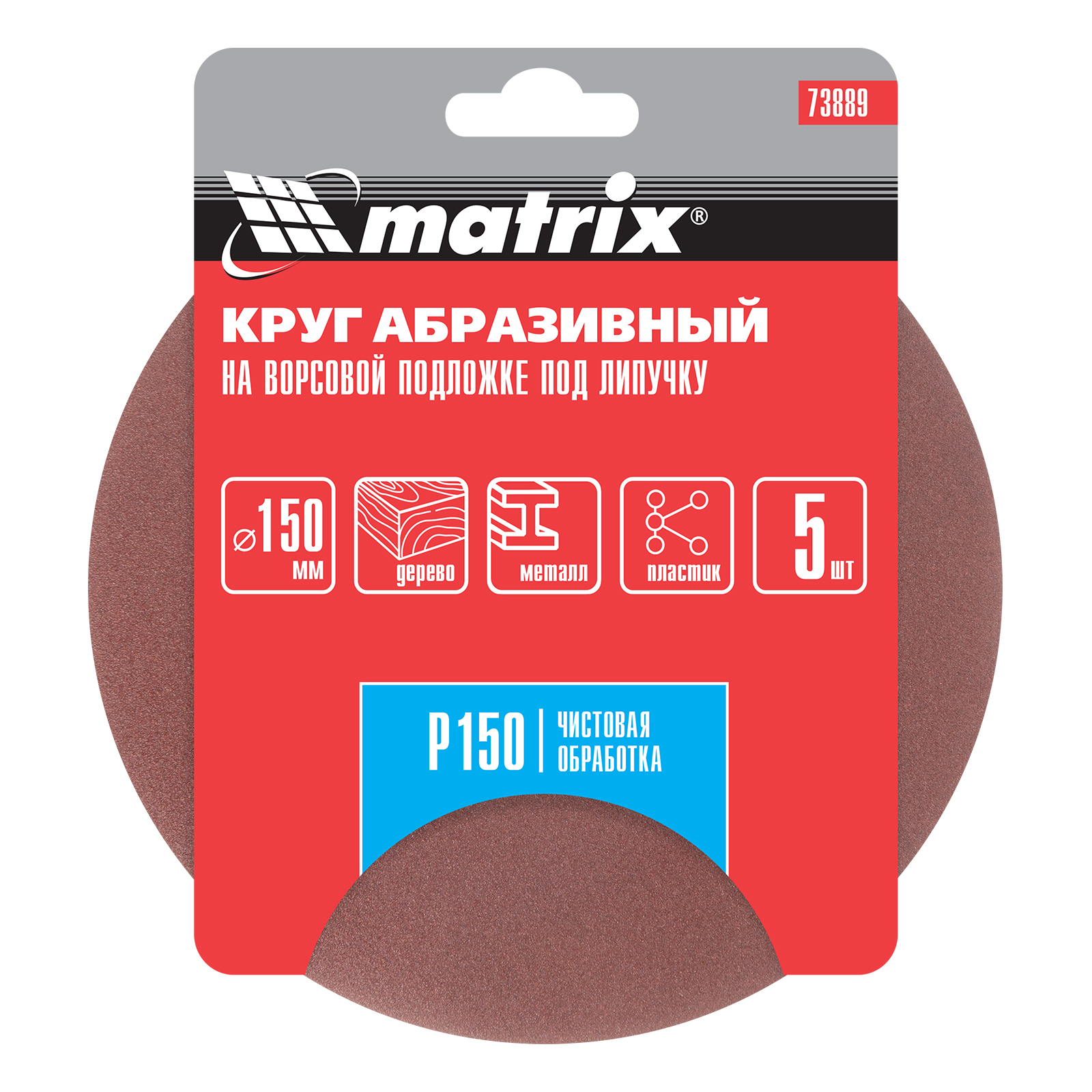 Абразивный круг на ворсовой подложке под «липучку» Matrix Р150 арт. 73889 используется для сухого чистового шлифования металла, дерева, пластика и других поверхностей. Круг устанавливается на эксцентриковые (орбитальные) шлифовальные машинки или на дрель с помощью опорной насадки Matrix.