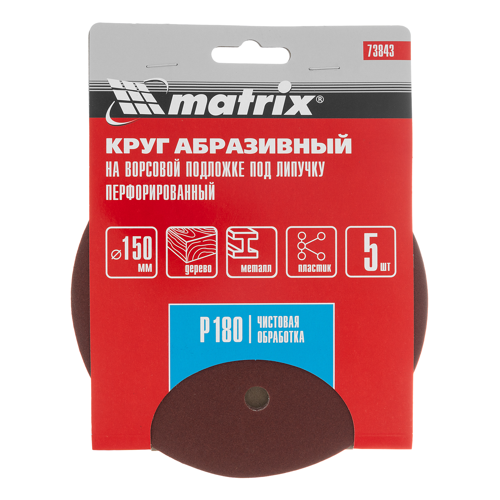 Перфорированный абразивный круг на ворсовой подложке под «липучку» Matrix 73843 с зернистостью Р 180, диаметром 150 мм, используется для сухого чистового шлифования металла, древесины, пластика и других поверхностей. Круг устанавливается на эксцентриковую (орбитальную) шлифовальную машинку с возможностью отвода воздуха или на дрель с помощью опорной насадки Matrix соответствующего диаметра. Абразив Р 180 позволяет придать поверхности гладкость для дальнейшего нанесения лака, эмали и других отделочных материалов.