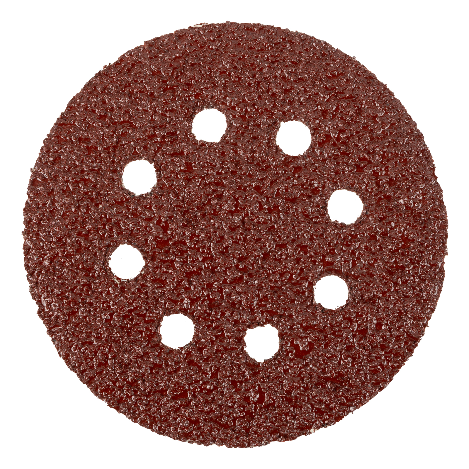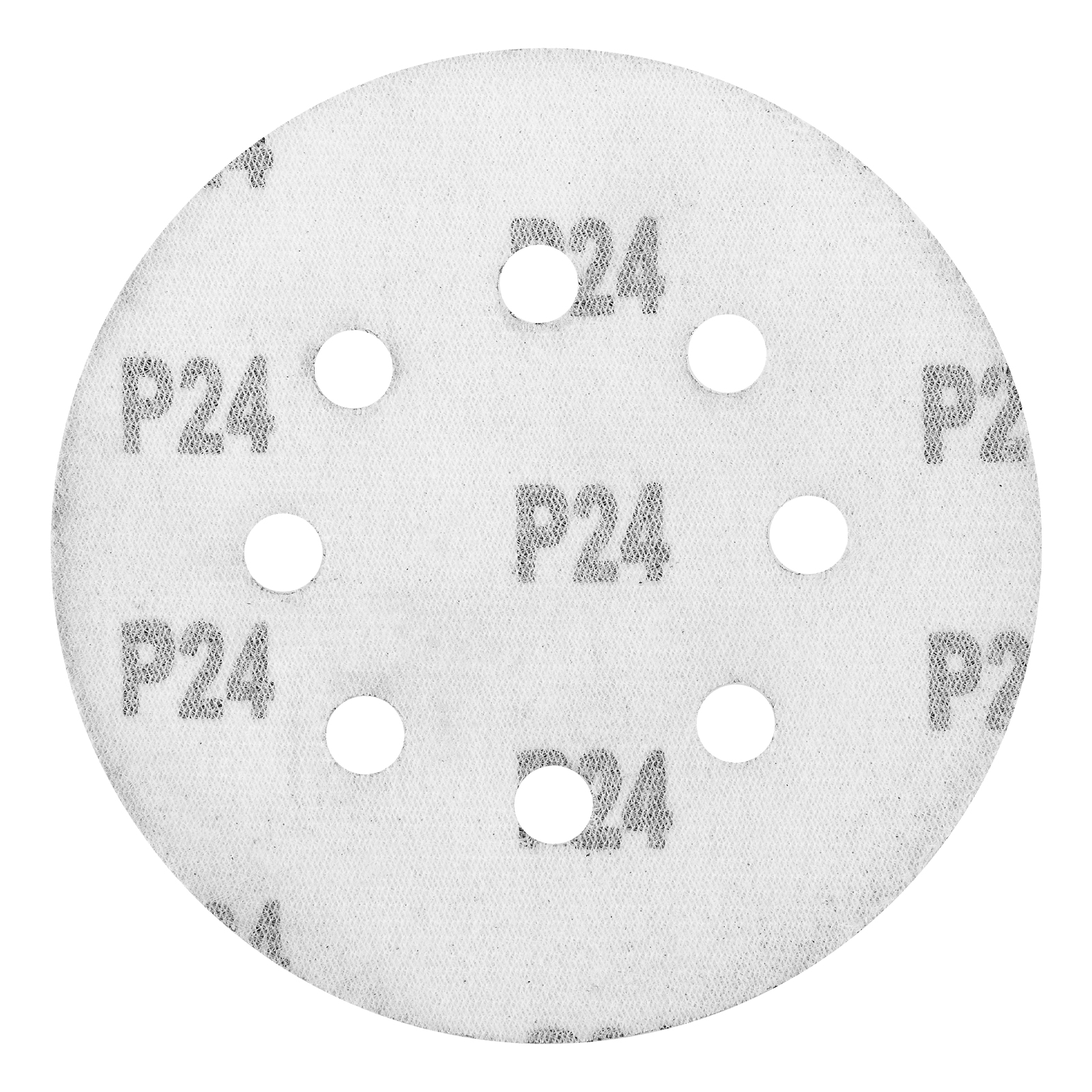 Перфорированный абразивный круг Matrix 73800 диаметром 125 мм, с крупнозернистым абразивом P 24, на ворсовой подложке под «липучку», 5 шт. в упаковке, используется для сухого чернового шлифования металла, древесины, пластика и других поверхностей. Позволяет избавиться от заусенцев, подходит для зачистки старого покрытия (краски/лака), удаления ржавчины, снятия слоя материала. Круг устанавливается на эксцентриковую (орбитальную) шлифовальную машинку с отводом воздуха или на дрель с помощью опорной насадки Matrix.