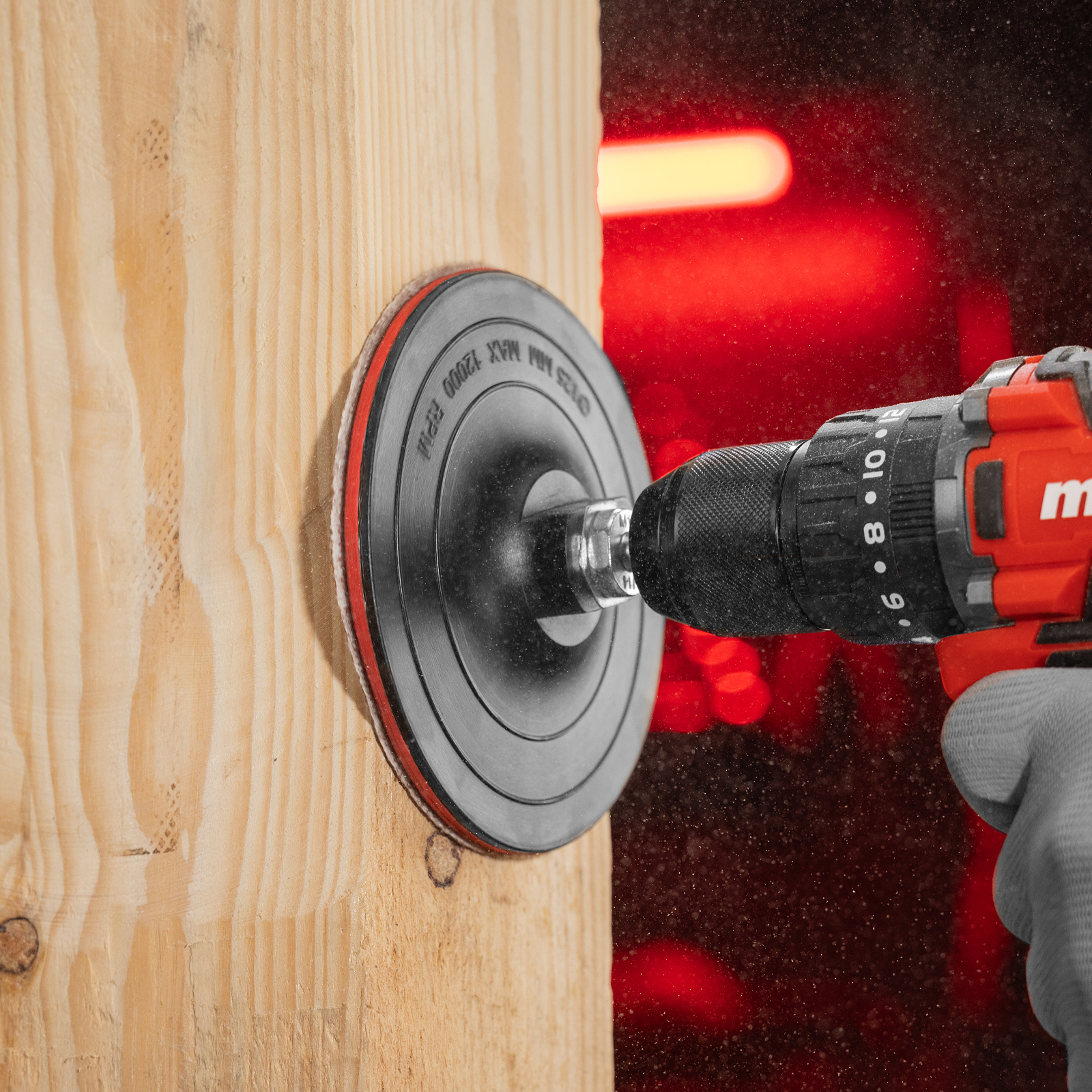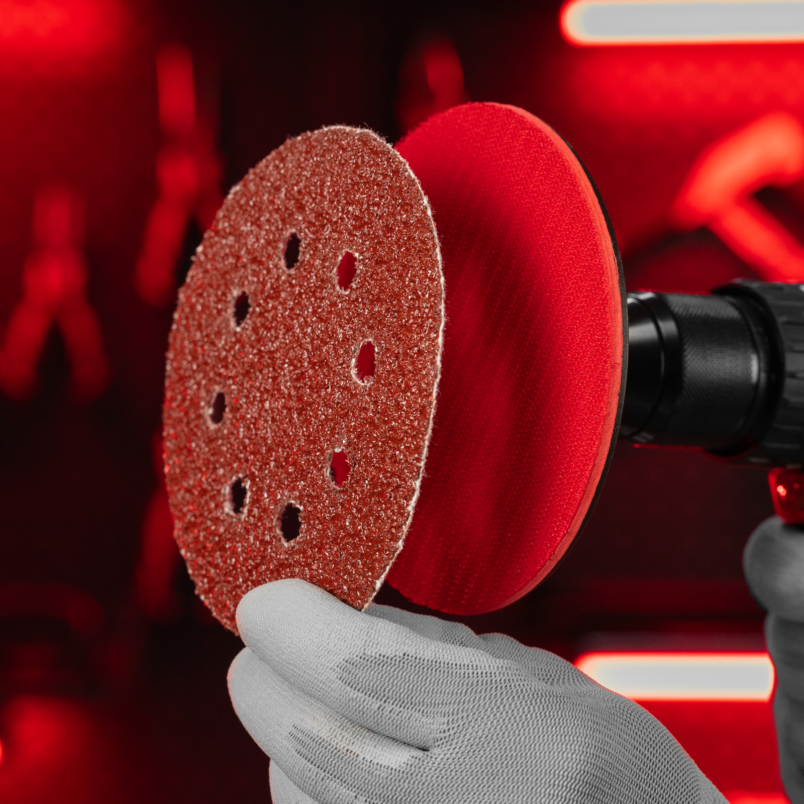 Быстрая установка и замена оснастки — благодаря ворсовой подложке круг крепится к опорной тарелке на липучку за несколько секунд.