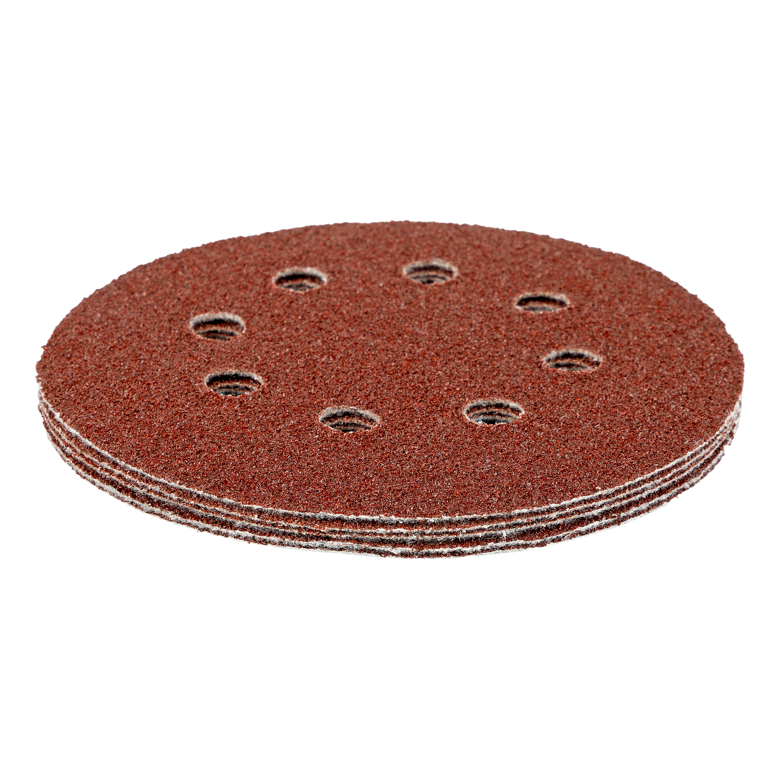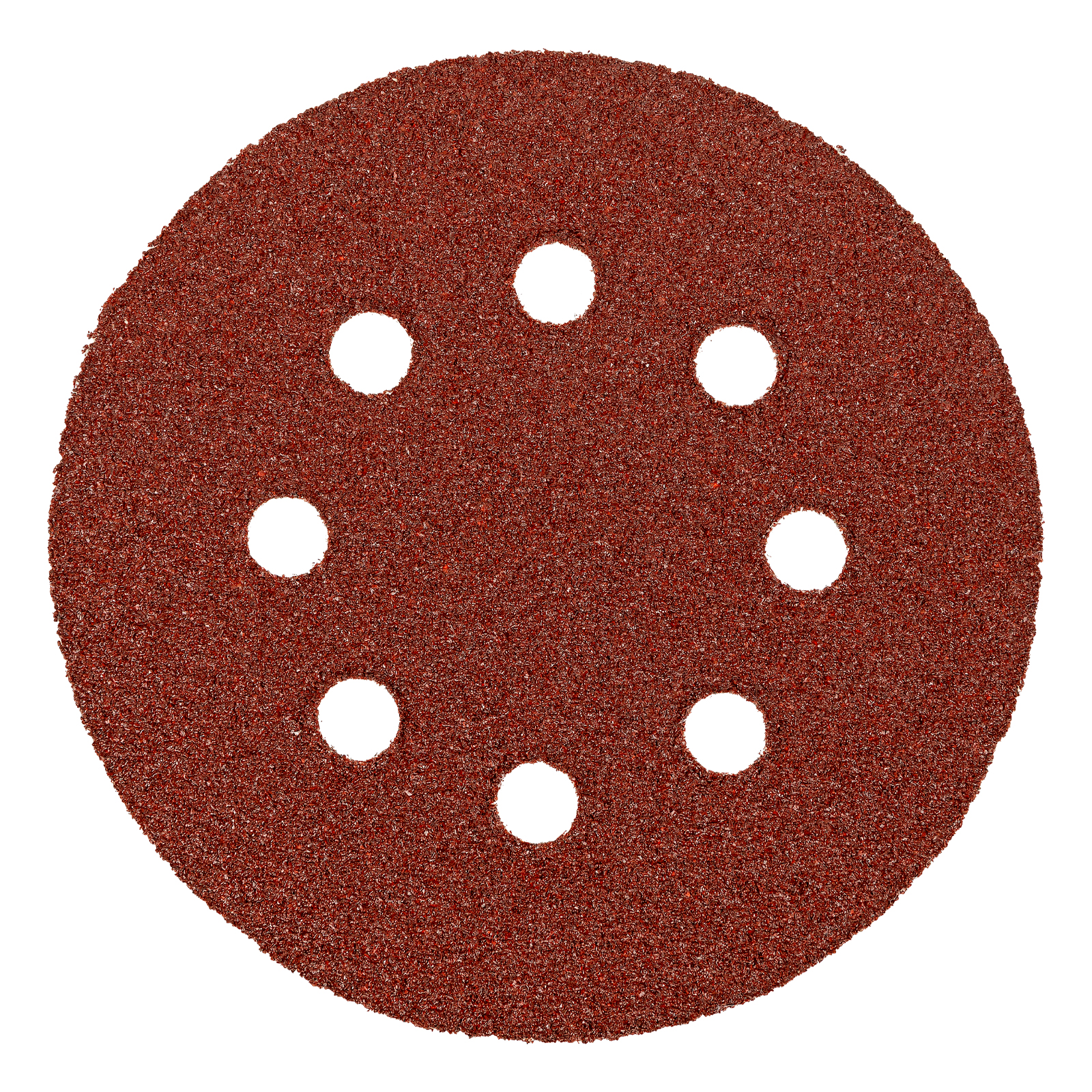 Перфорированный абразивный круг Matrix 73802 диаметром 125 мм, с крупнозернистым абразивом P 40, на ворсовой подложке под «липучку», 5 шт. в упаковке, используется для сухого чернового шлифования металла, древесины, пластика и других поверхностей. Позволяет избавиться от заусенцев, подходит для зачистки старого покрытия (краски/лака), удаления ржавчины, снятия слоя материала. Круг устанавливается на эксцентриковую (орбитальную) шлифовальную машинку с отводом воздуха или на дрель с помощью опорной насадки Matrix.