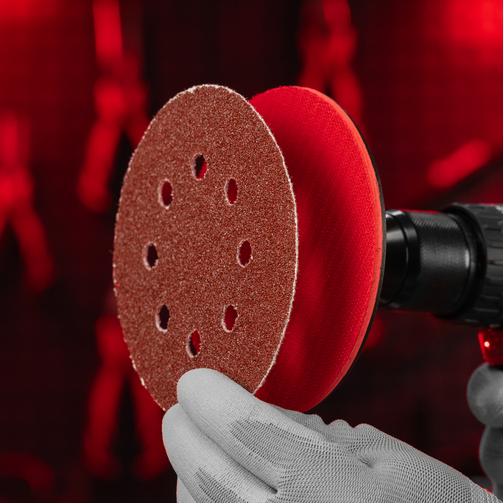 Быстрая установка и замена оснастки — благодаря ворсовой подложке круг крепится к опорной тарелке на липучку за несколько секунд.
