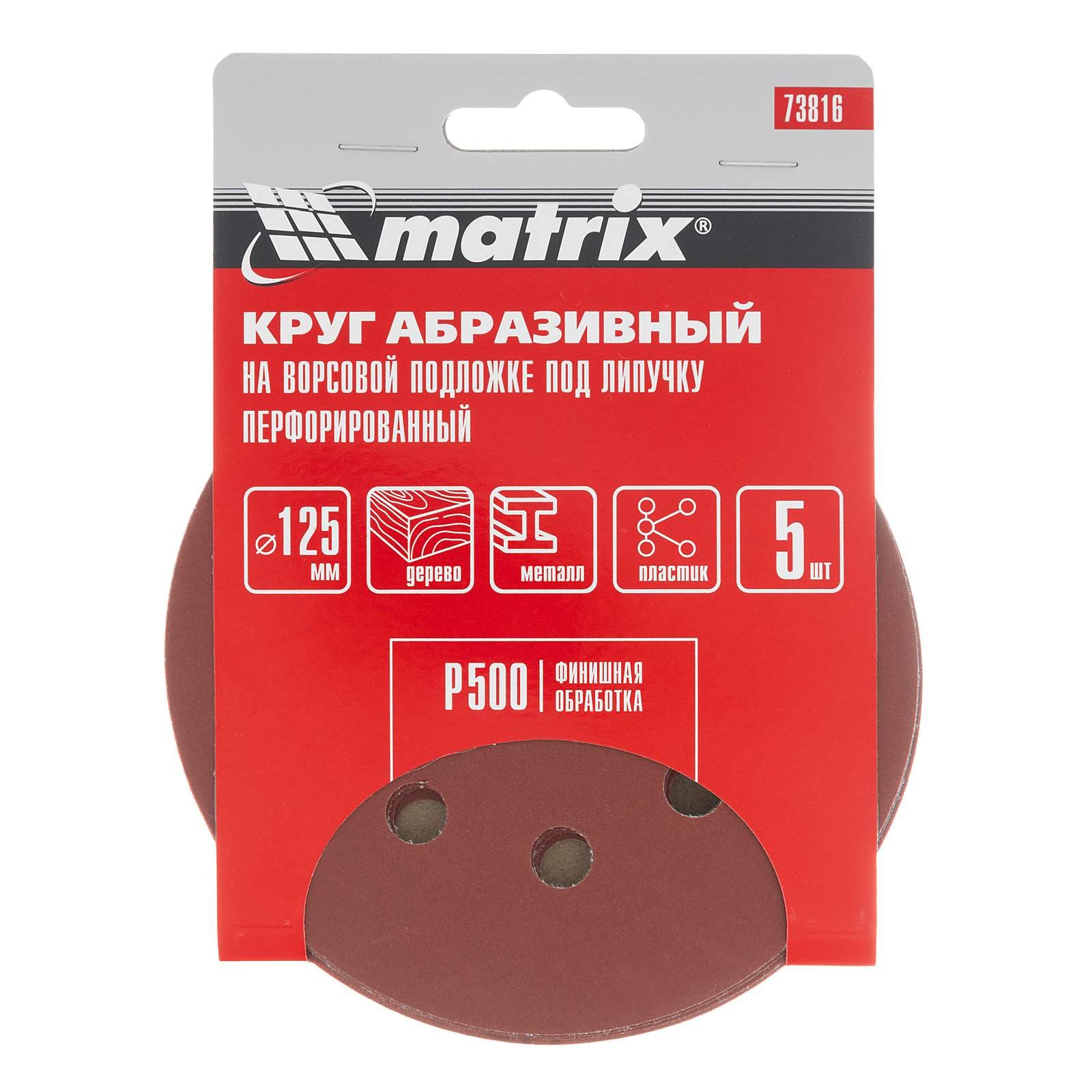 Абразивный круг на ворсовой подложке под «липучку» Matrix Р 500 арт. 73816 используется для итоговой обработки металла, дерева, пластика и других поверхностей. Круг устанавливается на эксцентриковые (орбитальные) шлифовальные машинки с отводом воздуха или на дрель с помощью опорной насадки Matrix. Мелкозернистый абразив Р500 шлифует поверхность до зеркального блеска, делая ее гладкой. Применяется для сухой обработки.