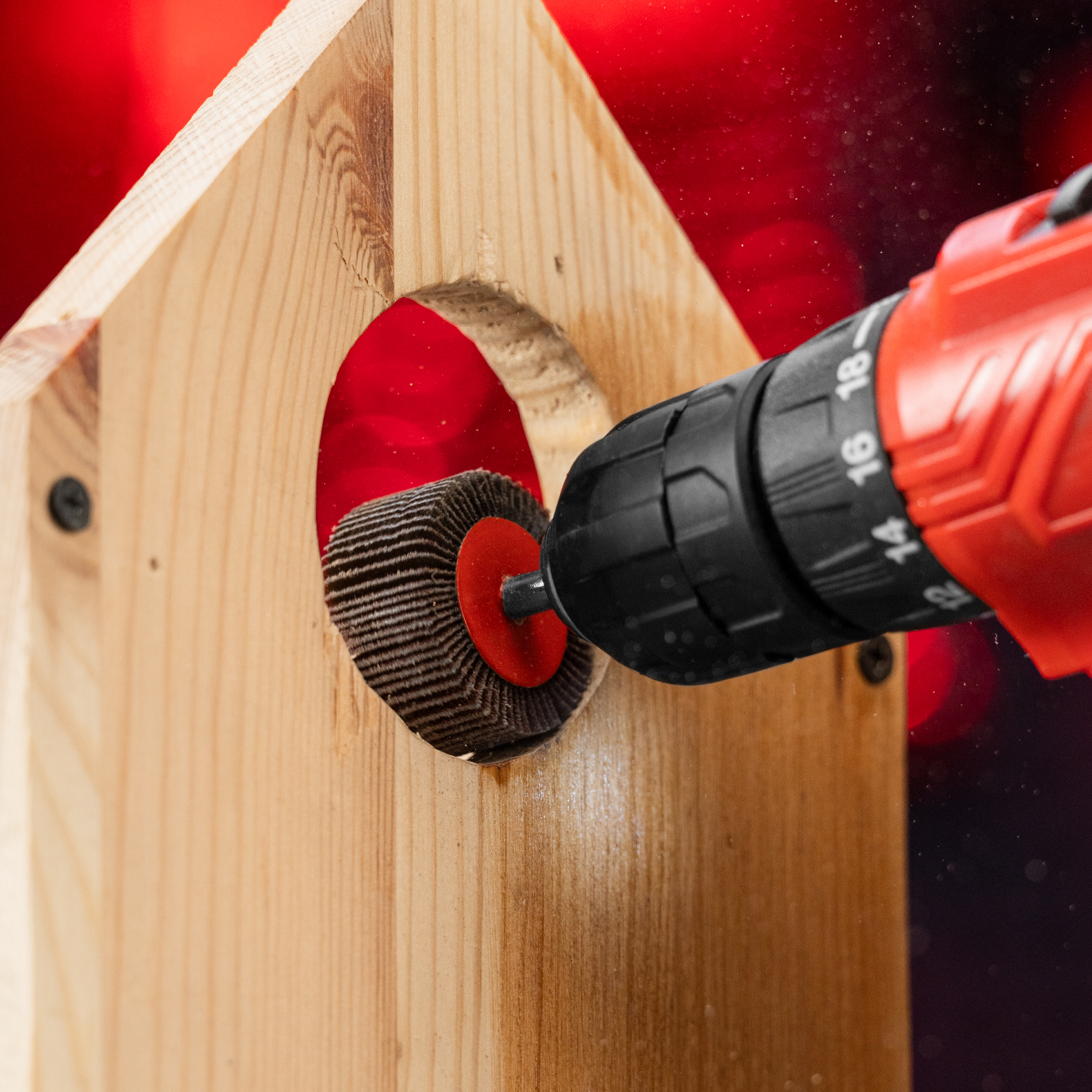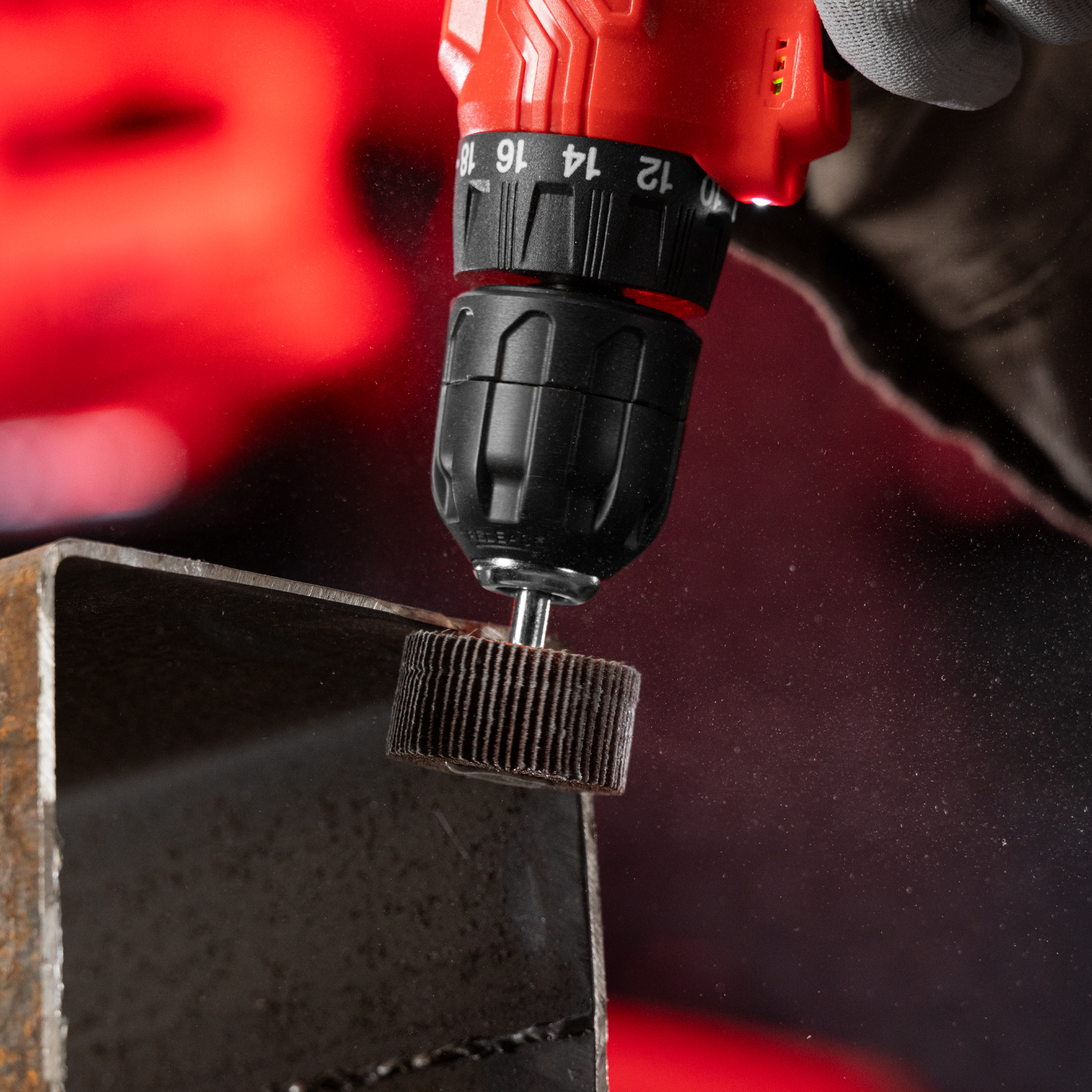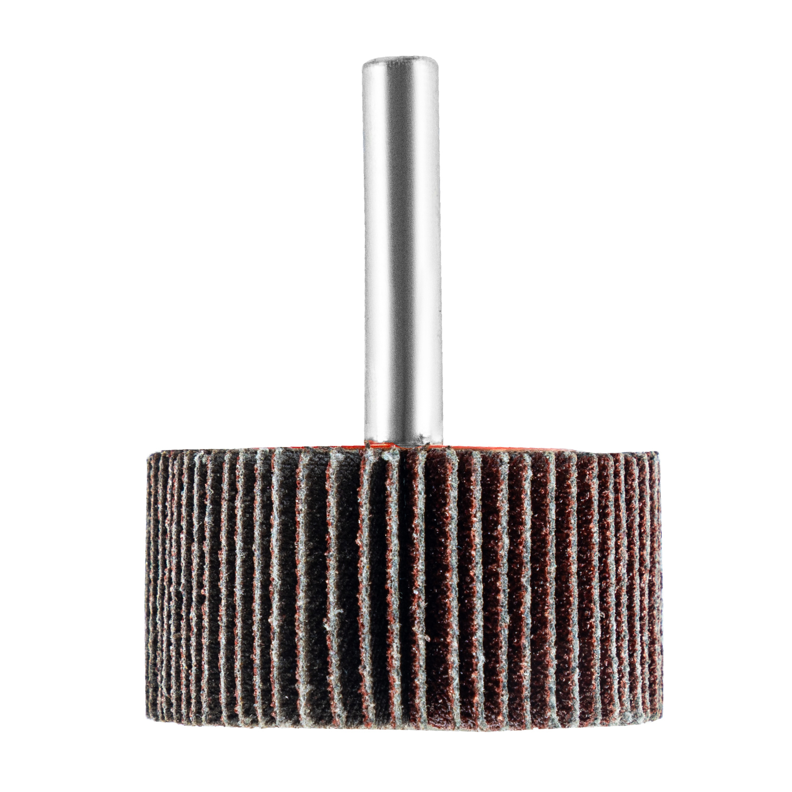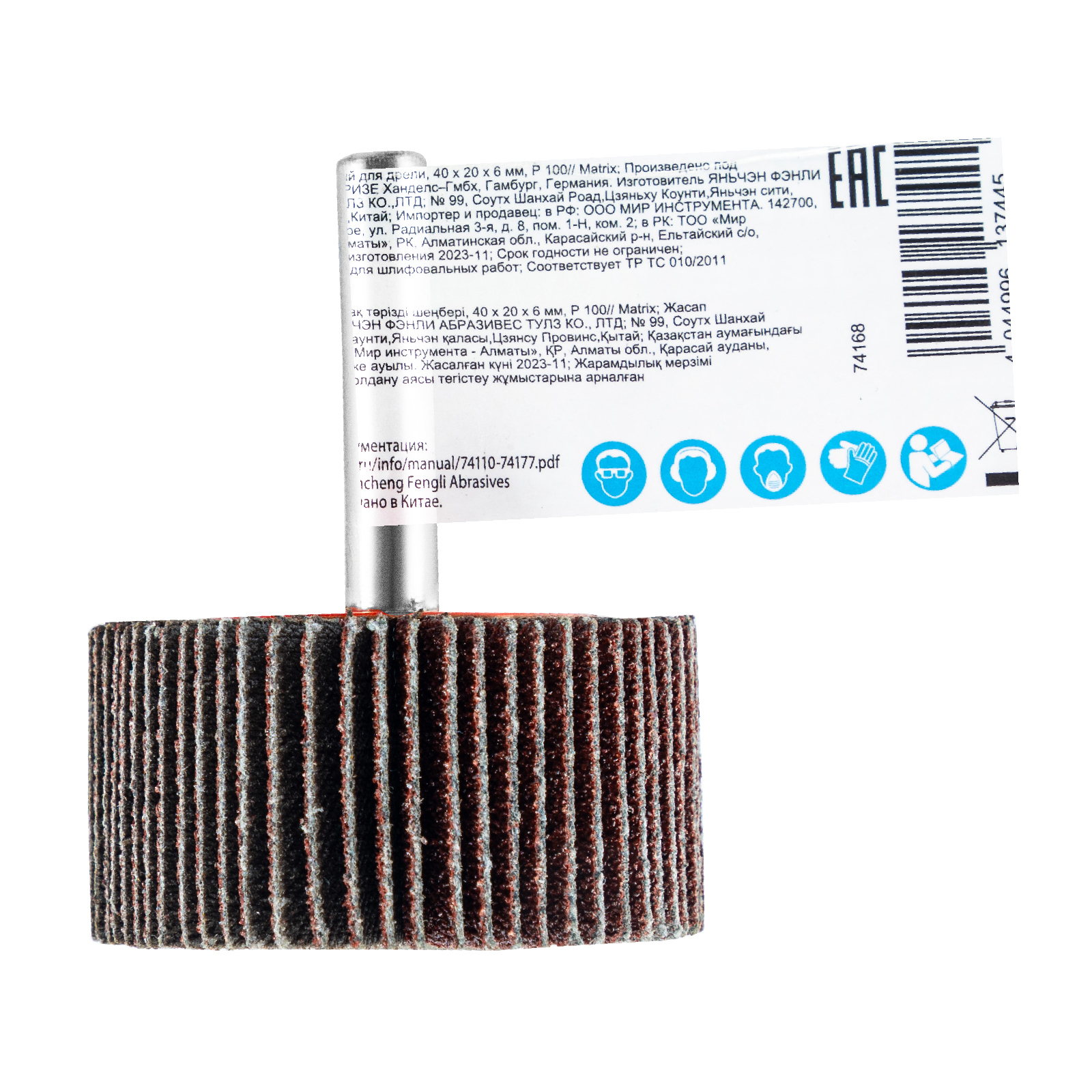 Лепестковый круг Matrix 74168 размером 40 х 20 х 6 мм, с зернистостью P 100, устанавливается в патрон дрели или прямой шлифовальной машины с посадочным диаметром 6 мм и максимальной скоростью вращения 12000 об/мин. Применяется для радиальной шлифовки внутренних и наружных поверхностей. Среднезернистый абразив P 100 успешно справляется с промежуточной обработкой металла и древесины — снятием тонкого слоя лака, краски, ржавчины и заусенцев.