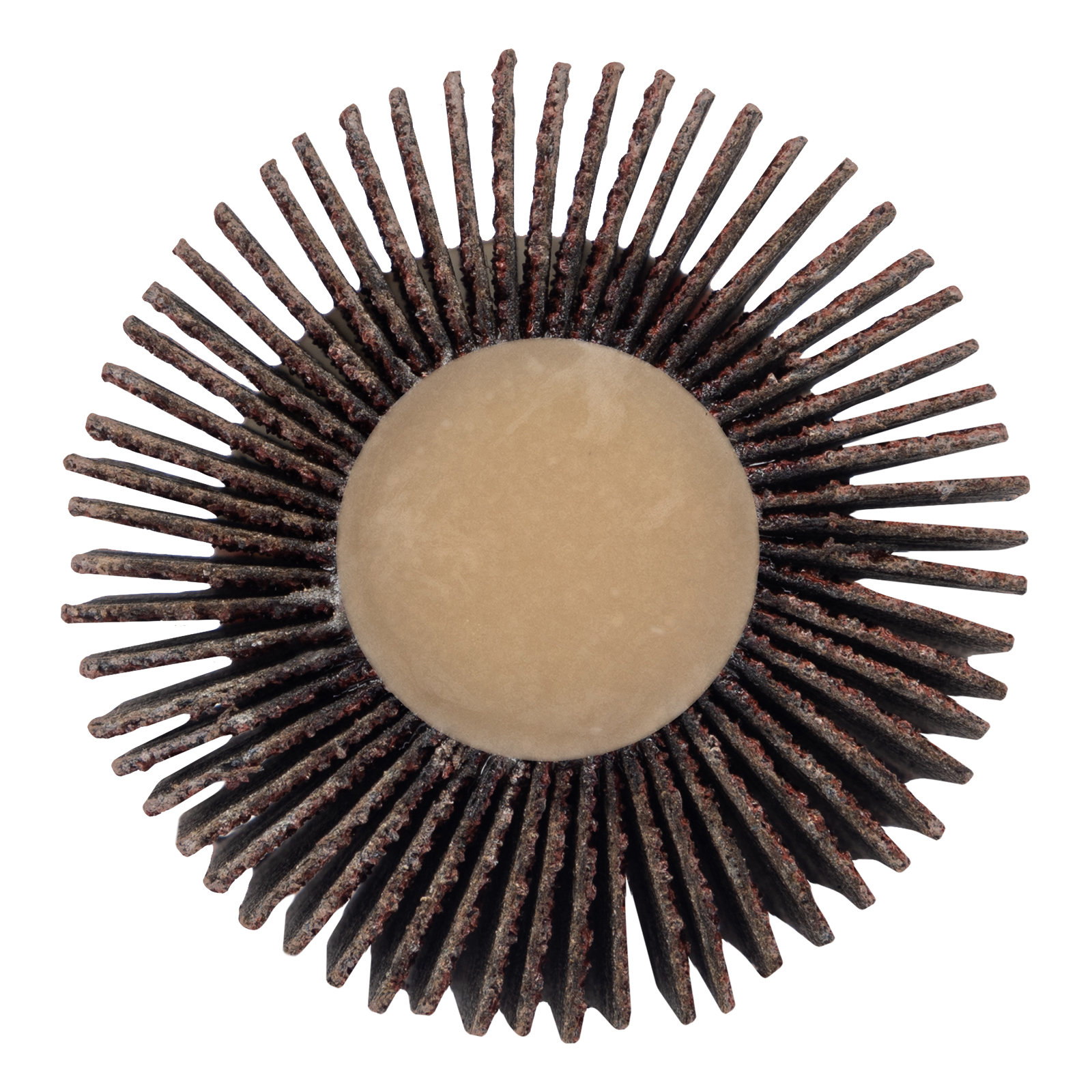 - Надежность — лепестки из прочной х/б ткани прикреплены к оправке при помощи бакелитовой смолы, поэтому круг устойчив к трению и давлению.