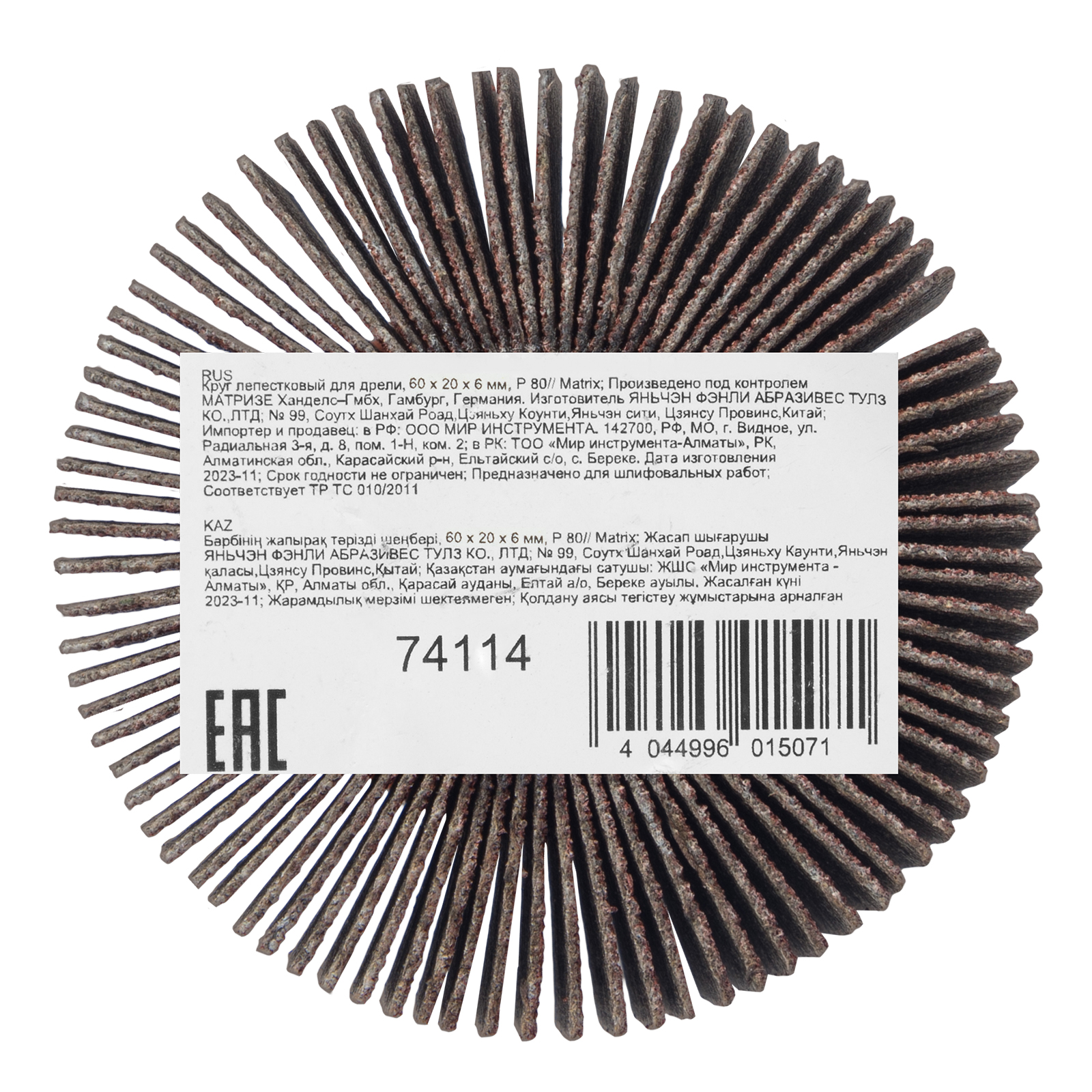 Лепестковый круг Matrix 74114 размером 60 х 20 х 6 мм, с зернистостью P 80, совместим с дрелями и прямыми шлифовальными машинами с посадочным диаметром 6 мм и максимальной скоростью вращения 8000 об/мин. Предназначен для радиального шлифования внутренних и наружных поверхностей. Абразив P 80 позволяет проводить промежуточную обработку древесины и металла — удалять заусенцы, слои лака, ржавчины или краски, зачищать сварные швы, готовить поверхности к чистовому шлифованию.