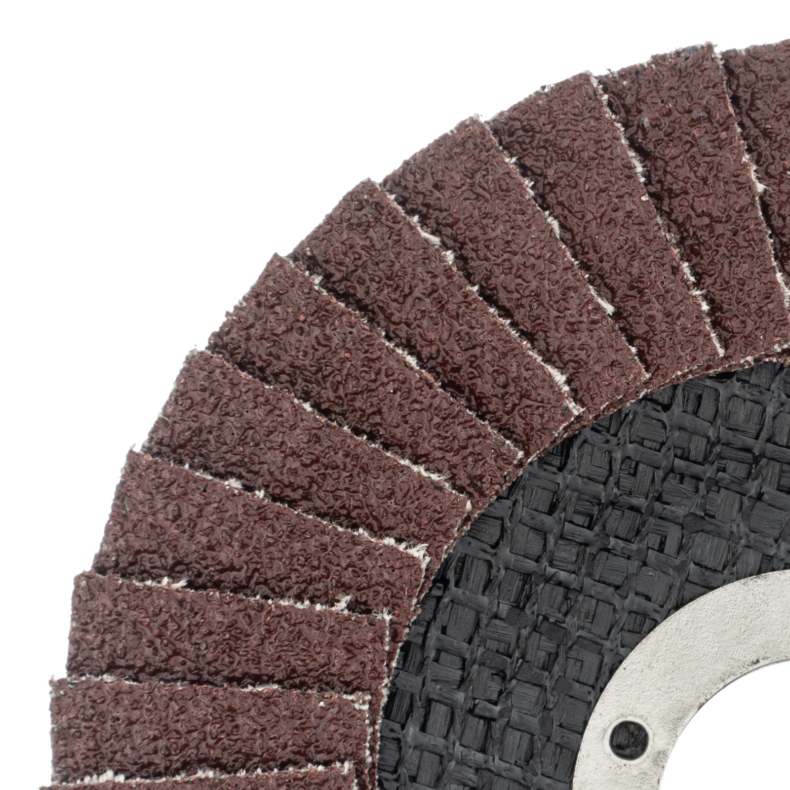 Основа круга выполнена из прочного стекловолокна, а лепестки с абразивом крепятся к ней синтетической смолой, поэтому круг надежен и долговечен.