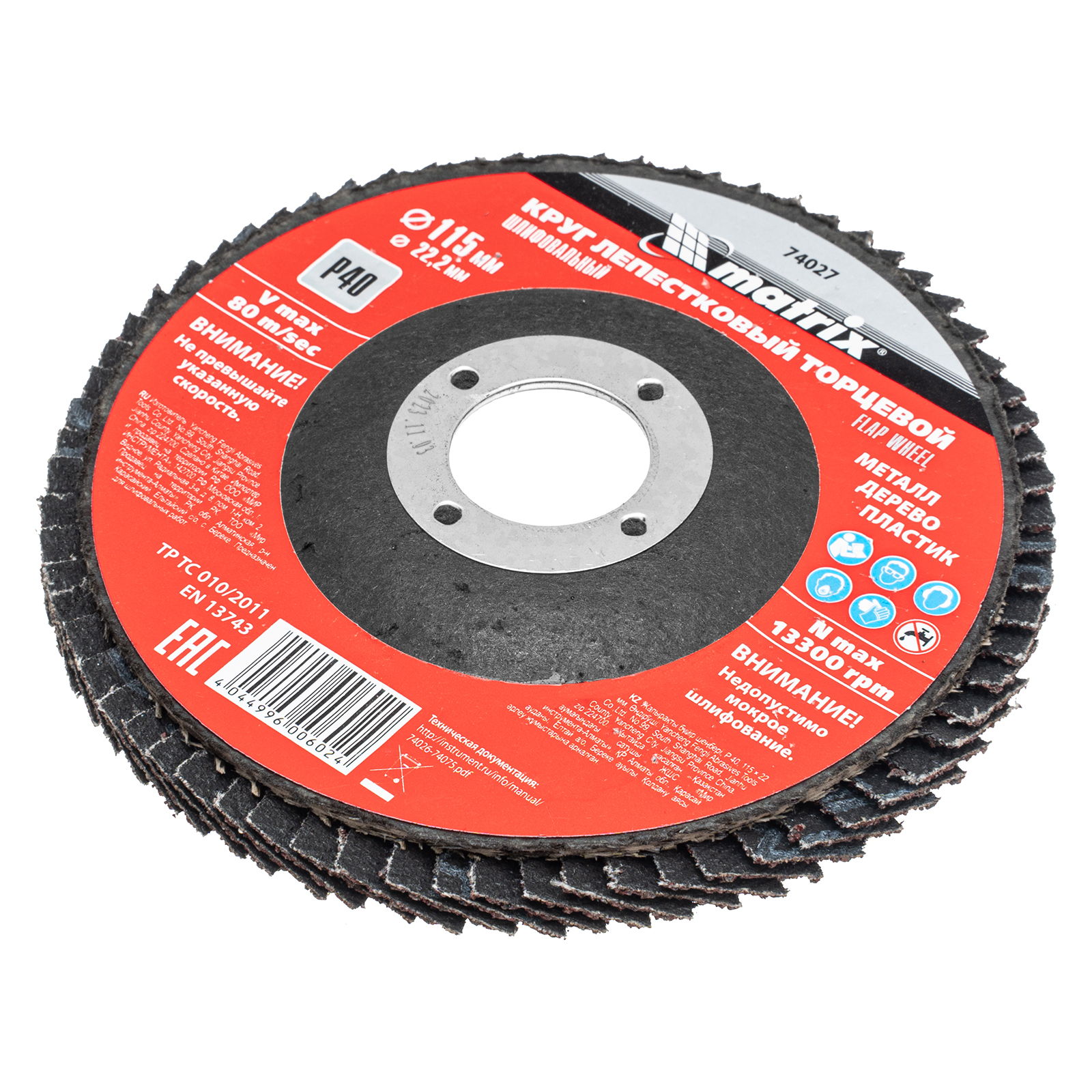 Круг лепестковый торцевой Matrix 74027 зернистостью Р40 и диаметром 115 мм за счет своей универсальности может использоваться для грубой (черновой) обработки практически любых поверхностей: деревянных, металлических, пластмассовых. Устанавливается на углошлифовальную машину с посадочным диаметром 22,2 мм. Эффективно удаляет дефекты с поверхностей, зачищает сварные швы, снимает толстый слой ЛКМ, ржавчины и т.д.