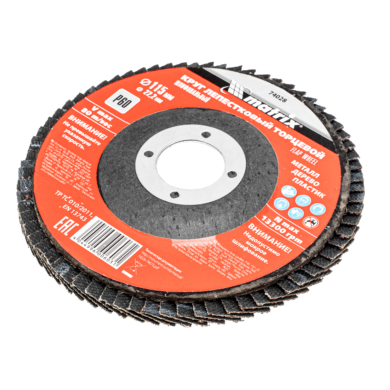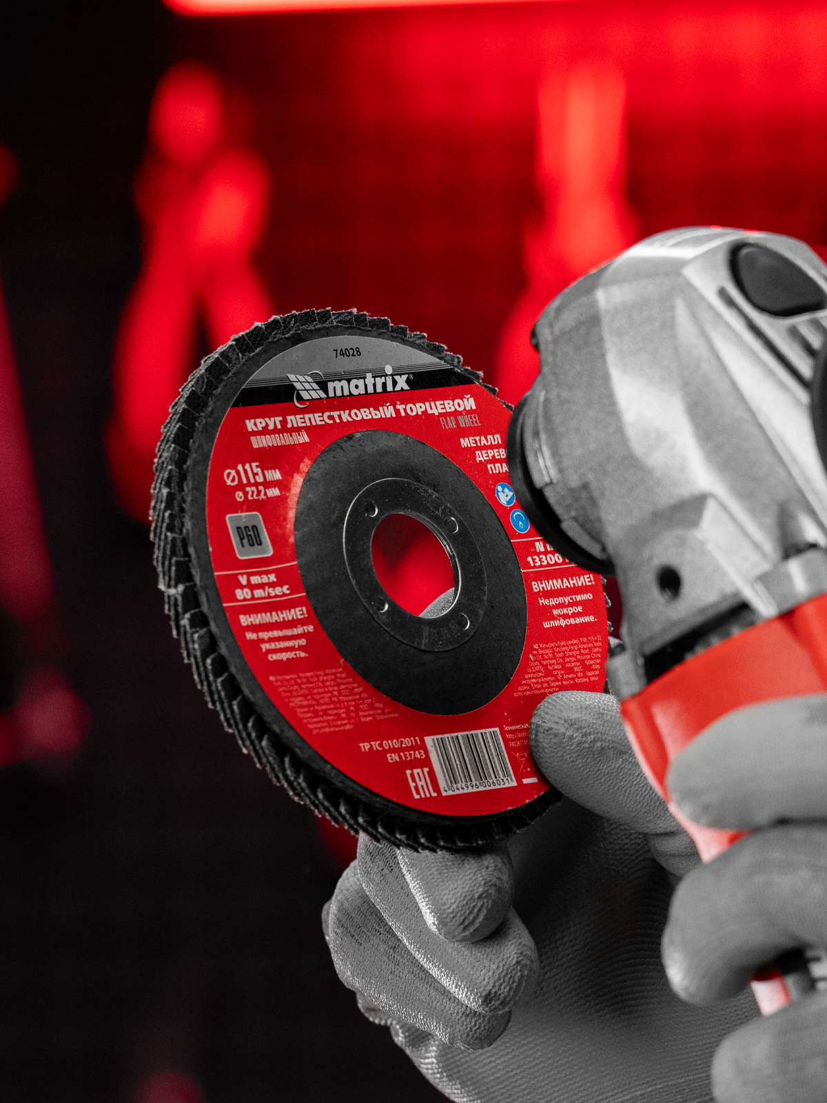 Круг лепестковый торцевой Matrix 74028 зернистостью Р60 и диаметром 115 мм за счет своей универсальности может использоваться для грубой (черновой) обработки практически любых поверхностей: деревянных, металлических, пластмассовых. Устанавливается на углошлифовальную машину с посадочным диаметром 22,2 мм. Эффективно удаляет дефекты с поверхностей, зачищает сварные швы, снимает толстый слой ЛКМ, ржавчины и т.д.