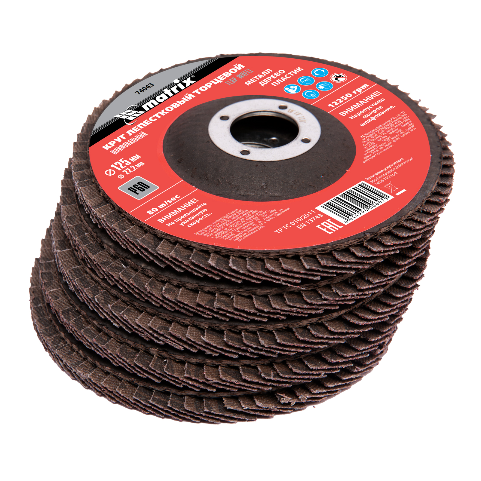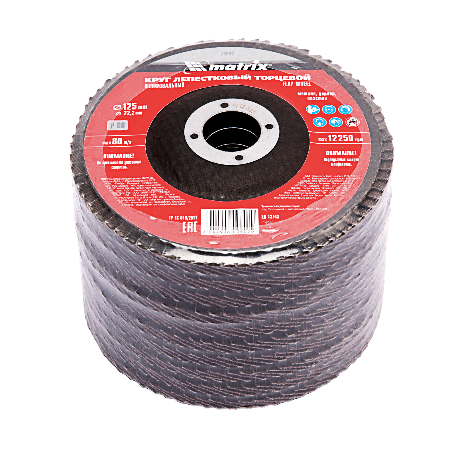 Круг лепестковый торцевой Matrix 74043 зернистостью Р60 и диаметром 125 мм за счет своей универсальности может использоваться для грубой (черновой) обработки практически любых поверхностей: деревянных, металлических, пластмассовых. Устанавливается на углошлифовальную машину с посадочным диаметром 22,2 мм. Эффективно удаляет дефекты с поверхностей, зачищает сварные швы, снимает толстый слой ЛКМ, ржавчины и т.д.