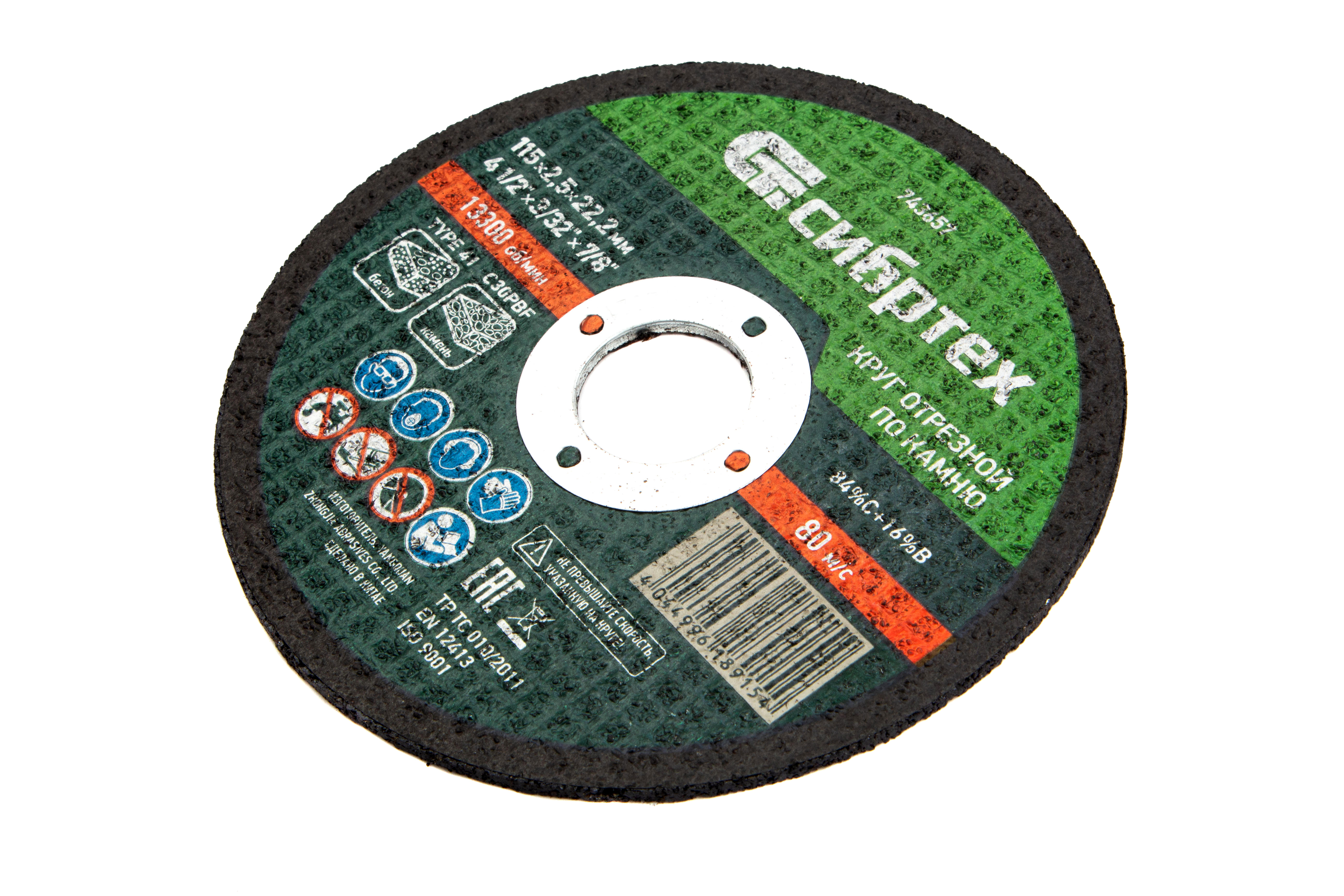 Отрезной круг по камню Сибртех 743657 размером 115 х 2,5 х 22,2 мм — оснастка для ручной углошлифовальной машины, предназначенная для реза камня, огнеупорного кирпича, бетонных изделий, керамической плитки. Использования смазочно-охлаждающих жидкостей не требуется. Пригодится в быту, частной мастерской или на небольшом производстве.