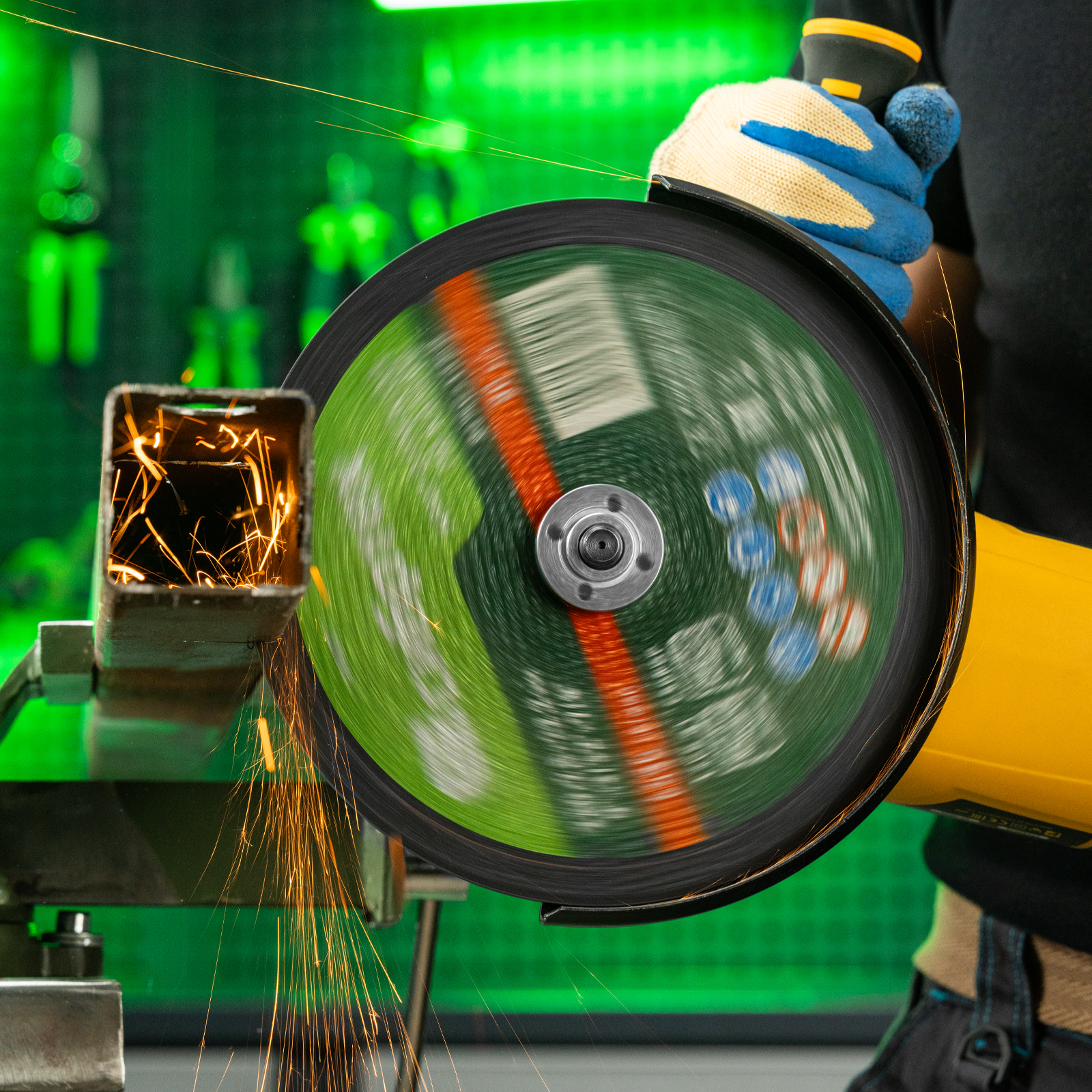 - Быстрый рез прочных материалов — абразив состоит из зерен высокотвердого карбида кремния с острыми гранями и отличной режущей способностью.