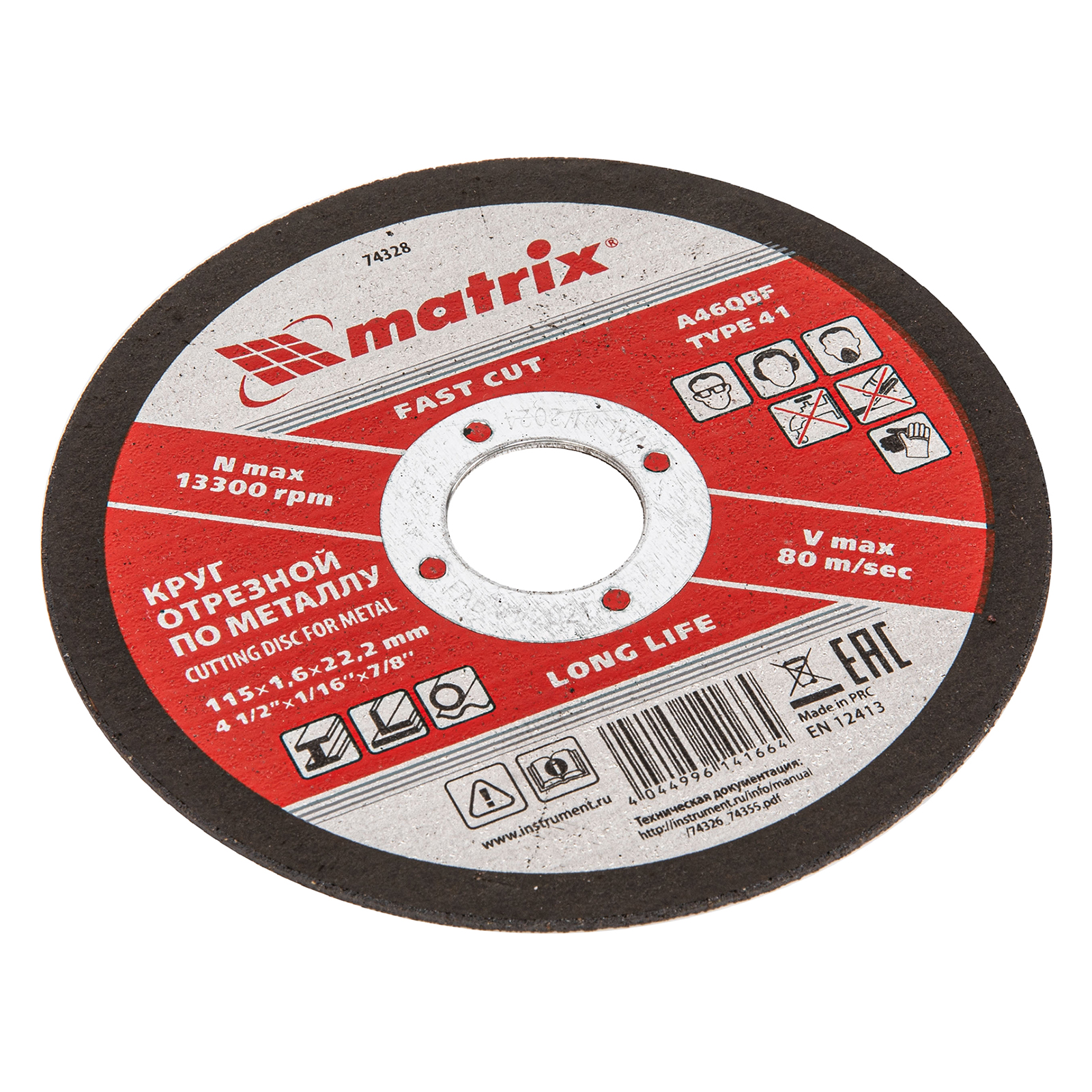 Отрезной круг по металлу Matrix A46QBF 74328 размером 115 х 1,6 х 22,2 мм оптимален для реза углеродистых сталей. Устанавливается на углошлифовальные машины с посадочным диаметром 22,2 мм. Круг рассчитан на бытовое использование в частной мастерской или гараже.