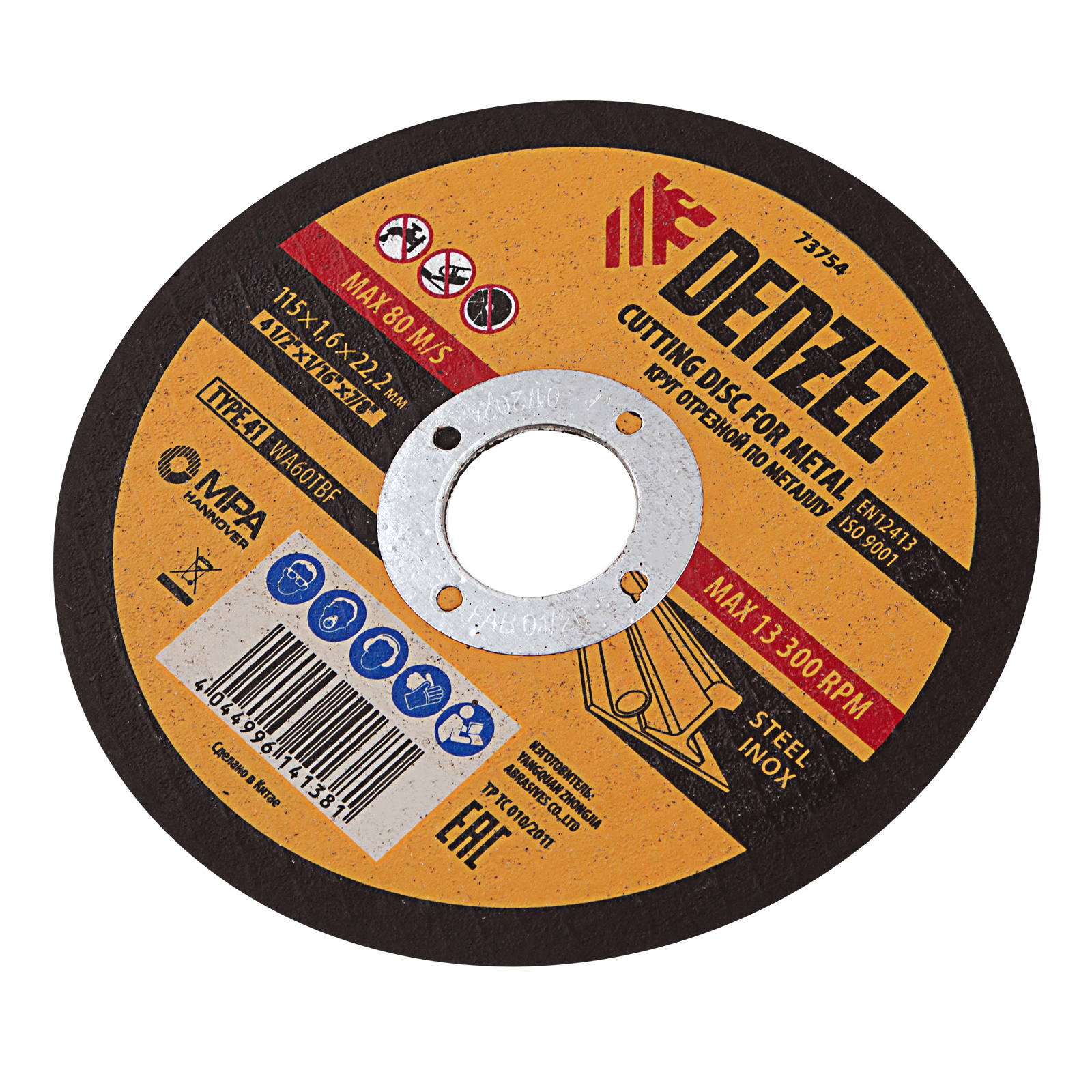 Отрезной круг по металлу Denzel WA46TBF 73754 размером 115 х 1,6 х 22,2 мм рассчитан на интенсивную работу с УШМ. Подходит для резки углеродистой и нержавеющей стали. Круг можно использовать не только в быту, но и для решения профессиональных задач.
