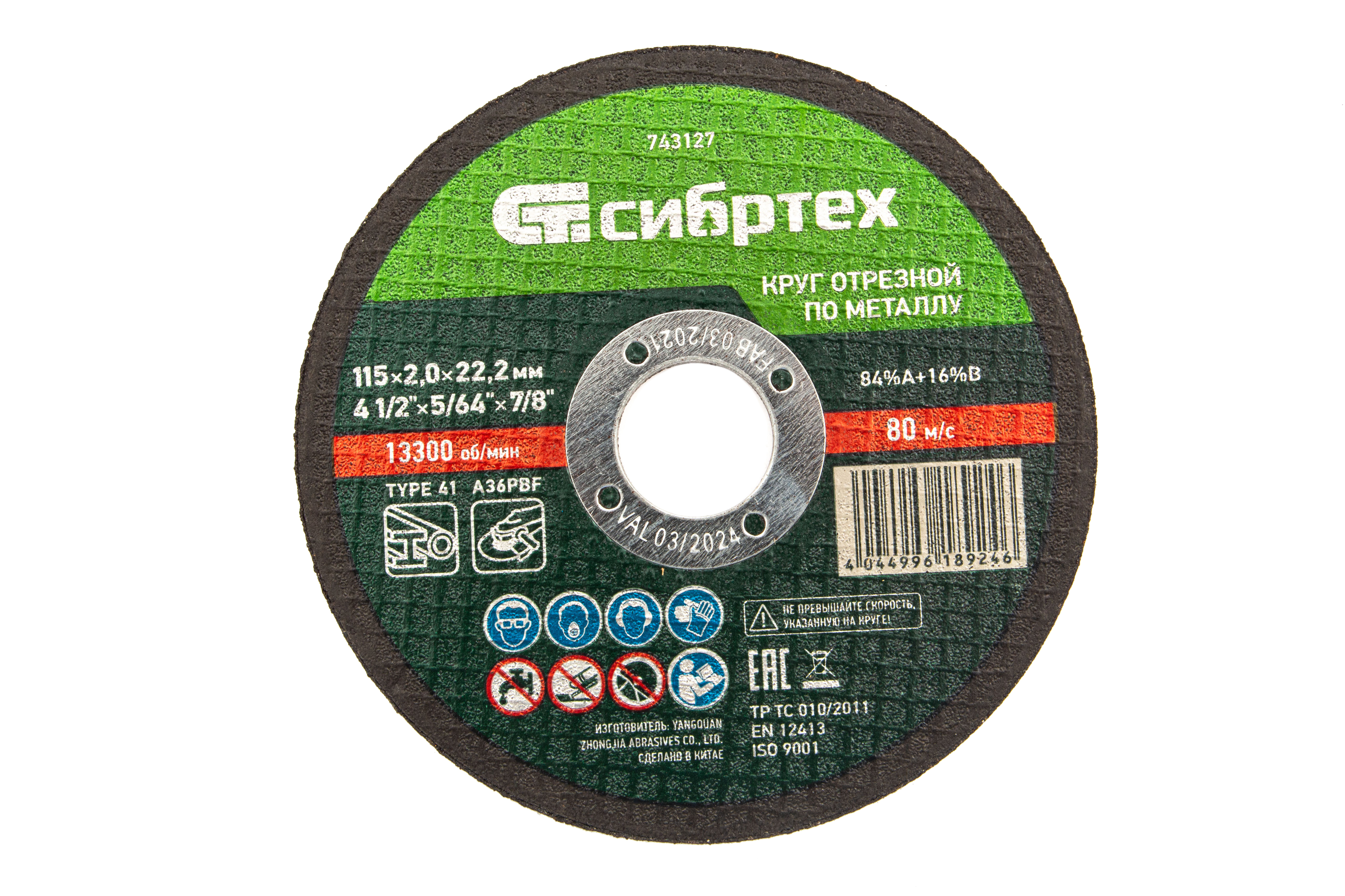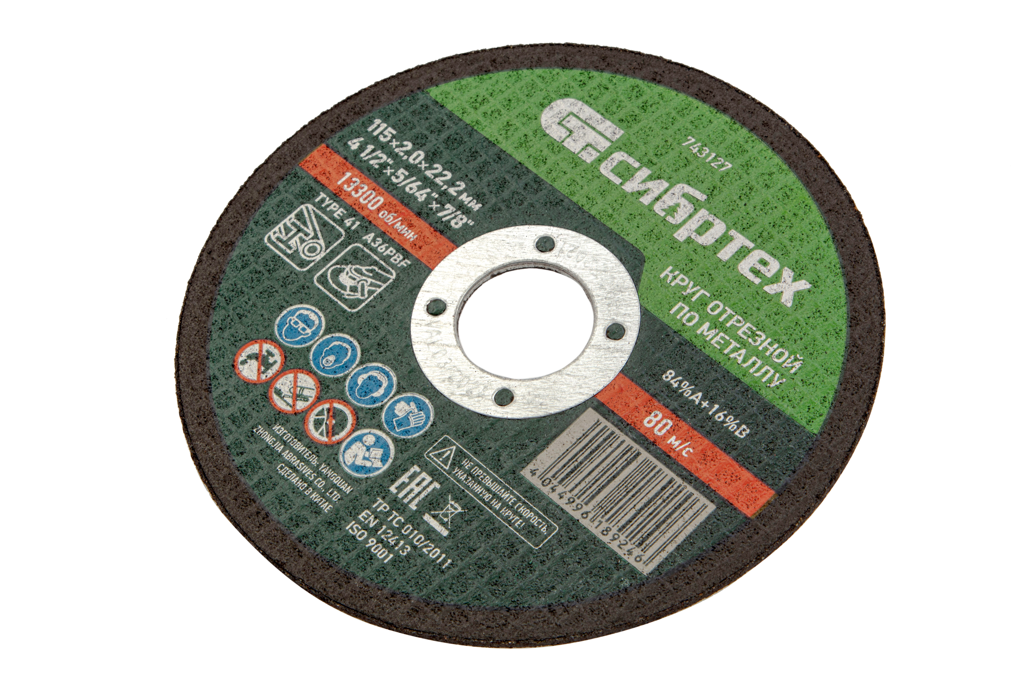 Отрезной круг по металлу Сибртех 84%A+16%B 743127 размером 115 х 2,0 мм устанавливается на фланец ручной углошлифовальной машины с посадочным размером 22,2 мм. Предназначен для резки углеродистых сталей. Круг пригодится частному мастеру для проведения ремонтных работ дома или в гараже.