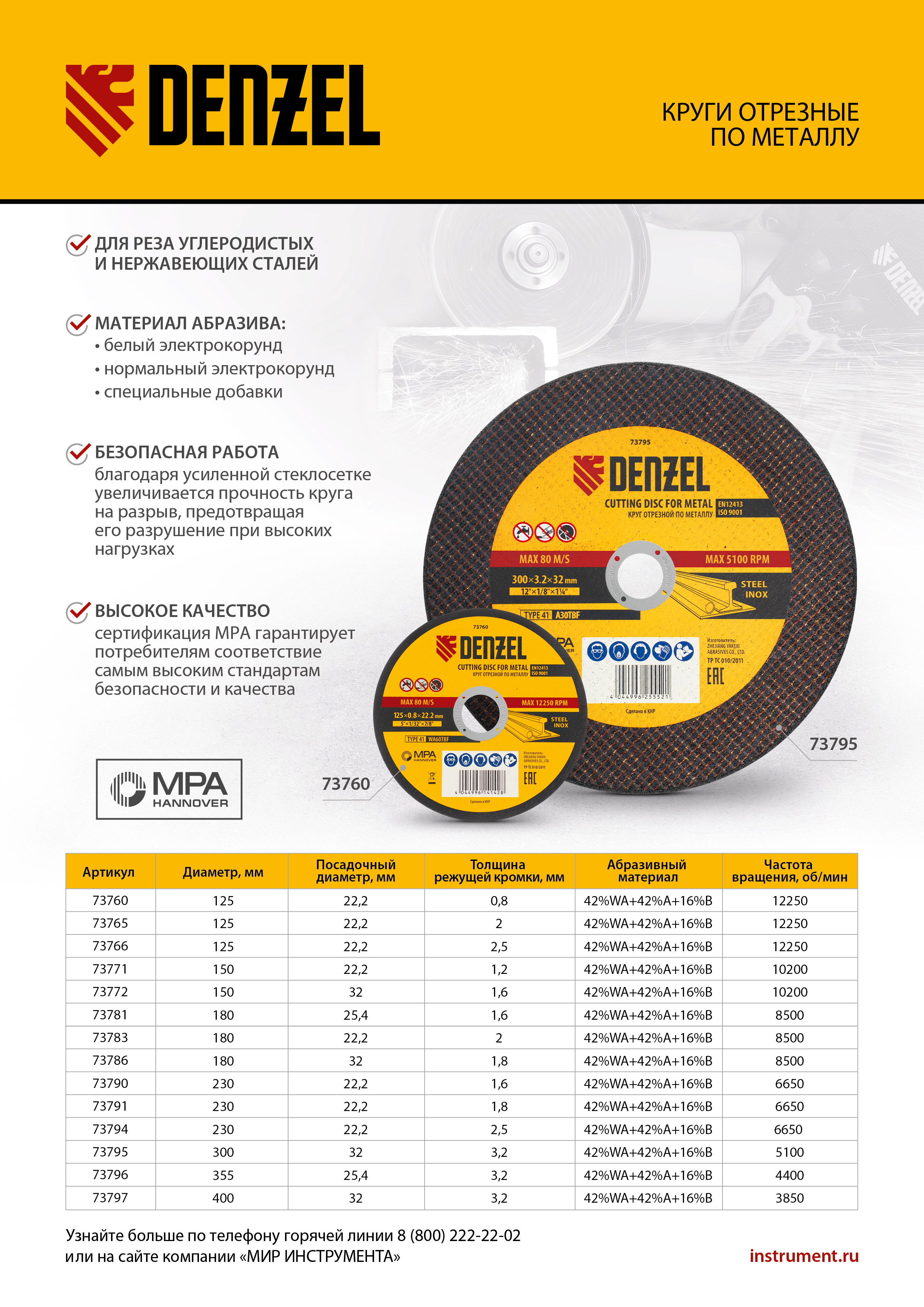 - Повышенная производительность — высокотвердый абразив из электрокорунда белого и электрокорунда нормального с зернистостью 60 и специальными добавками позволяет быстро и эффективно резать прочные материалы.