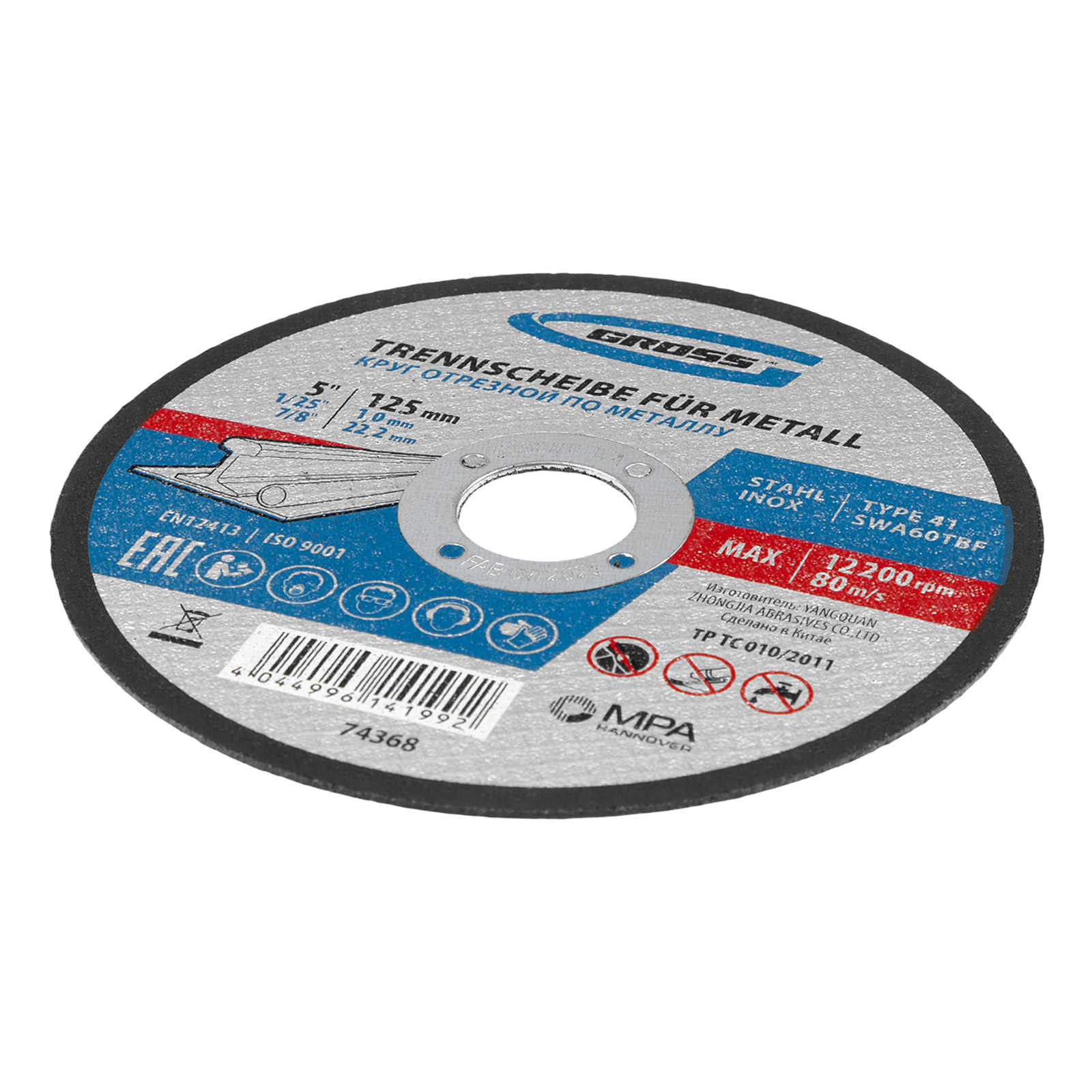 Отрезной круг по металлу Gross SWA60TBF 74368 размером 125 х 1,0 х 22,2 мм рассчитан на интенсивный рез углеродистой и нержавеющей стали, алюминия, чугуна. Устанавливается на УШМ соответствующего типоразмера и не требует частой замены, подходит для профессиональной эксплуатации с высокими нагрузками.