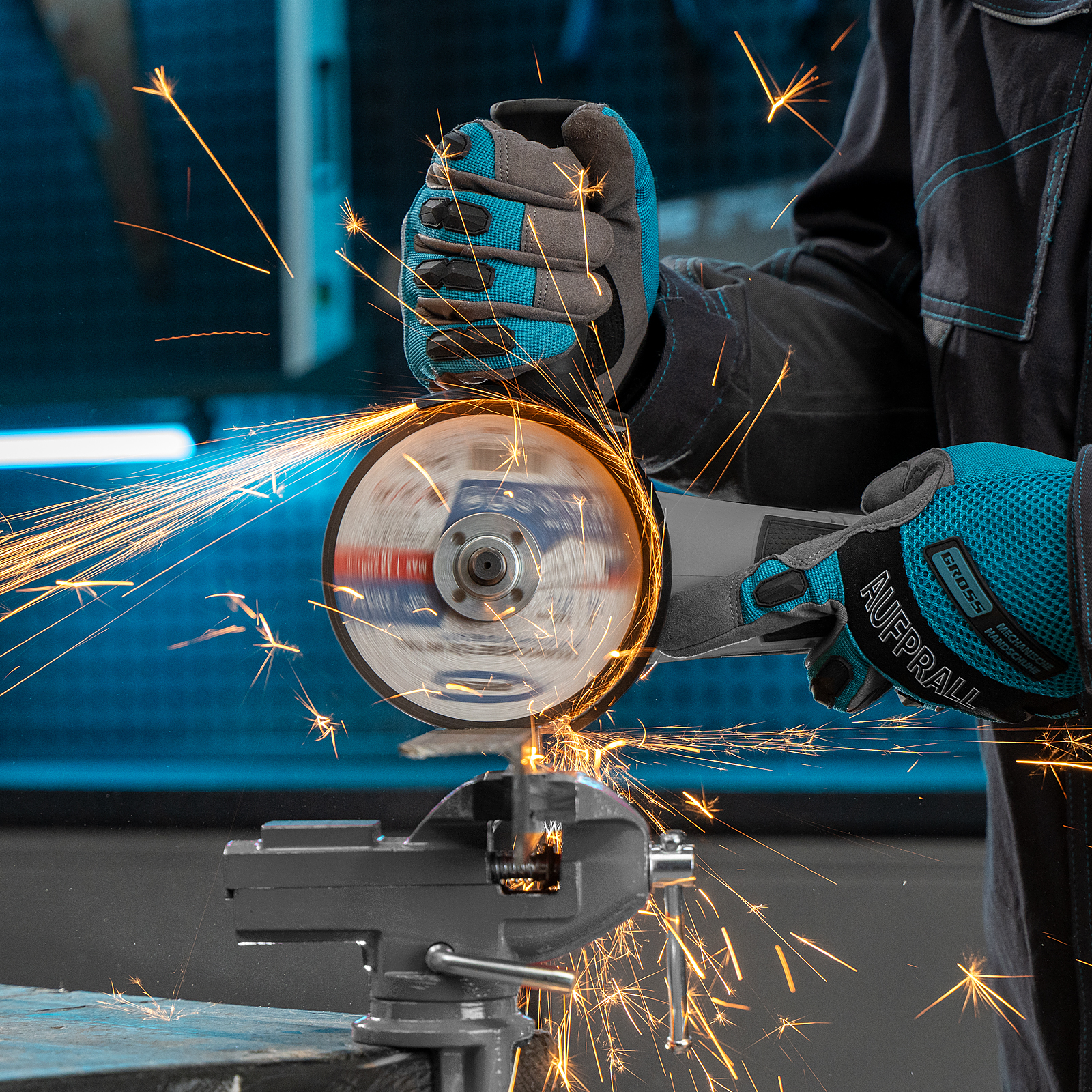 - Безопасная работа — высококачественная двухслойная стеклосетка защищает круг от перегрузок, предотвращая его разрушение в случае зажатия в материале.
