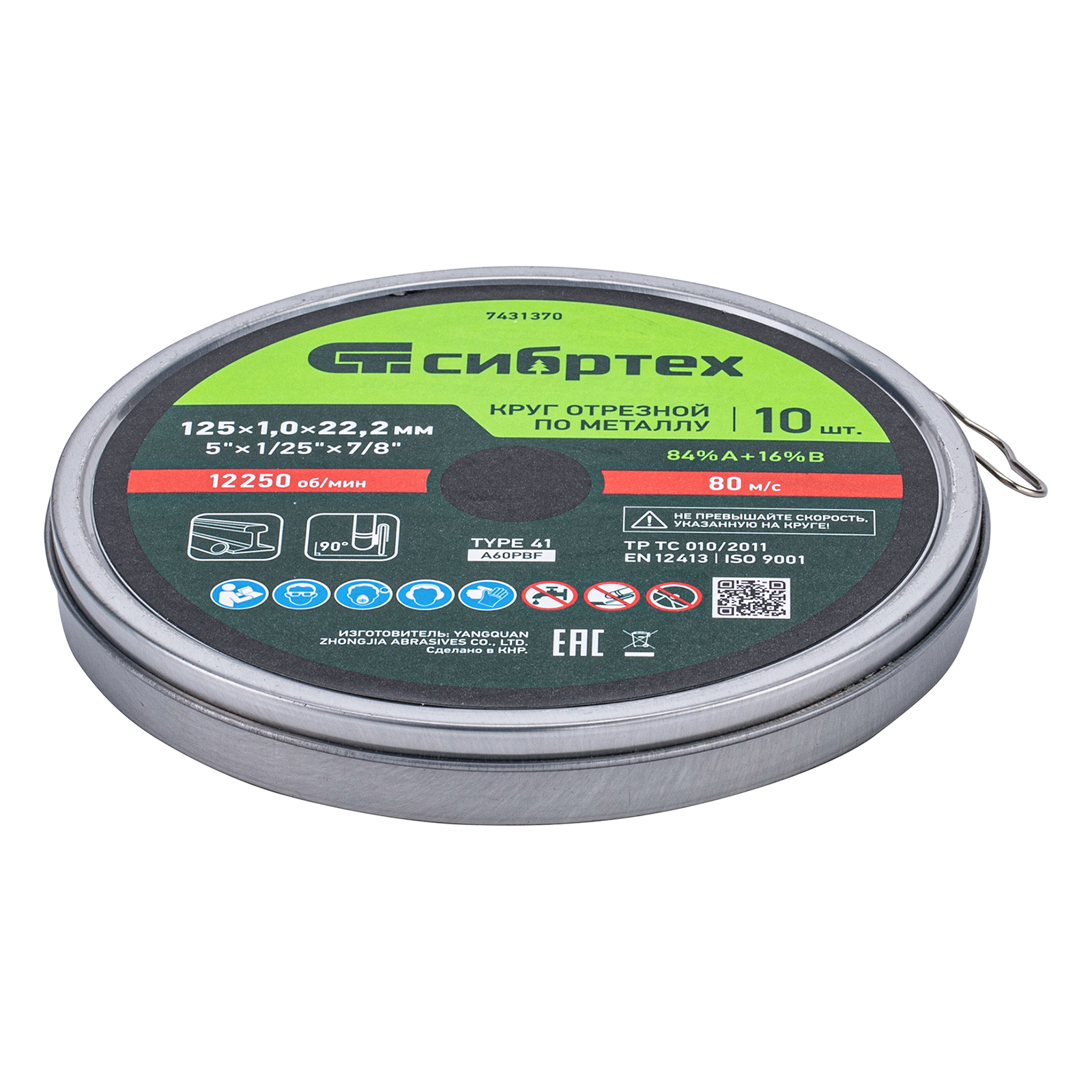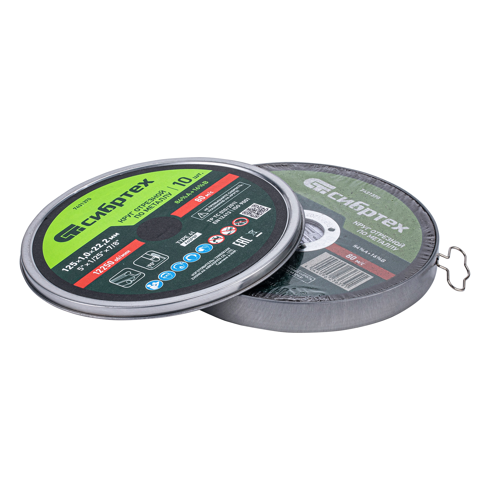 Круг отрезной по металлу Сибртех 84%A+16%B 7431370 диаметром 125 мм и толщиной 1,0 мм, 10 шт. в металлической банке, устанавливается на УШМ с посадочным размером 22,2 мм. Предназначен для резки углеродистых сталей. Набор пригодится частному мастеру для проведения ремонтных работ дома или в гараже, также подойдет для профессионального применения.