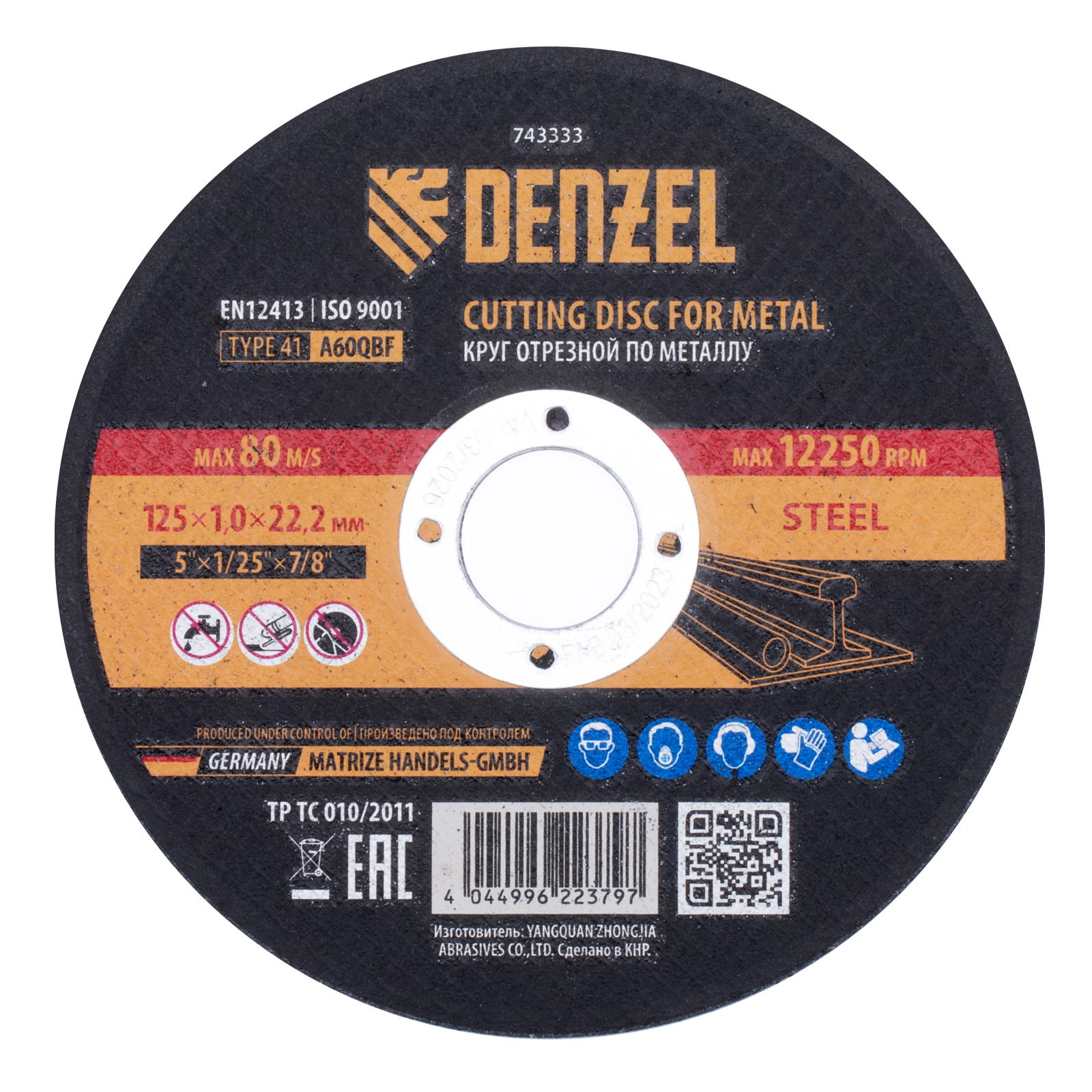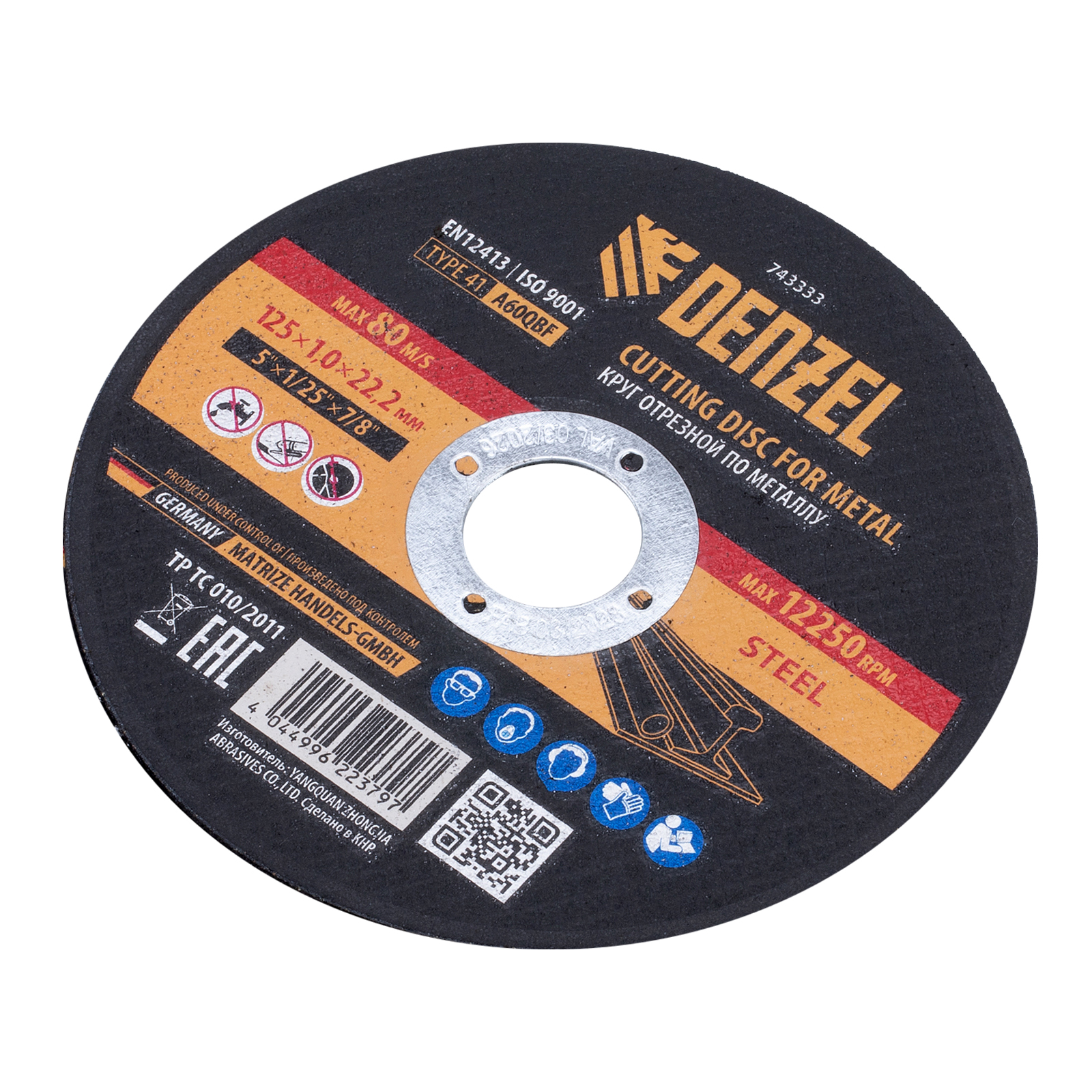 Круг отрезной по металлу Denzel 743333 (A60QBF) размером 125 х 1,0 х 22,2 мм оптимально подходит для реза углеродистых сталей. Используется на УШМ с посадочным диаметром 22,2 мм. Круг рассчитан на профессиональное и бытовое использование.