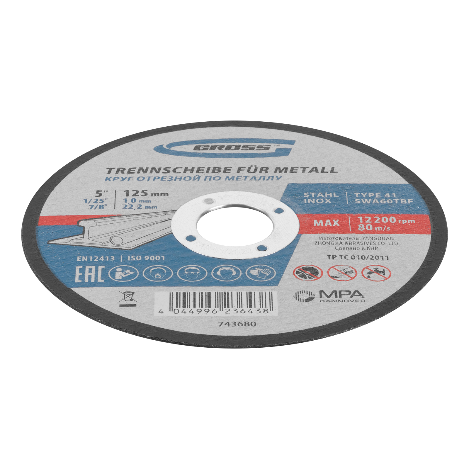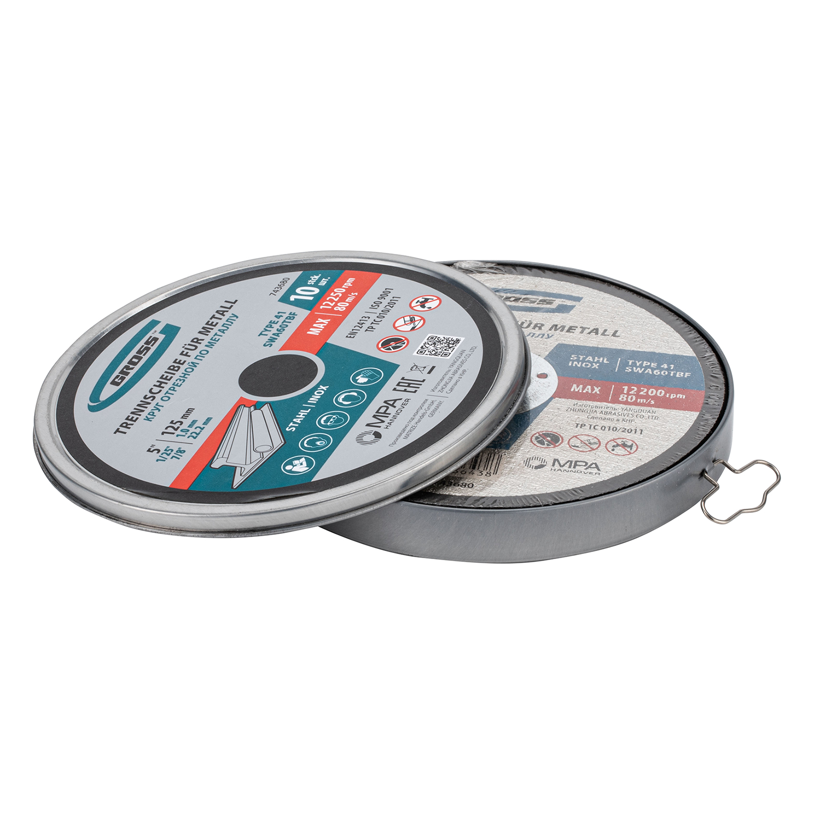 Отрезной круг по металлу Gross SWA60TBF 743680 размером 125 х 1,0 х 22,2 мм, 10 шт. в металлической банке, предназначен для интенсивного реза нержавеющих и углеродистых сталей, алюминия, чугуна. Устанавливается на УШМ соответствующего типоразмера. Крупнозернистый абразив F60 в сочетании с толщиной круга 1 мм обеспечивают высокую скорость и точность реза. Надежный и производительный, круг выдерживает высокие нагрузки, не требует частой замены и подходит для профессиональной эксплуатации.