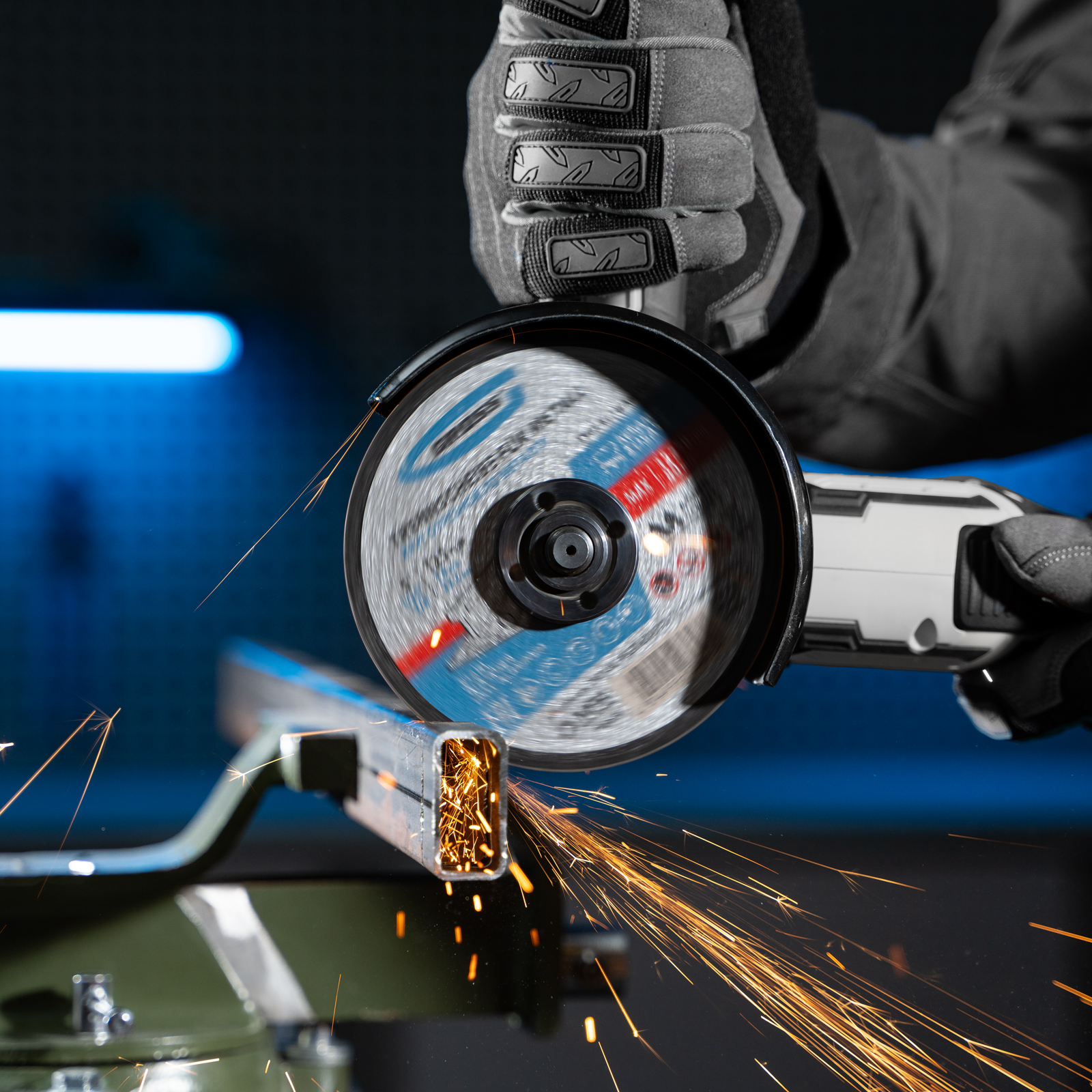 - Минимальное количество пыли и искр — благодаря специальному составу круг слабо нагревается в процессе реза, износ происходит медленно и равномерно.