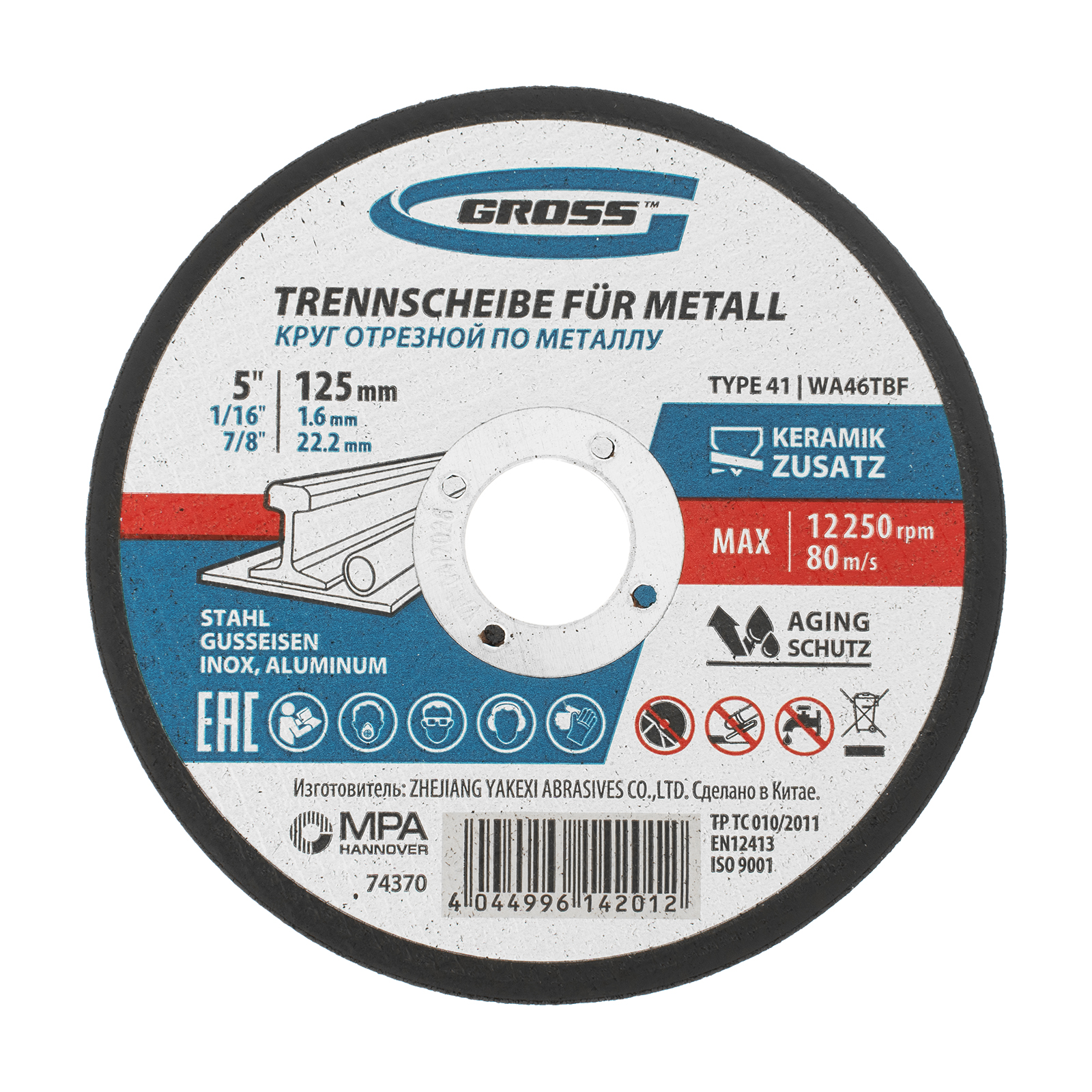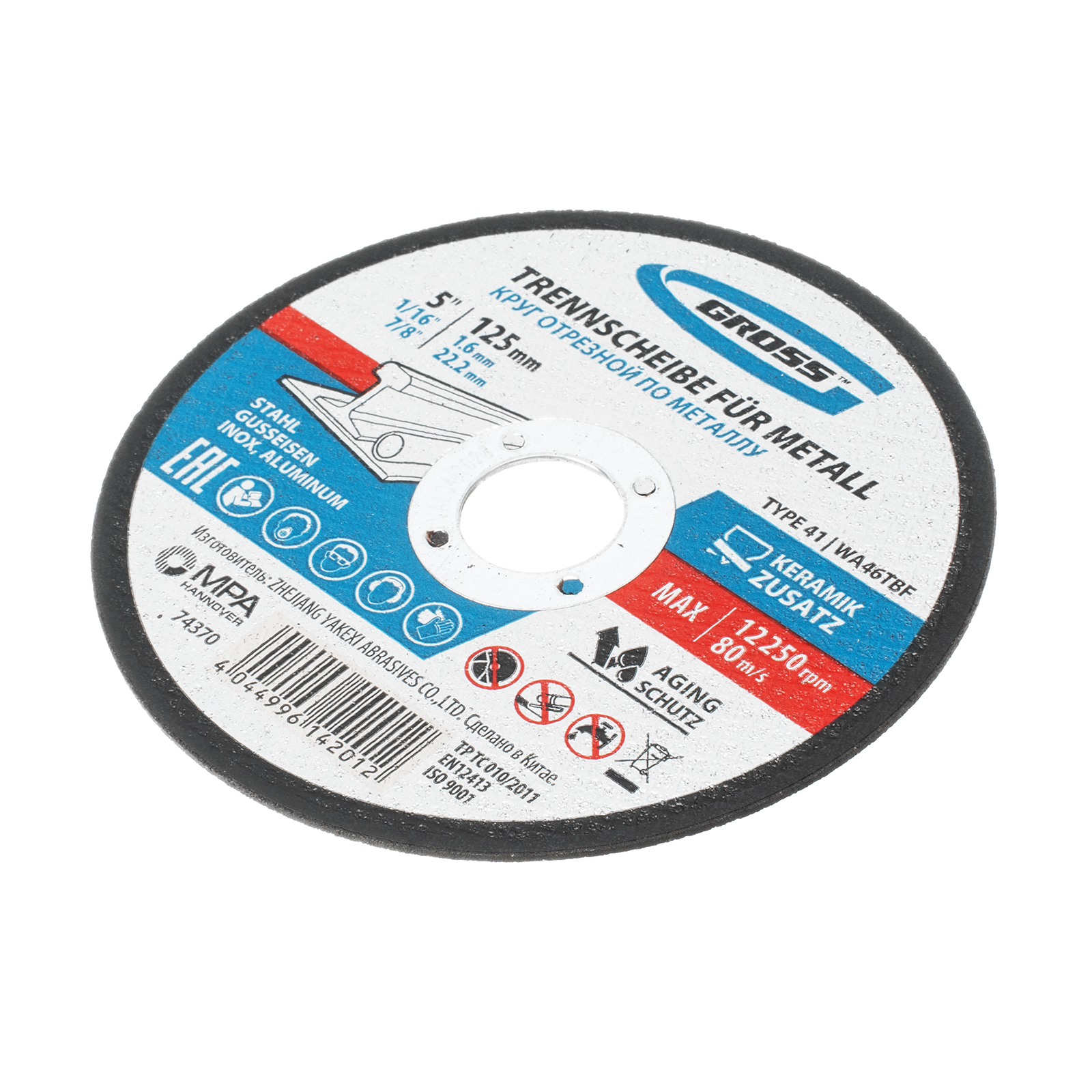 Отрезной круг по металлу Gross SWA46TBF 74370 размером 125 х 1,6 х 22,2 мм рассчитан на интенсивный рез углеродистой и нержавеющей стали, алюминия, чугуна. Устанавливается на УШМ соответствующего типоразмера и не требует частой замены, подходит для профессиональной эксплуатации с высокими нагрузками.