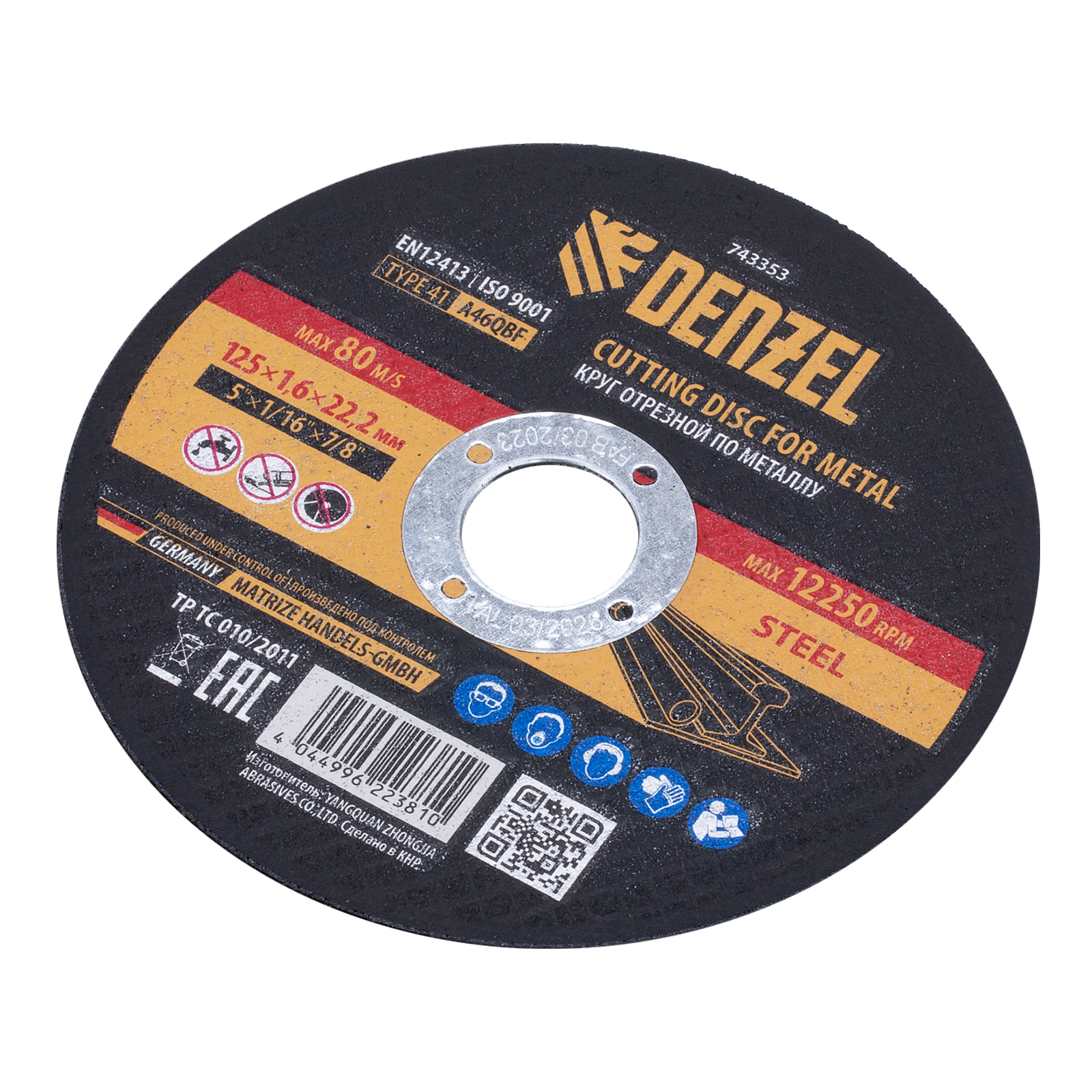 Круг отрезной по металлу Denzel 743353 (A46QBF) размером 125 х 1,6 х 22,2 мм оптимально подходит для реза углеродистых сталей. Используется на УШМ с посадочным диаметром 22,2 мм. Круг рассчитан на профессиональное и бытовое использование.