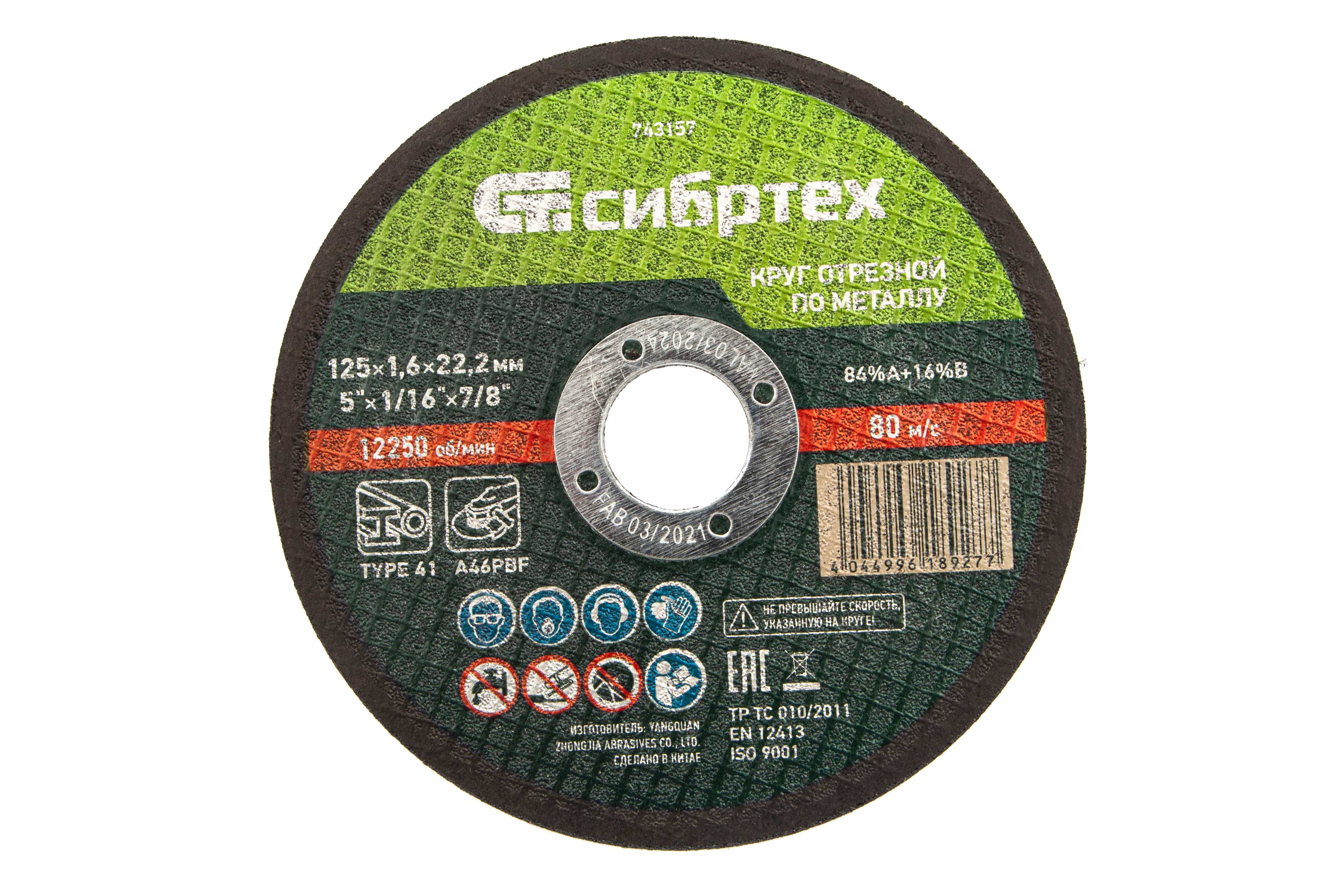 Отрезной круг по металлу Сибртех 84%A+16%B 743157 размером 125 х 1,6 мм устанавливается на фланец ручной углошлифовальной машины с посадочным размером 22,2 мм. Предназначен для резки углеродистых сталей. Круг пригодится частному мастеру для проведения ремонтных работ дома или в гараже.