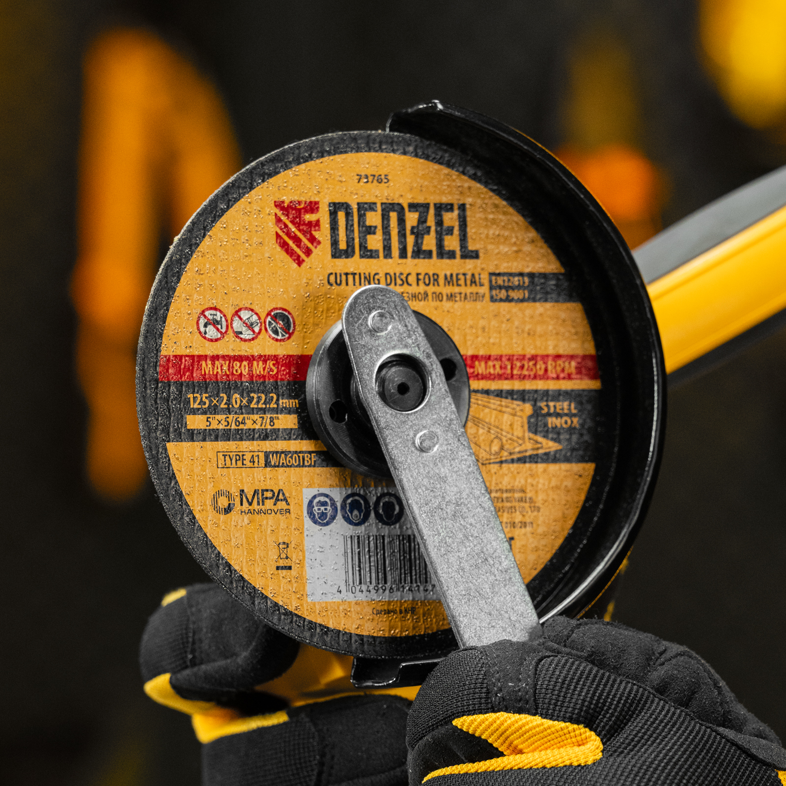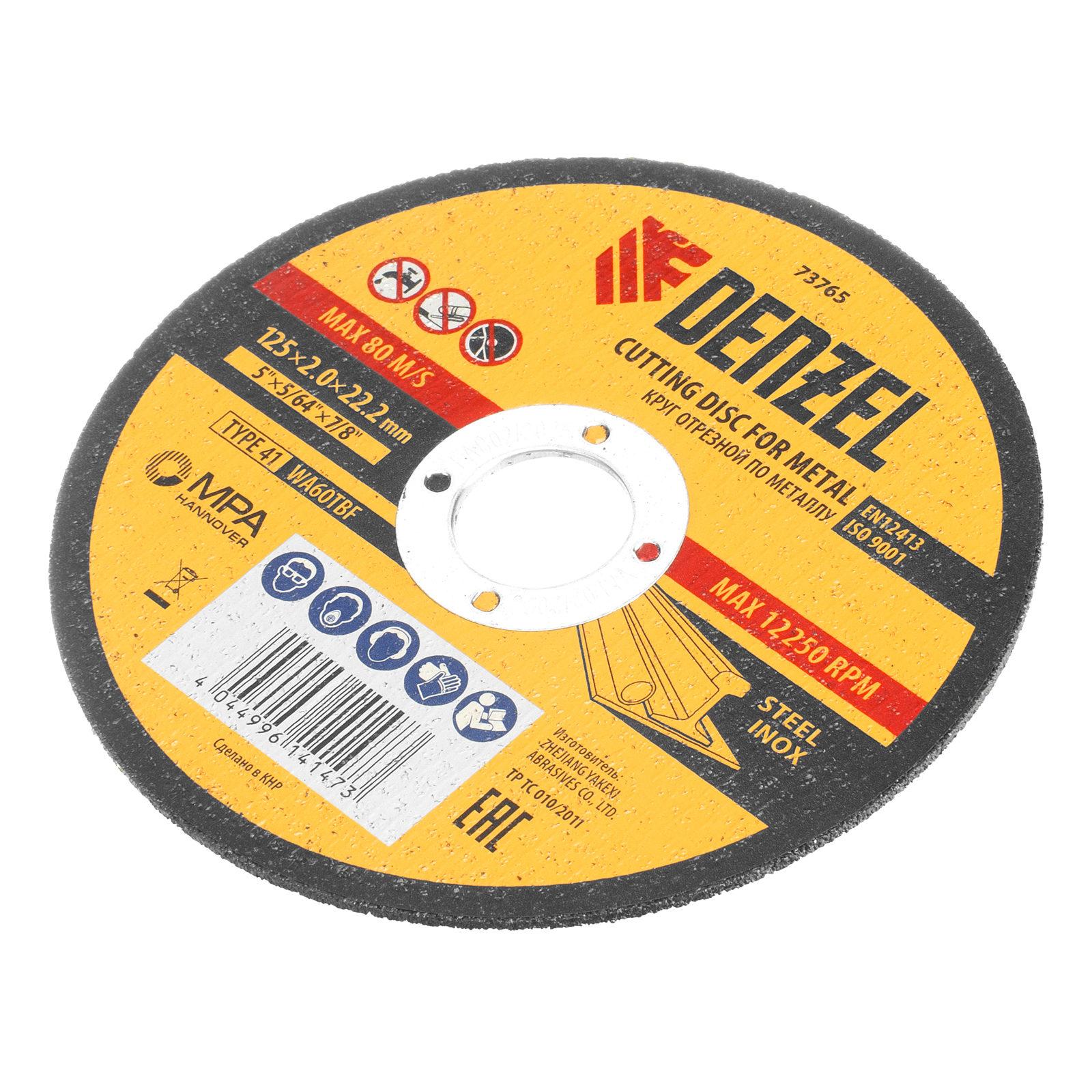 Отрезной круг по металлу Denzel WA60TBF 73765 диаметром 125 мм и толщиной 2,0 мм устанавливается на углошлифовальную машину с посадочным размером 22,2 мм. Предназначен для сухого резания углеродистых и нержавеющих сталей. Максимальная частота вращения составляет 12250 об/мин. Круг пригодится в слесарной мастерской.
