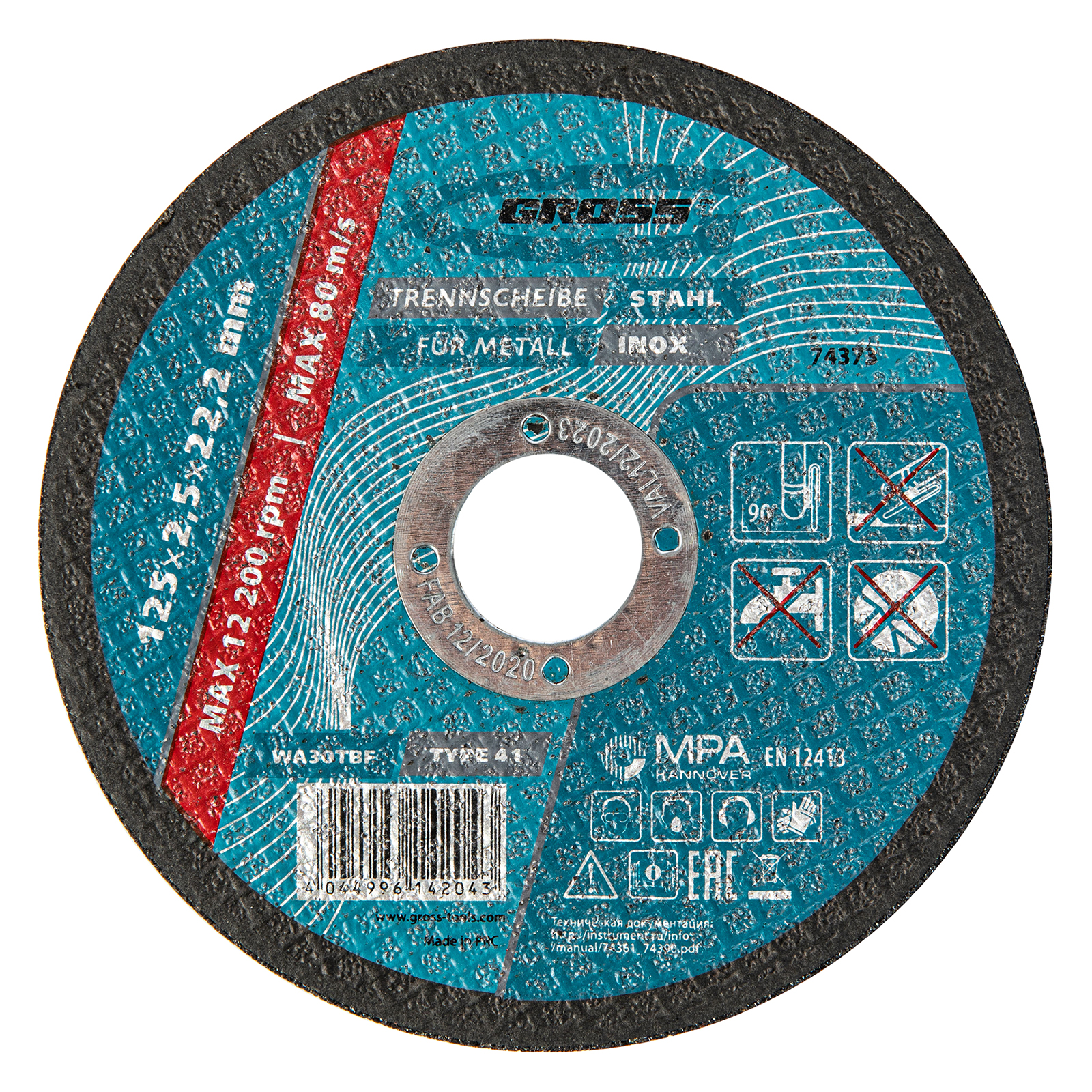 Отрезной круг по металлу Gross SWA30TBF 74373 размером 125 х 2,5 х 22,2 мм рассчитан на интенсивный рез углеродистой и нержавеющей стали. Устанавливается на УШМ соответствующего типоразмера и подходит для профессиональной эксплуатации с высокими нагрузками.