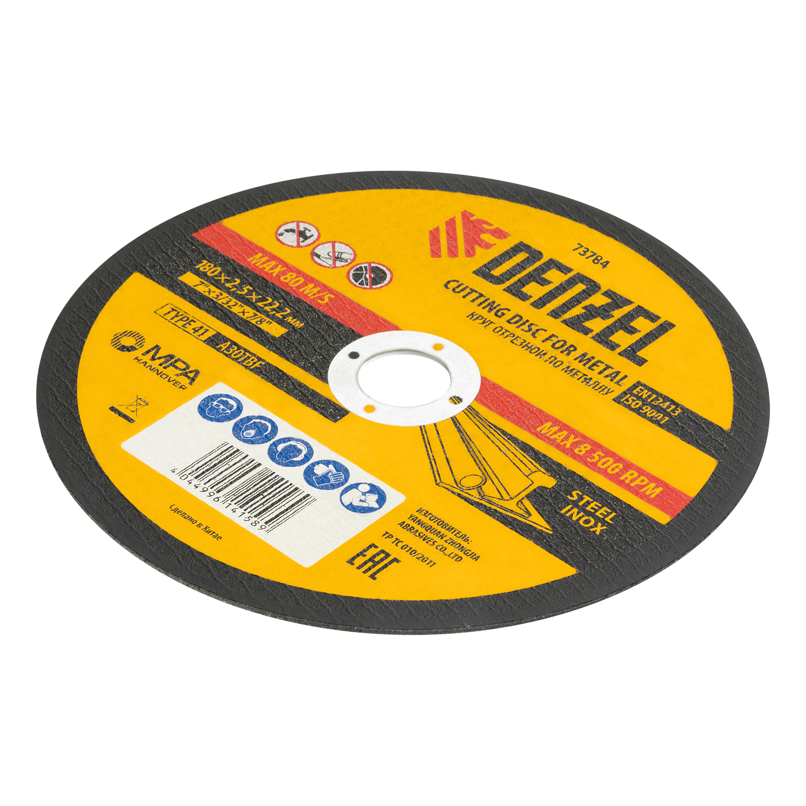 Отрезной круг по металлу Denzel A30TBF 73784 размером 180 х 2,5 х 22,2 мм рассчитан на интенсивную работу с УШМ. Подходит для резки углеродистой и нержавеющей стали. Круг можно использовать не только в быту, но и для решения профессиональных задач.