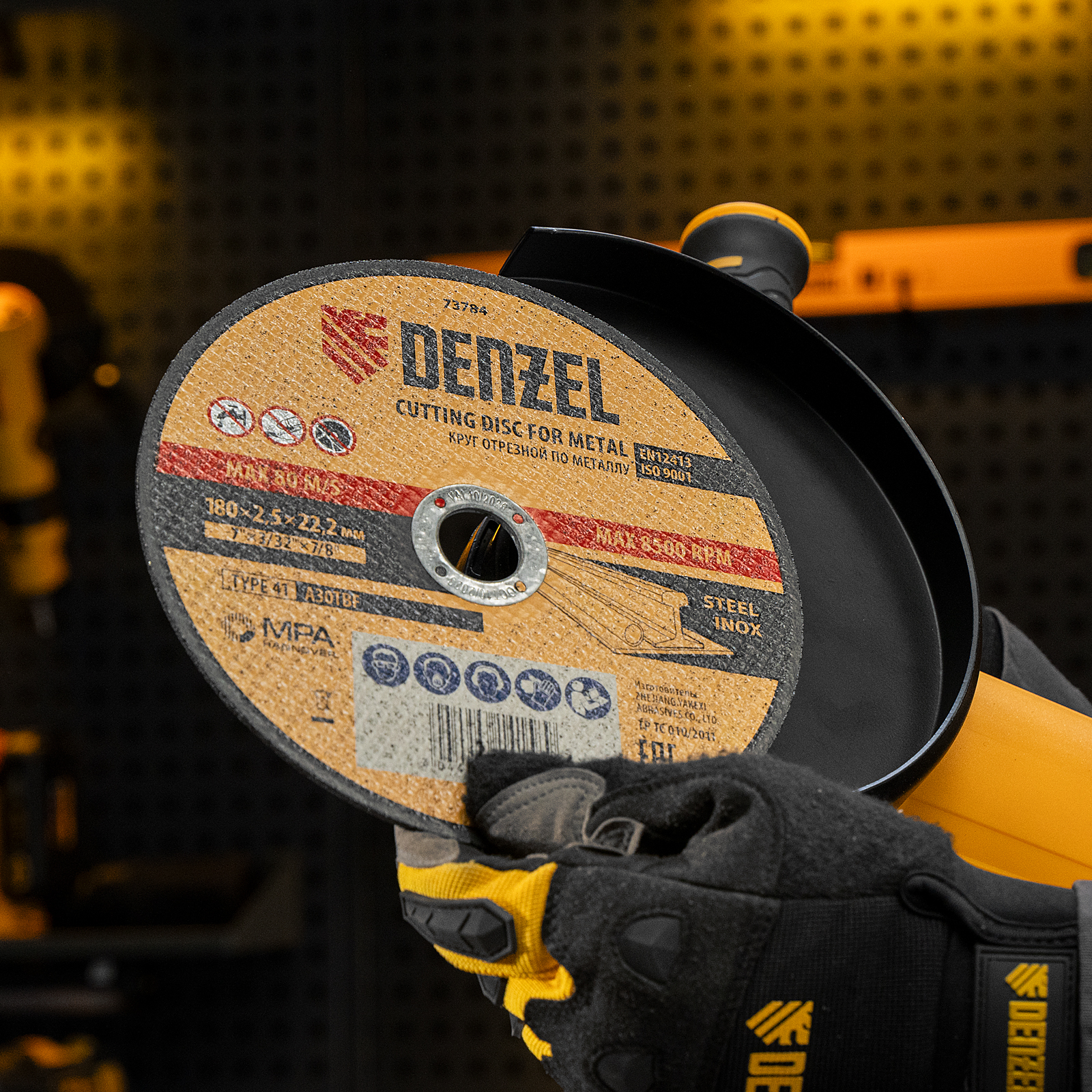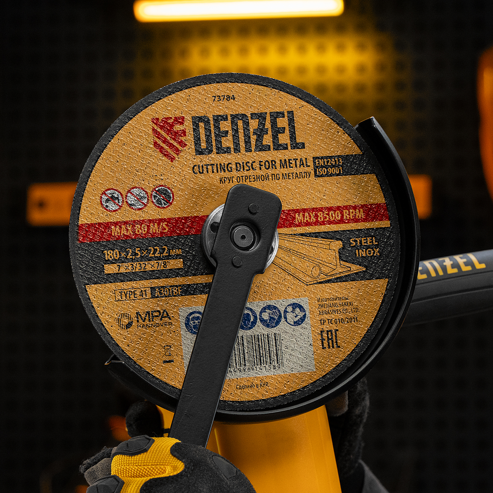 - Высокий ресурс — благодаря толщине 2,5 мм и средней по плотности структуре круг стабильно режет сталь даже при больших объемах работ.