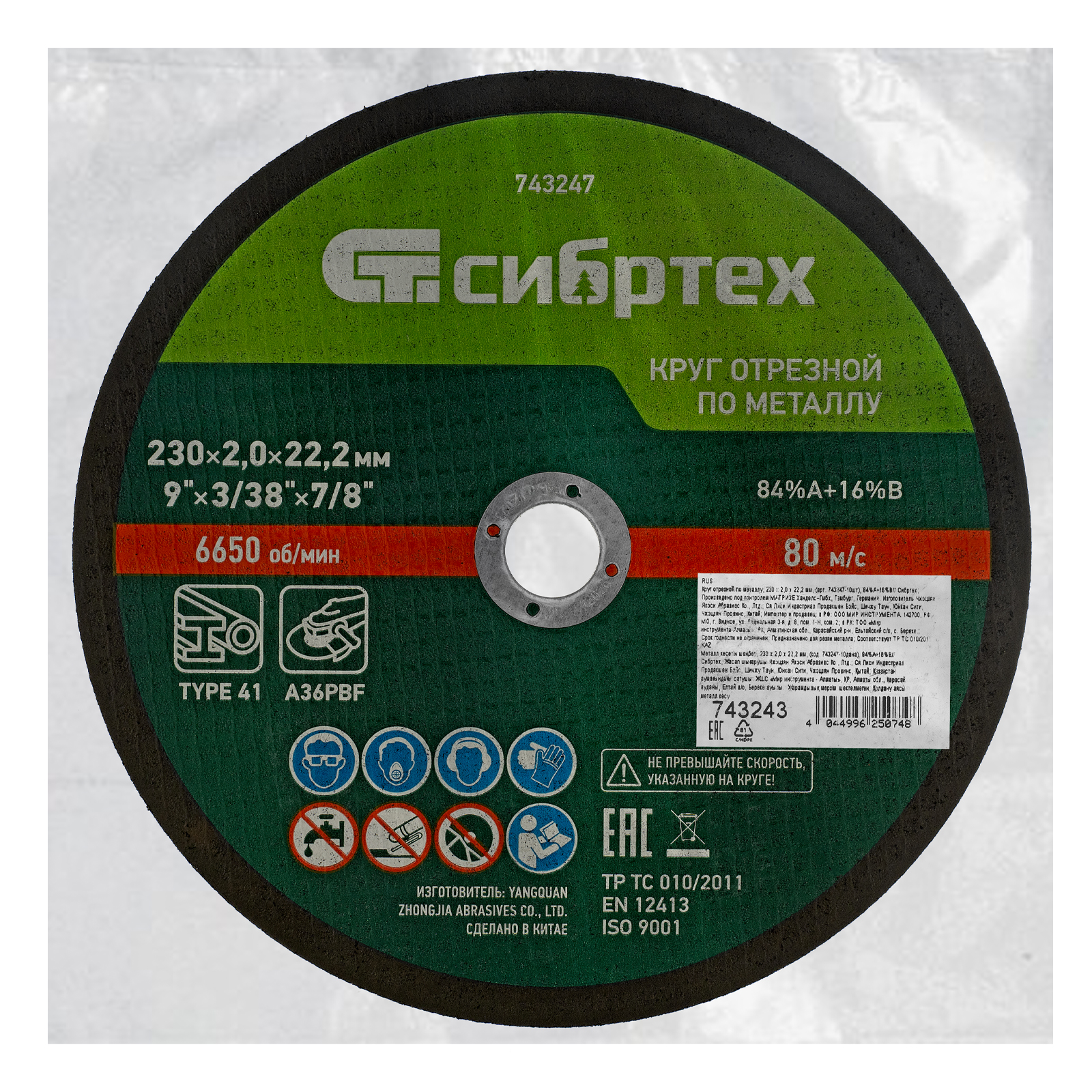 Отрезной круг по металлу Сибртех 84%A+16%B 743243 размером 230 х 2,0 мм устанавливается на фланец ручной углошлифовальной машины с посадочным размером 22,2 мм. Предназначен для сухой резки углеродистых сталей, пригодится для проведения ремонтных работ дома или в гараже.