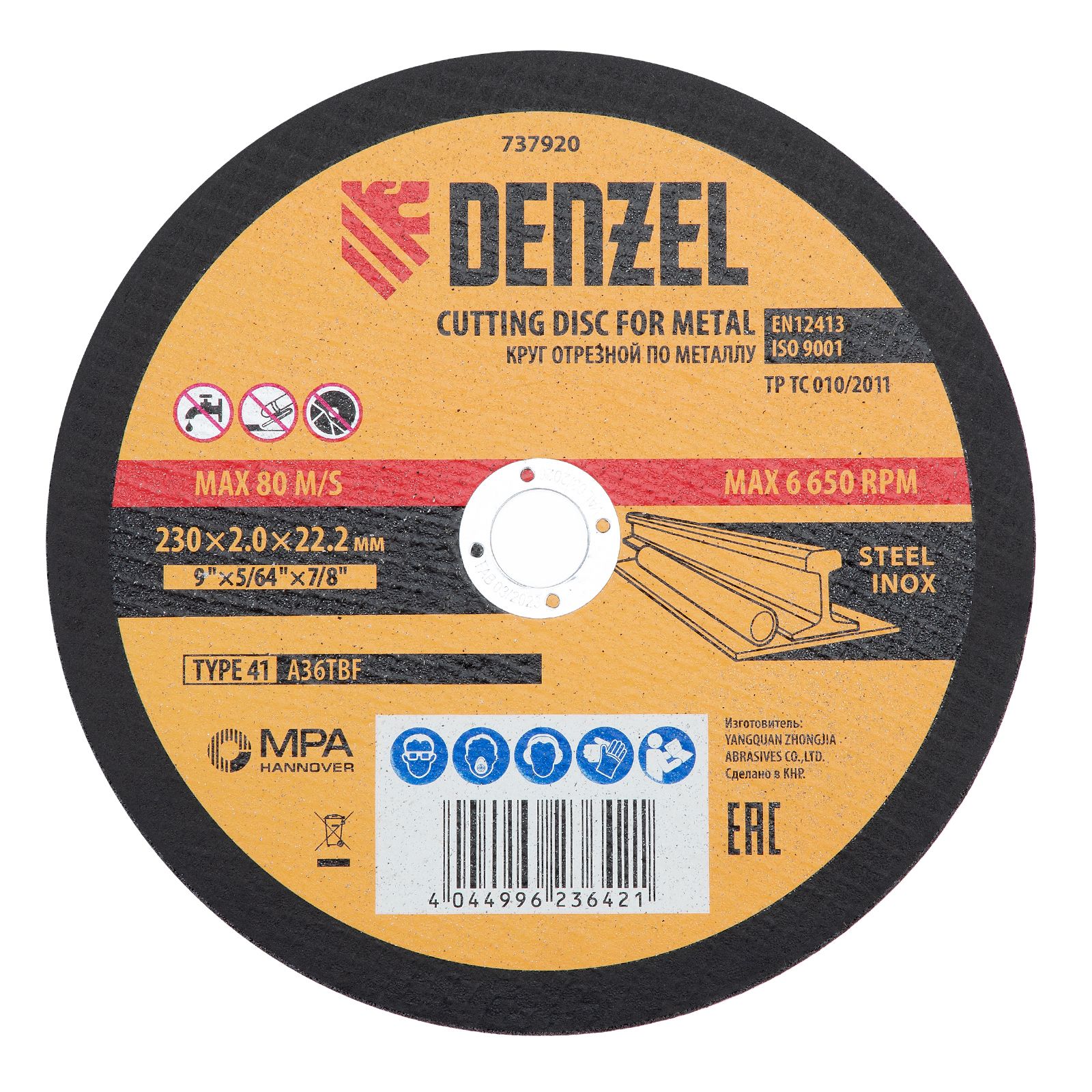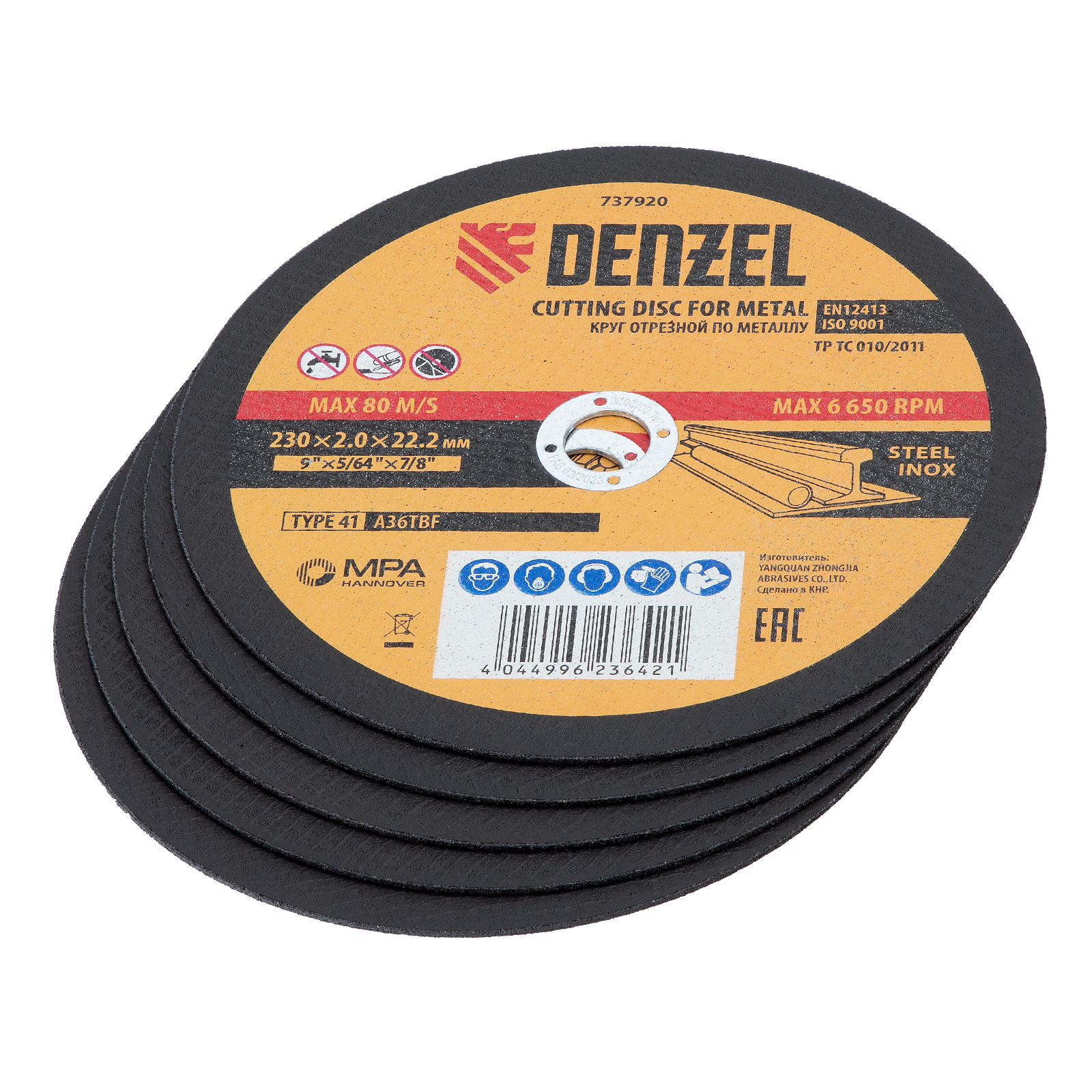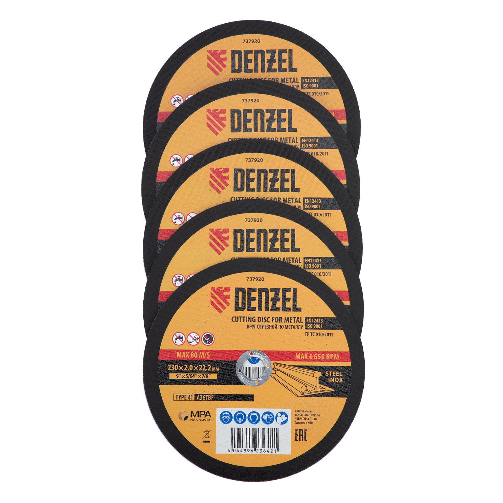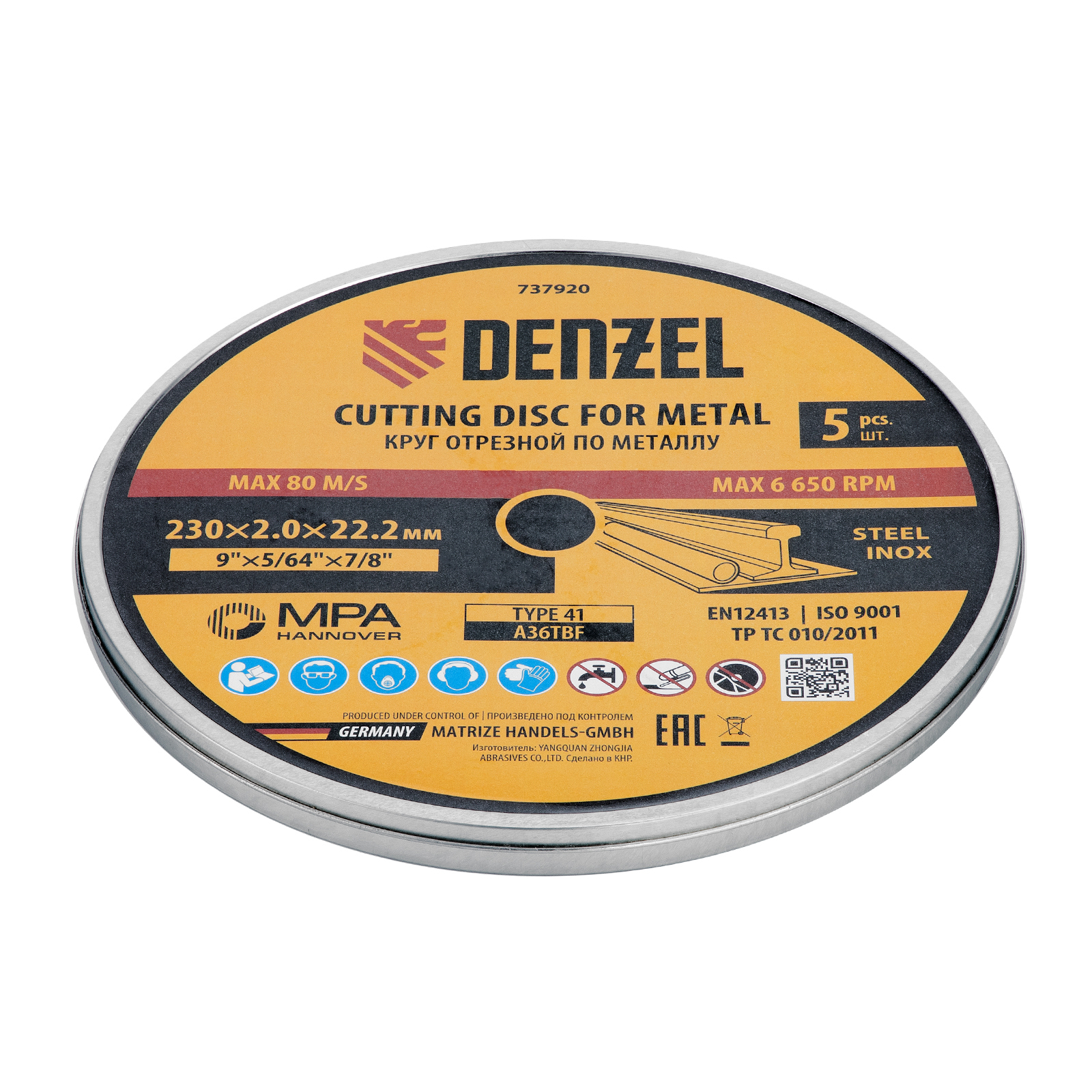 Круг отрезной по металлу Denzel 737920 (A36TBF) размером 230 х 2,0 х 22,2 мм, 5 шт. в металлической банке, устанавливается на УШМ соответствующего типоразмера. Универсальная оснастка подходит для резки нержавеющей и углеродистой стали. Набор предназначен для профессионального использования и большого объема работ.