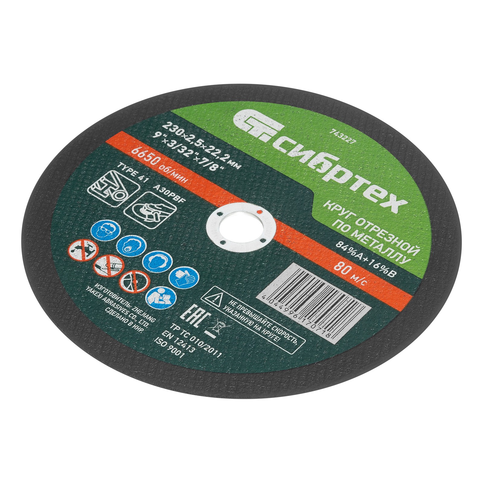 Отрезной круг по металлу Сибртех 84%A+16%B 743227 размером 230 х 2,5 мм устанавливается на фланец ручной углошлифовальной машины с посадочным размером 22,2 мм. Предназначен для резки углеродистых сталей. Круг пригодится частному мастеру для проведения ремонтных работ дома или в гараже.