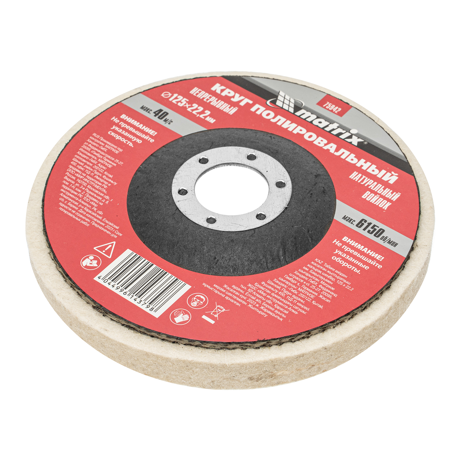 <p>Непрерывный полировальный круг из натурального войлока Matrix 75942 диаметром 125 х 22,2 мм — оснастка для углошлифовальных машин, предназначенная для финишной отделки металлических, стальных, стеклянных, пластмассовых и других материалов. Круг эффективен при работе на плоских поверхностях и будет полезен на стройплощадке, в автосервисе, а также в домашней мастерской.</p><h2>Преимущества</h2><ul><li>Высокое качество работ — волокна шерсти обладают хорошими очищающими свойствами.</li><li>Долговечность — плотный войлок устойчив к механическому износу.</li><li>Разнообразное применение — круг можно использовать с полирующими пастами.</li></ul>