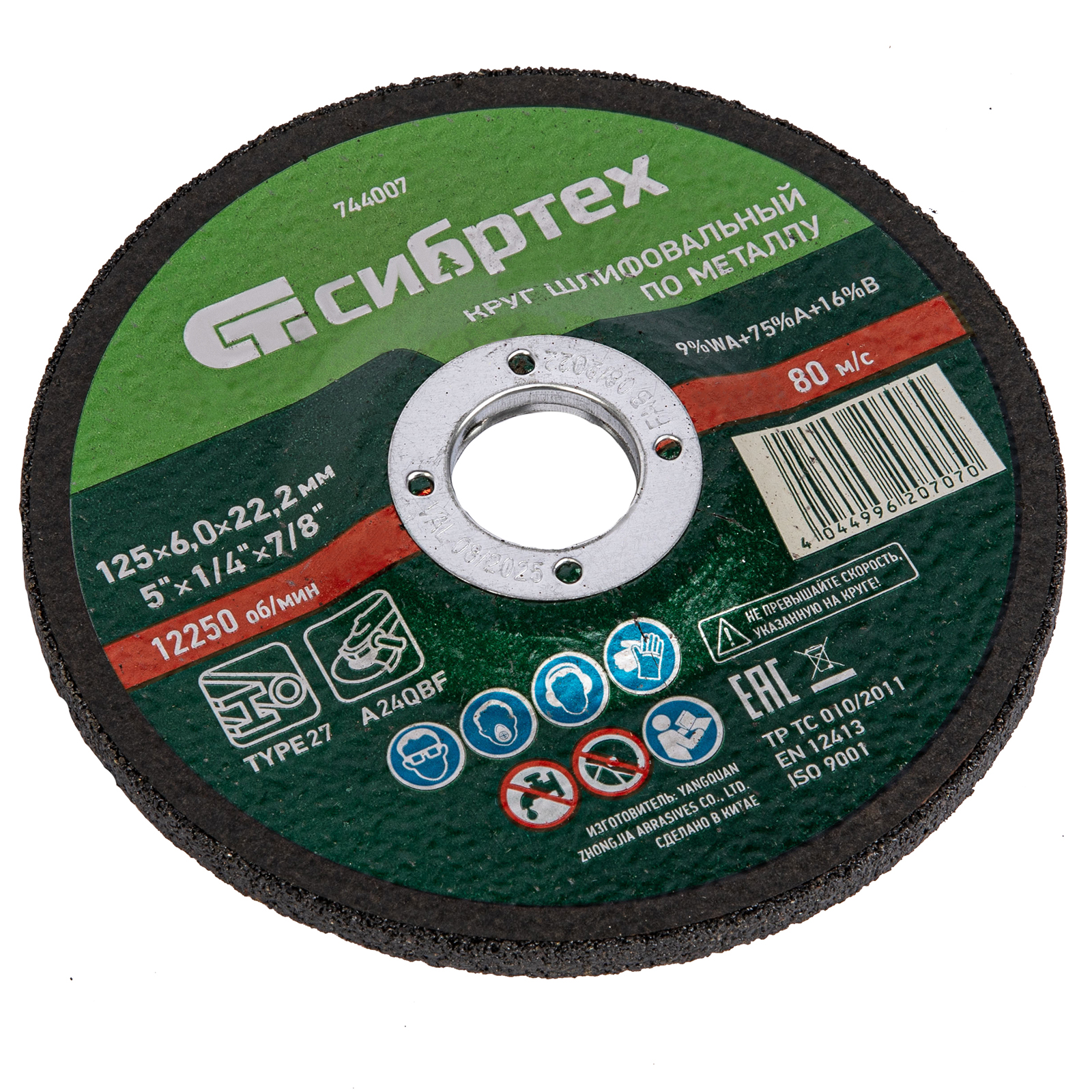 Шлифовальный круг Сибртех 9%WA+75%A+16%B 744007 диаметром 125 мм и толщиной 6,0 мм, с посадочным размером 22,2 мм, — оснастка для ручной углошлифовальной машины, предназначенная для обработки металла. Рекомендован для сухого шлифования углеродистых и легированных сталей при вращении с частотой не более 12250 об/мин. Круг позволяет зачищать сварные швы, обрабатывать кромки заготовки после резки, удалять заусенцы, ржавчину и т.д. Абразив, содержащий твердые зерна электрокорунда и специальные добавки, позволяет быстро и эффективно шлифовать металлические поверхности.