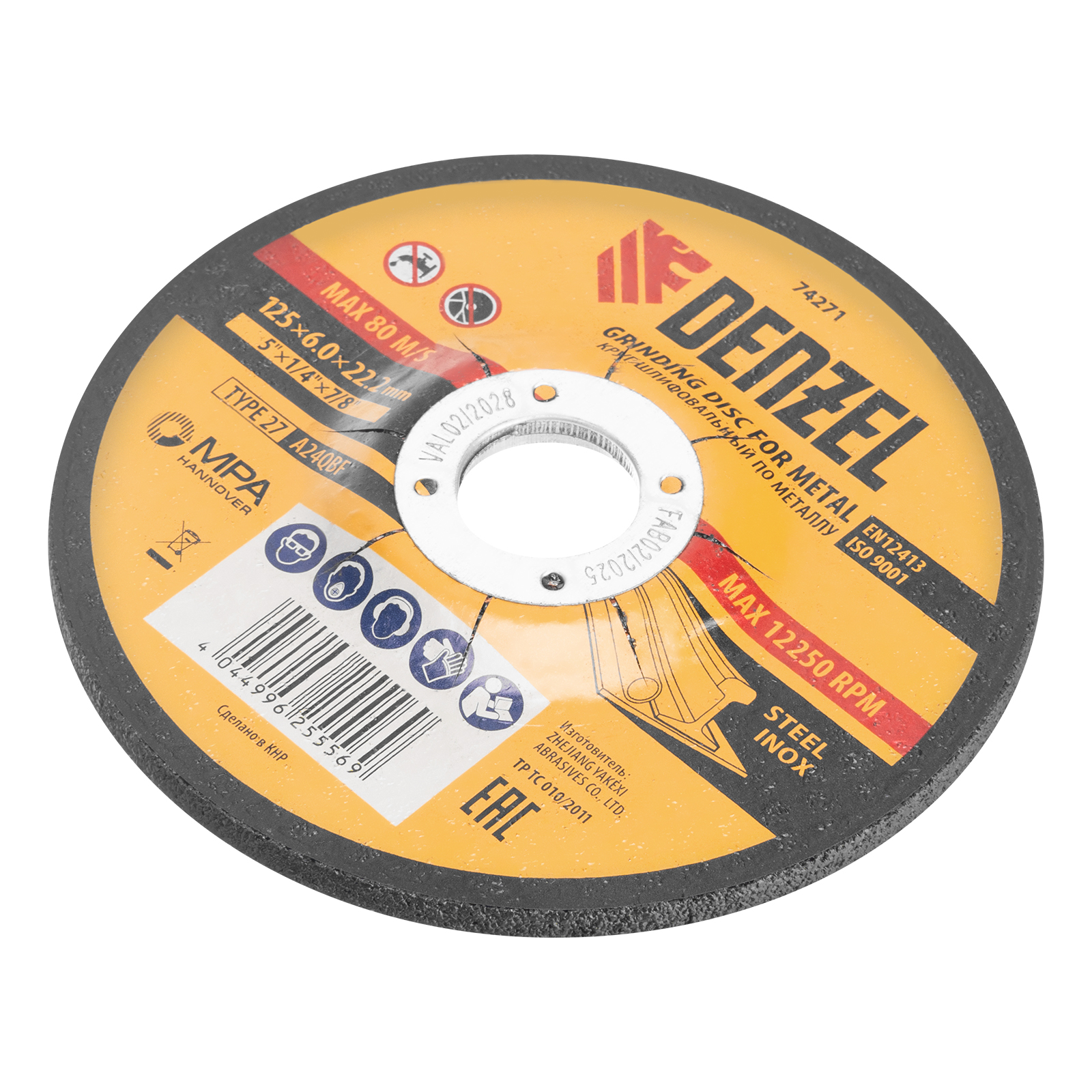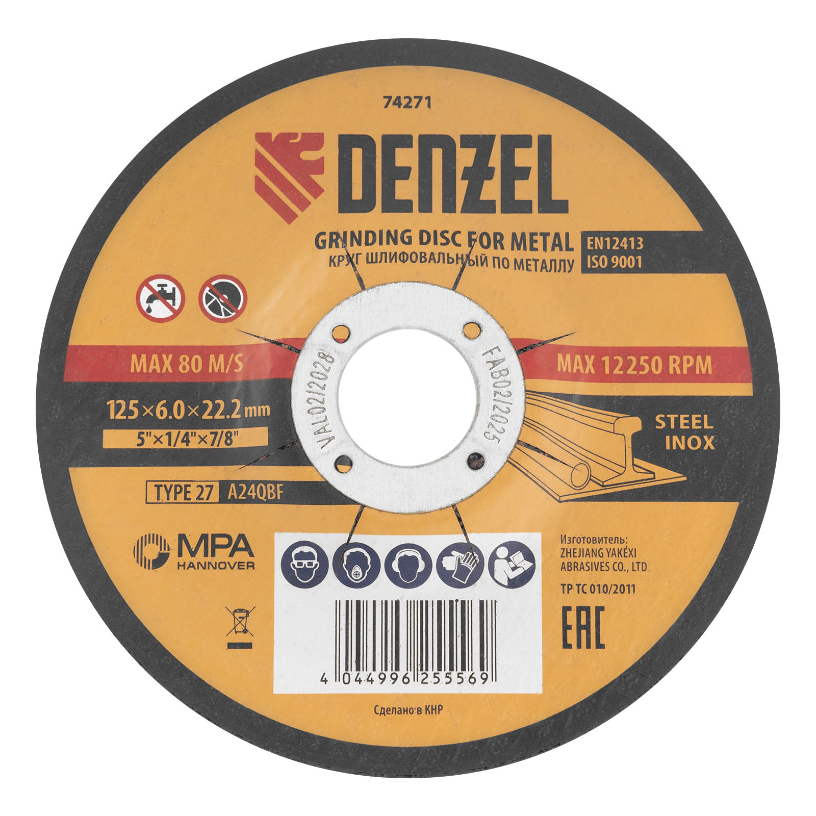 Шлифовальный круг Denzel A24QBF 74271 диаметром 125 мм и толщиной 6,0 мм устанавливается на фланец углошлифовальной машины с посадочным размером 22,2 мм. Максимальная частота вращения составляет 12500 об/мин. Круг предназначен для ручной обработки углеродистых и нержавеющих сталей без использования смазочно-охлаждающих жидкостей. Позволяет эффективно шлифовать поверхности, зачищать сварные швы и кромки после реза, удалять заусенцы, окалину и прочие дефекты. Круг пригодится в слесарной мастерской.