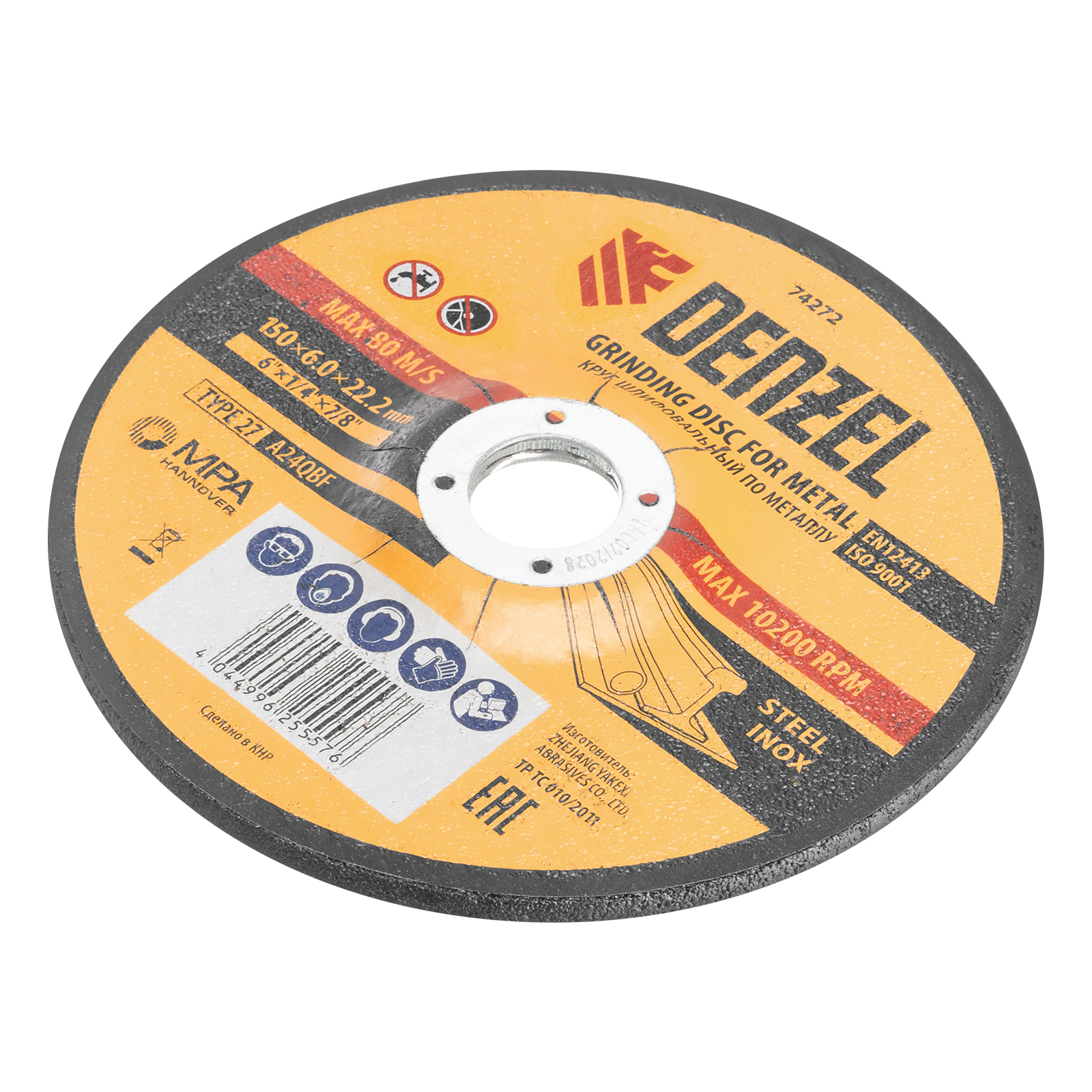 Шлифовальный круг Denzel A24QBF 74272 диаметром 150 мм и толщиной 6,0 мм устанавливается на фланец углошлифовальной машины с посадочным размером 22,2 мм. Максимальная частота вращения составляет 10200 об/мин. Круг предназначен для ручной обработки углеродистых и нержавеющих сталей без использования смазочно-охлаждающих жидкостей. Позволяет эффективно шлифовать поверхности, зачищать сварные швы и кромки после реза, удалять заусенцы, окалину и прочие дефекты. Круг пригодится в слесарной мастерской.