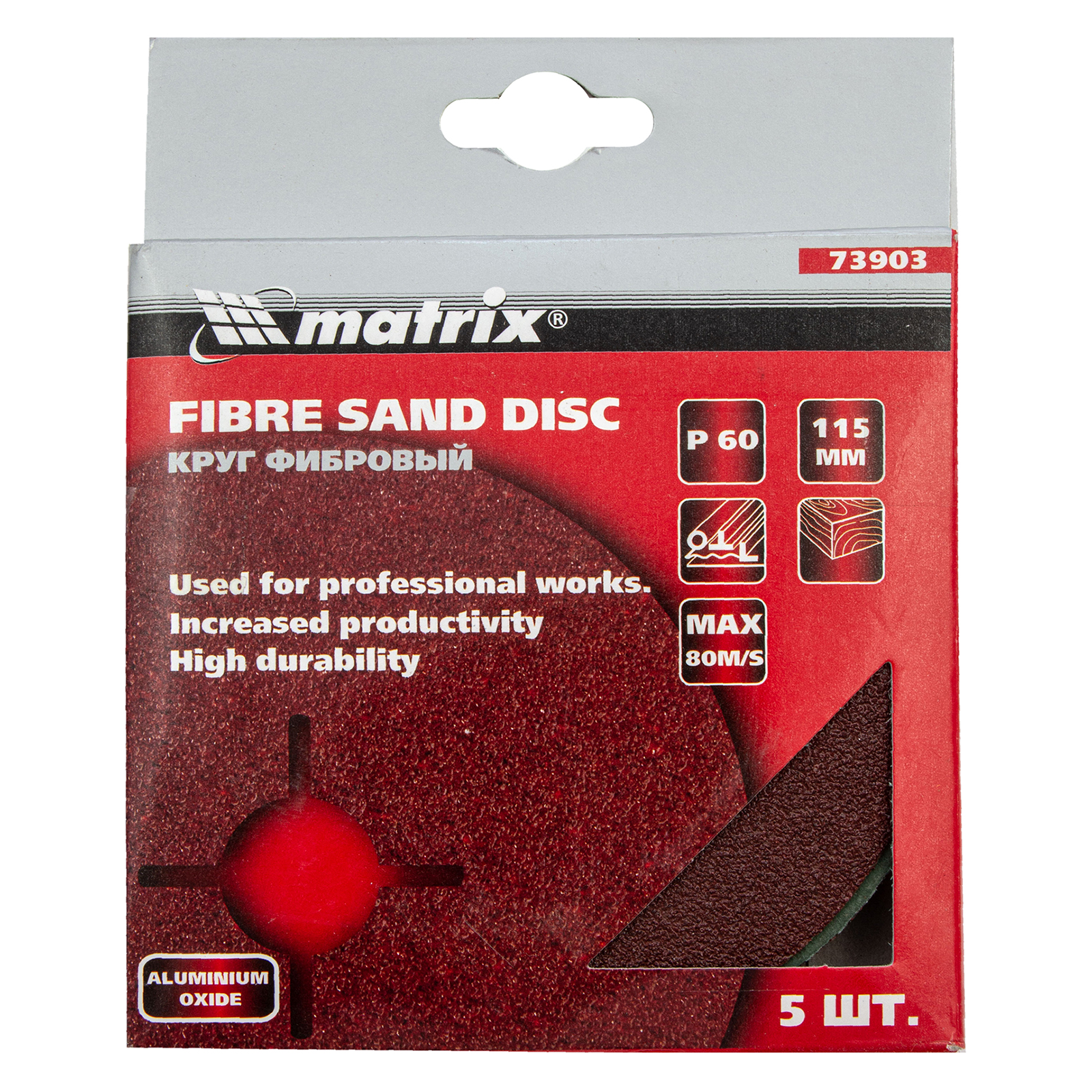 Фибровый круг Matrix 73903 размером 115 х 22 мм, с абразивом P 60, 5 шт. в упаковке, устанавливается на углошлифовальную машину (УШМ) при помощи опорной тарелки для фибровых кругов. Крупнозернистый абразив Р 60 используется для грубой обработки металлических, каменных и деревянных изделий, позволяет снимать старые лакокрасочные покрытия, удалять заусенцы и сварные швы, следы ржавчины и потертости. Благодаря прочной основе ресурс у фибровых кругов в 2-3 раза больше, чем у шлифкругов «под липучку».