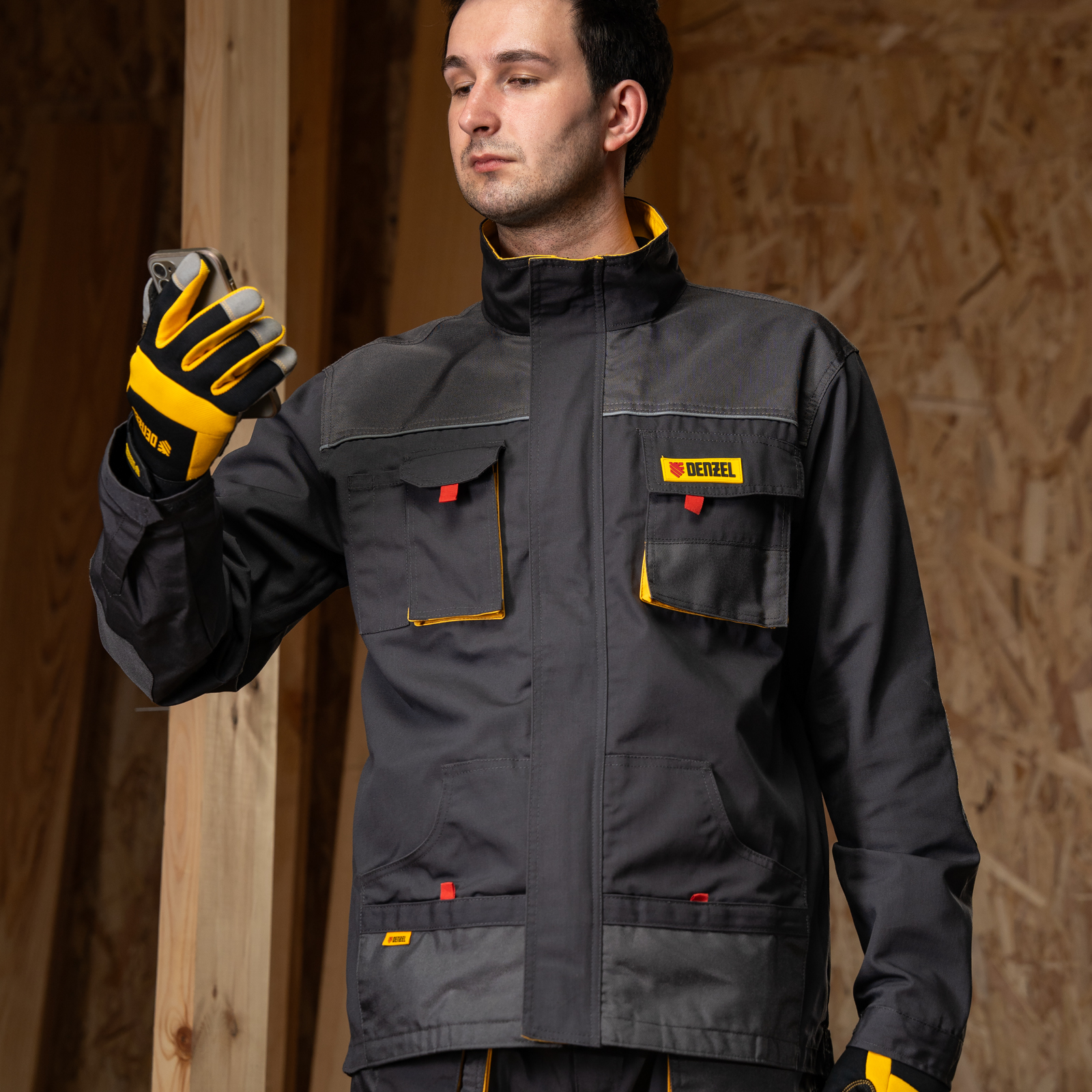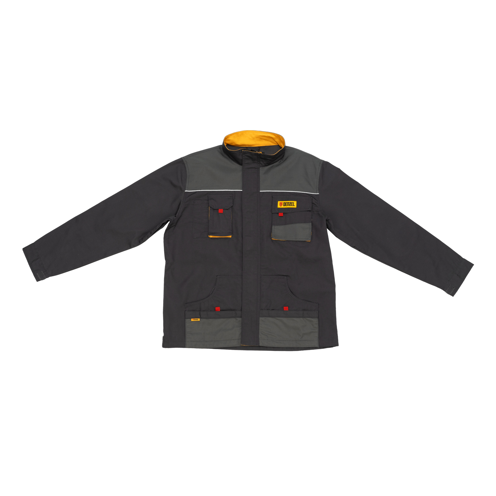 Профессиональная рабочая куртка Denzel 90379 размера XL защищает пользователя от общих производственных загрязнений, нетоксичной пыли, ветра и незначительных механических воздействий. Рассчитана на рост 184-188 см и предназначена для использования в теплое время года или в отапливаемом помещении. Куртка изготовлена из ткани плотностью 260 г/м² (65% полиэфир, 35% хлопок). За счет наличия хлопковых волокон в составе ткань хорошо пропускает воздух и приятна на теле, полиэфир обеспечивает устойчивость к истиранию. Одежда выполнена в практичном темно-сером цвете.