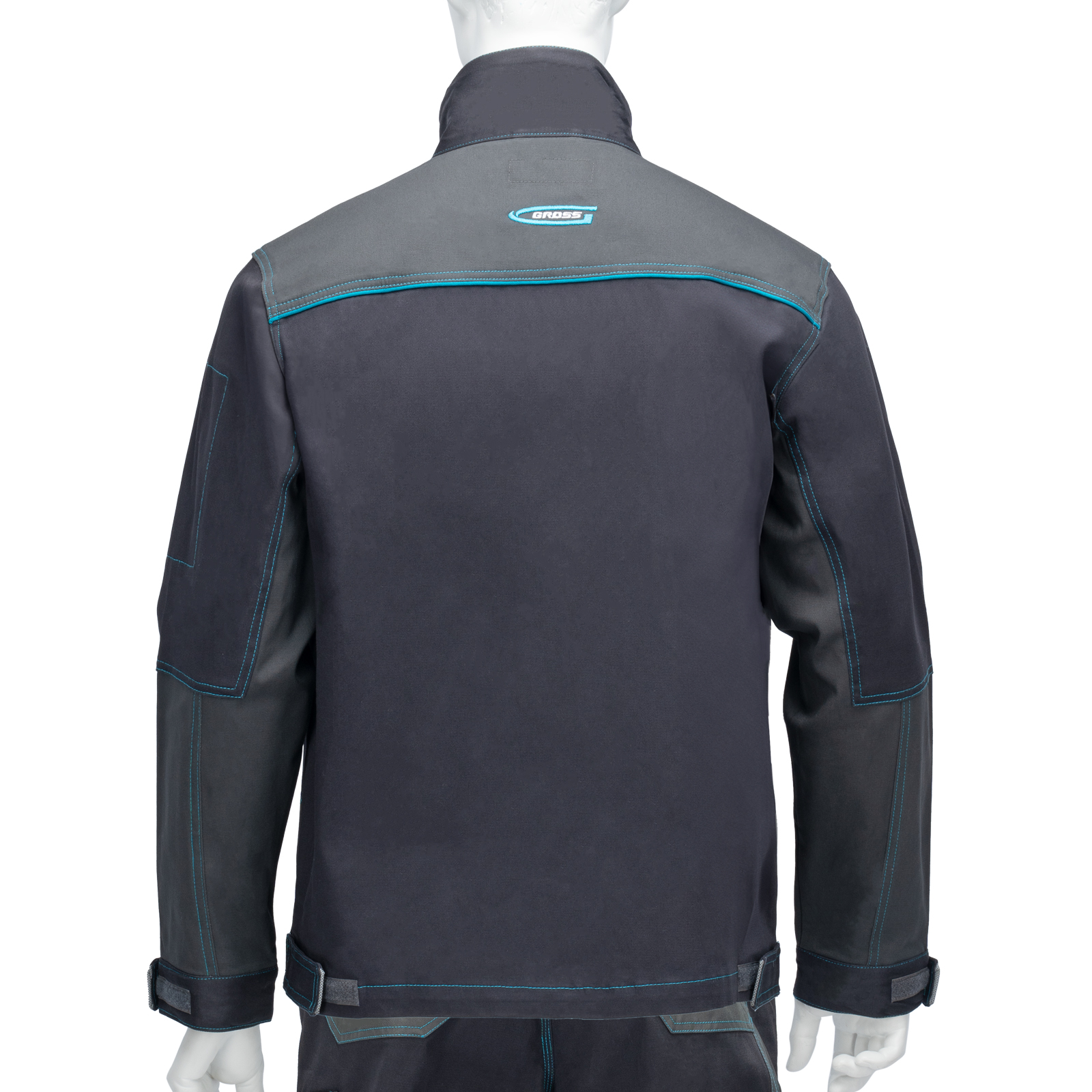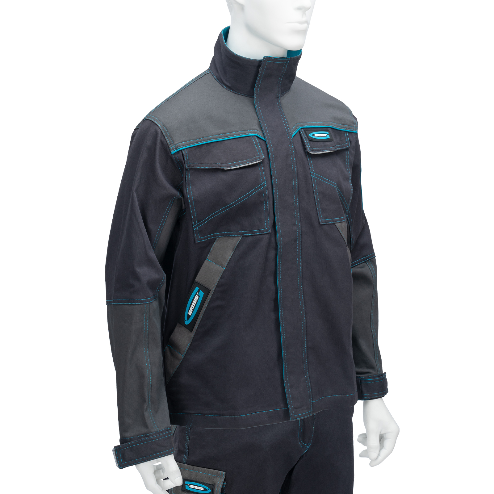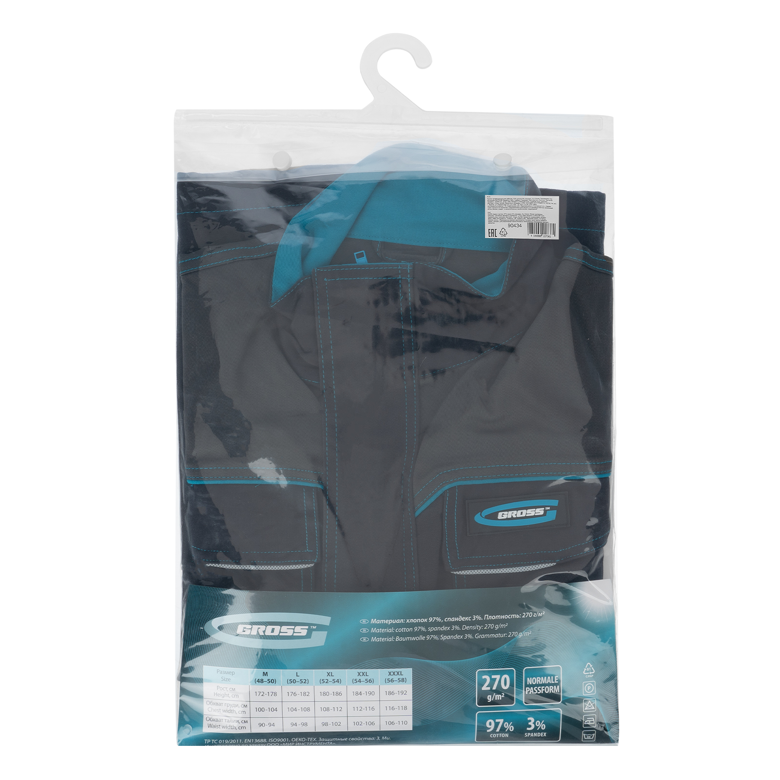 Профессиональная рабочая куртка Gross 90434 размера XL защищает пользователя от общих производственных загрязнений и механических воздействий (истираний). Предназначена для использования в теплое время года или в отапливаемом помещении. Куртка изготовлена из смесовой ткани (хлопок — 97%, спандекс 3%). Выполнена в практичном темно-сером цвете.