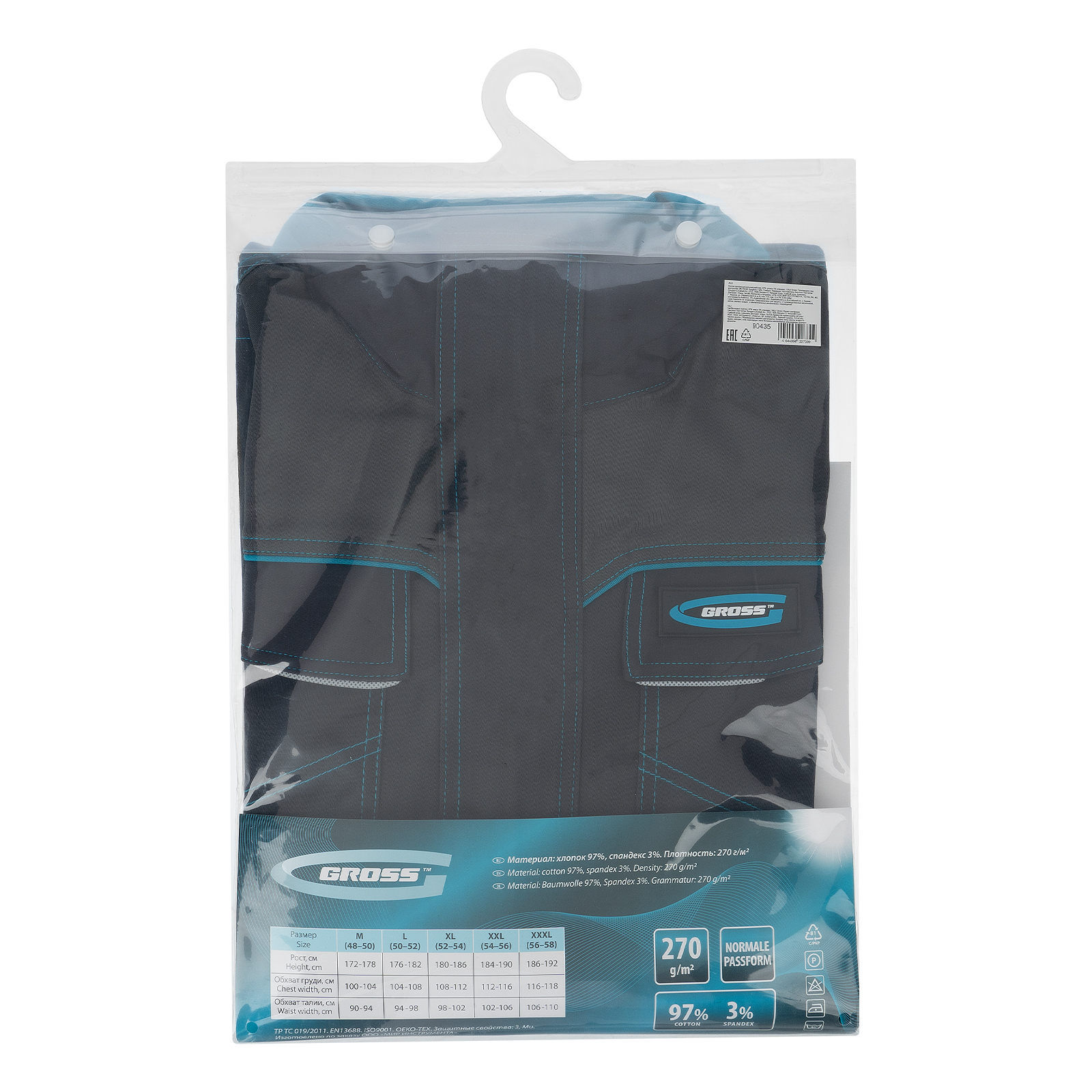 Профессиональная рабочая куртка Gross 90435 размера XXL защищает пользователя от общих производственных загрязнений и механических воздействий (истираний). Предназначена для использования в теплое время года или в отапливаемом помещении. Куртка изготовлена из смесовой ткани (хлопок — 97%, спандекс 3%). Выполнена в практичном темно-сером цвете.