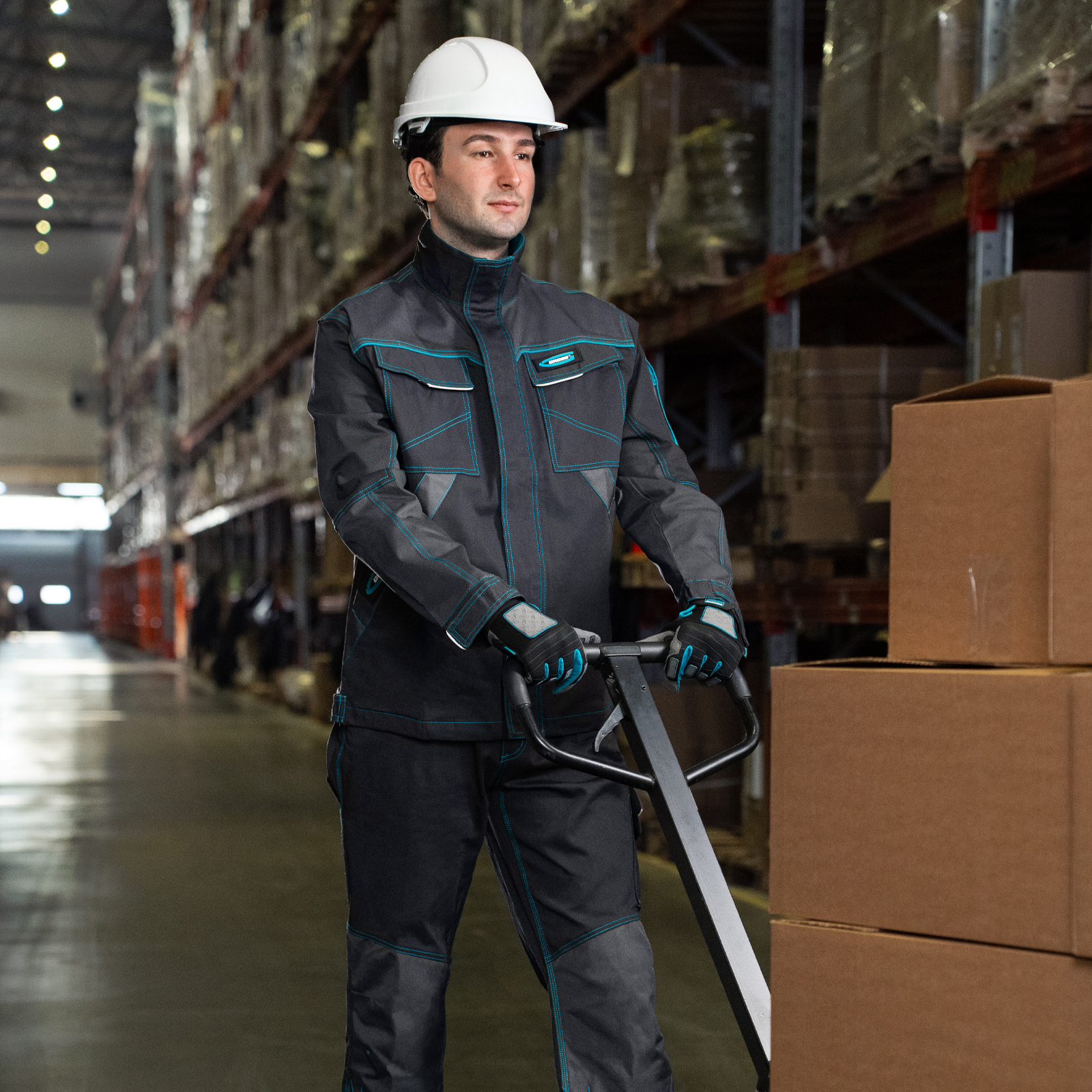 - Функциональность — спецодежда оснащена воротником-стойкой, светоотражающими элементами, дополнительным клапаном на центральной молнии для защиты от ветра и удобными карманами для мелочей.