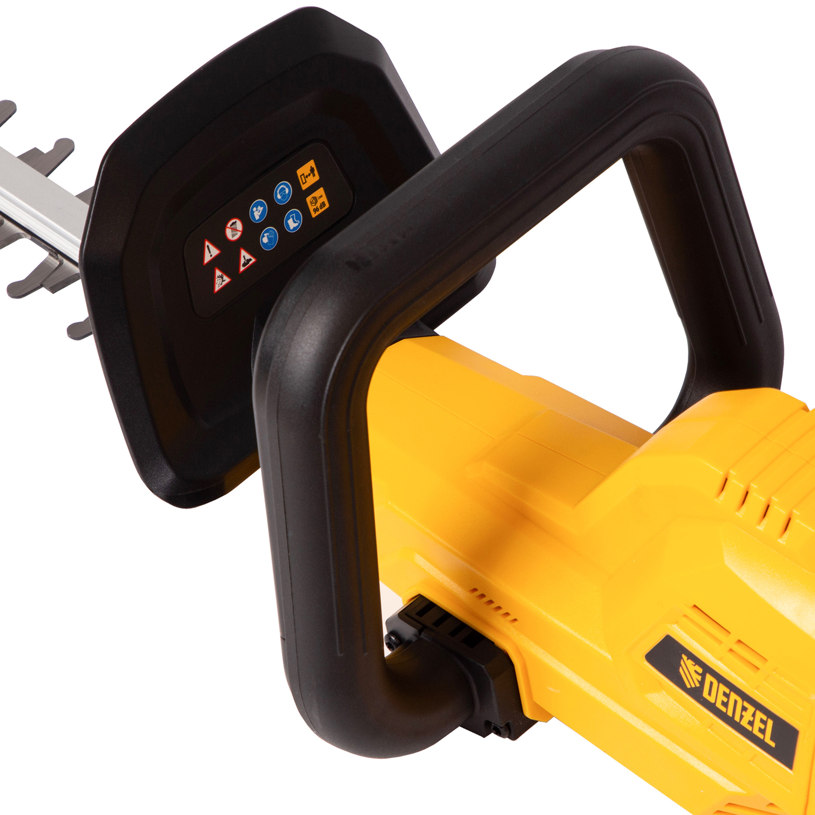 Аккумуляторный кусторез Denzel RBC510-36 59410 с двумя Li-Ion батареями емкостью 4 Ач и суммарным напряжением 36 В, с поворотной ручкой, используется для стрижки кустарников и тонких веток деревьев, подрезания дикой поросли травы. С его помощью можно создать живую изгородь или ландшафтные скульптуры из декоративных растений. Нож длиной 510 мм обеспечивает толщину реза 24 мм.,Кусторез не зависит от сети электропитания, поэтому работать с ним можно в самых отдаленных участках сада. Устройство не выделяет вредных выхлопов и работает намного тише в сравнении с бензиновыми аналогами.