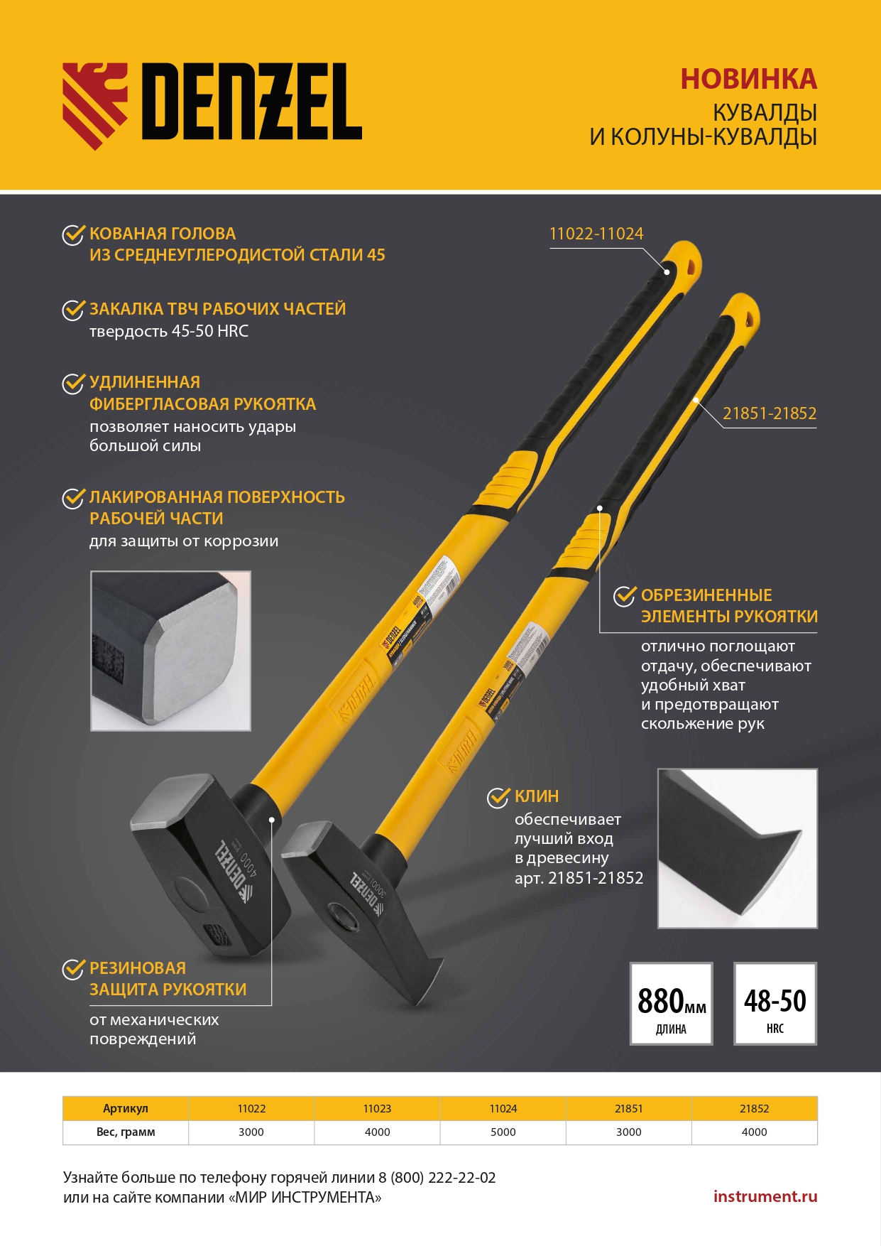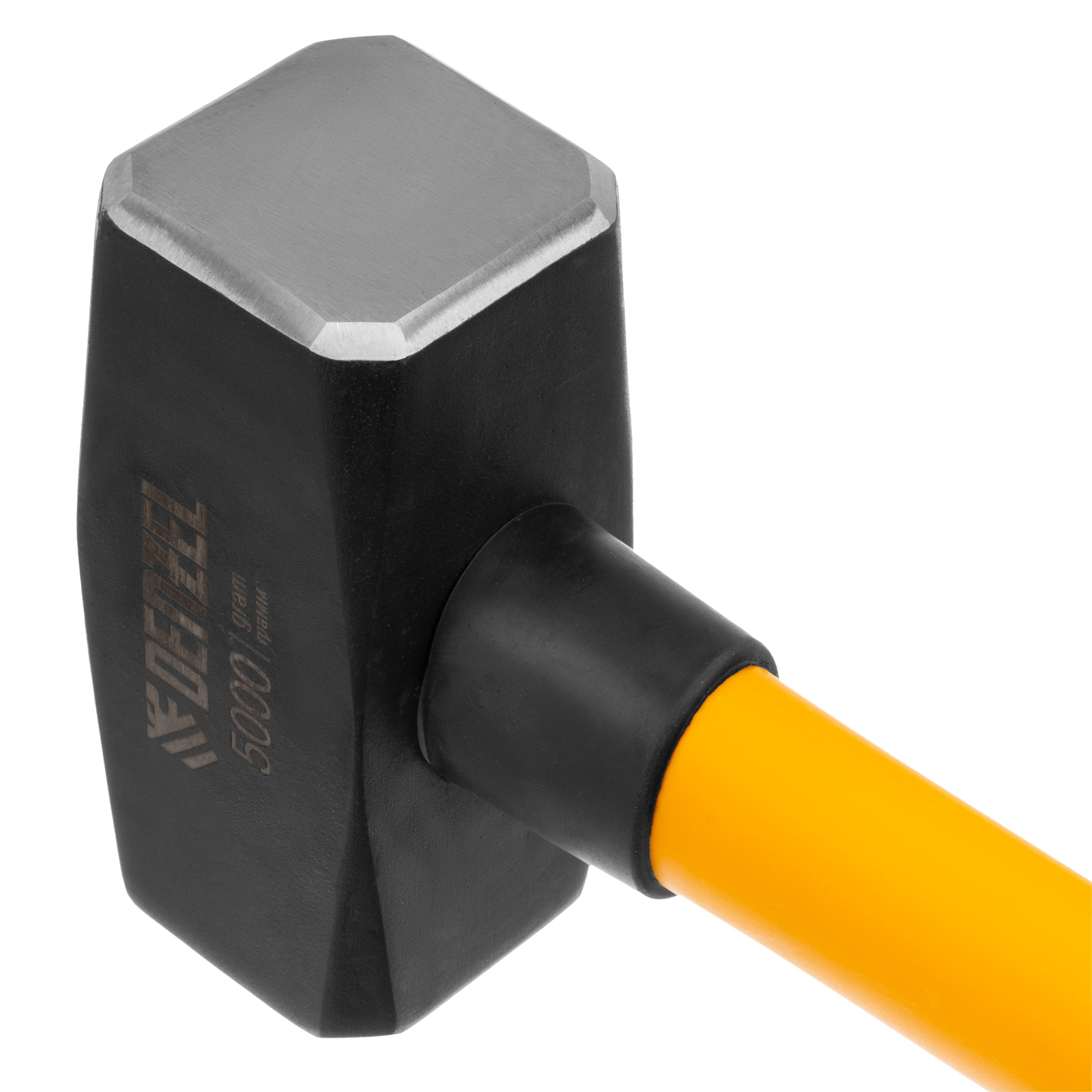 Кованая кувалда Denzel 11024 с бойком весом 5000 г и фибергласовой обрезиненной рукояткой длиной 880 мм, с TPR покрытием, предназначена для проведения демонтажных работ: разрушения кирпичной кладки, камня и бетона, забивания клиньев, кольев, скоб и других тяжелых ударных работ. Удлиненная рукоятка позволяет наносить удары большой силы, а кованый боек отличается прочностью и не подвержен деформациям.